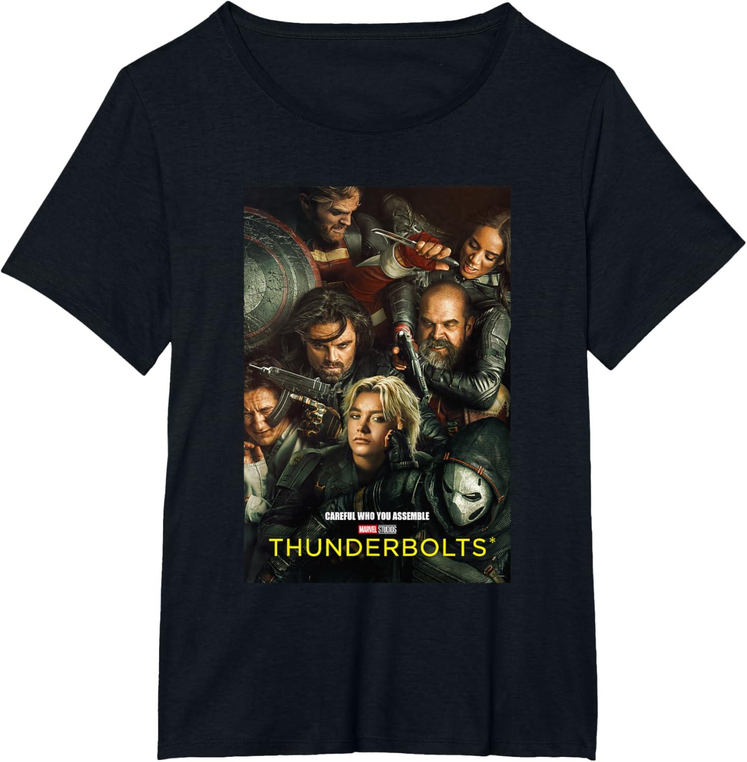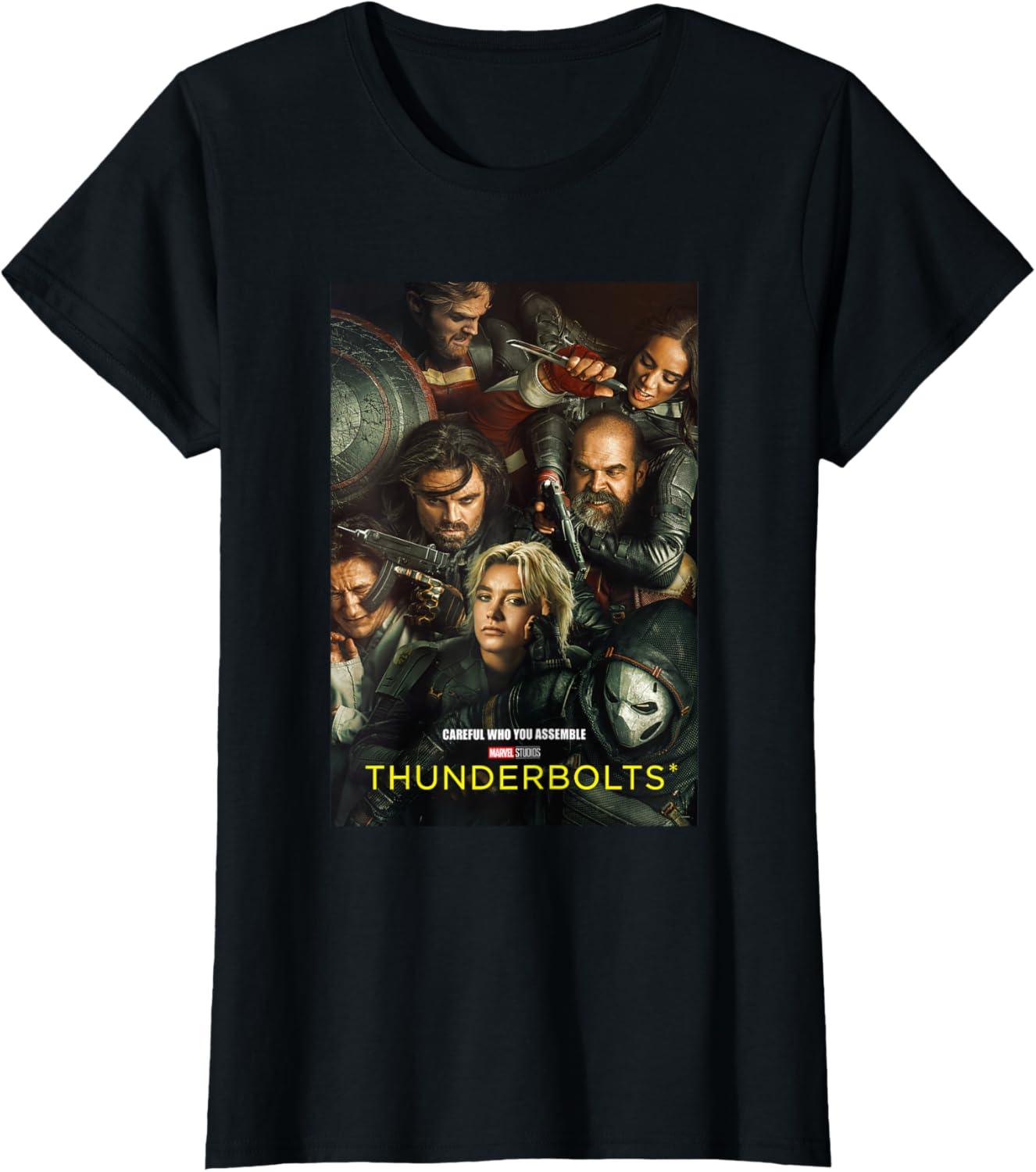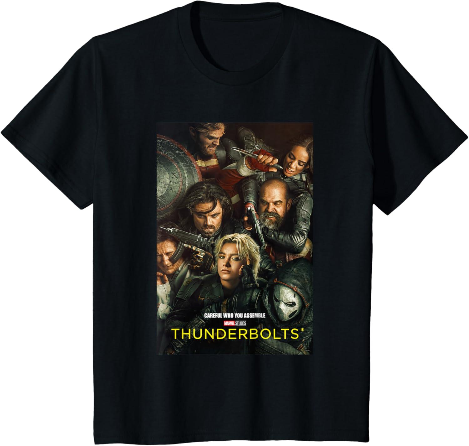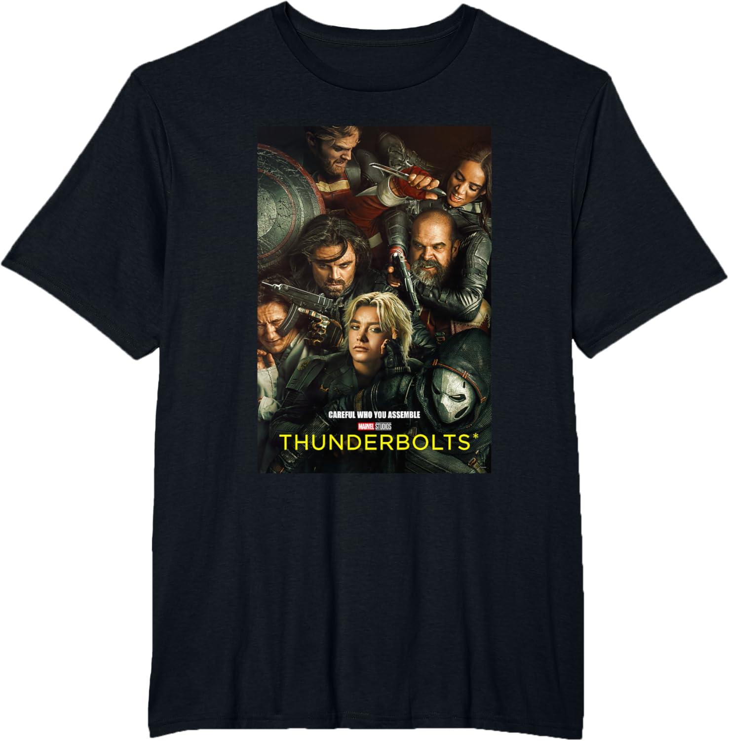 Marvel Thunderbolts Careful Who You Assemble Team Poster T-Shirt(Black)