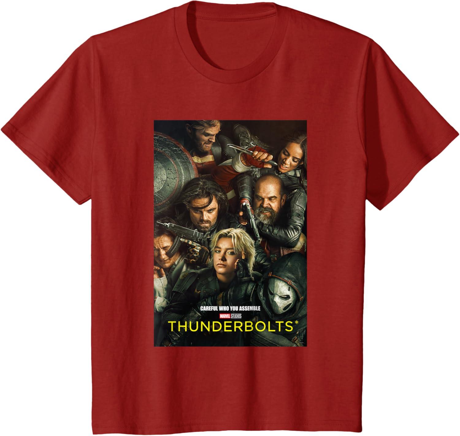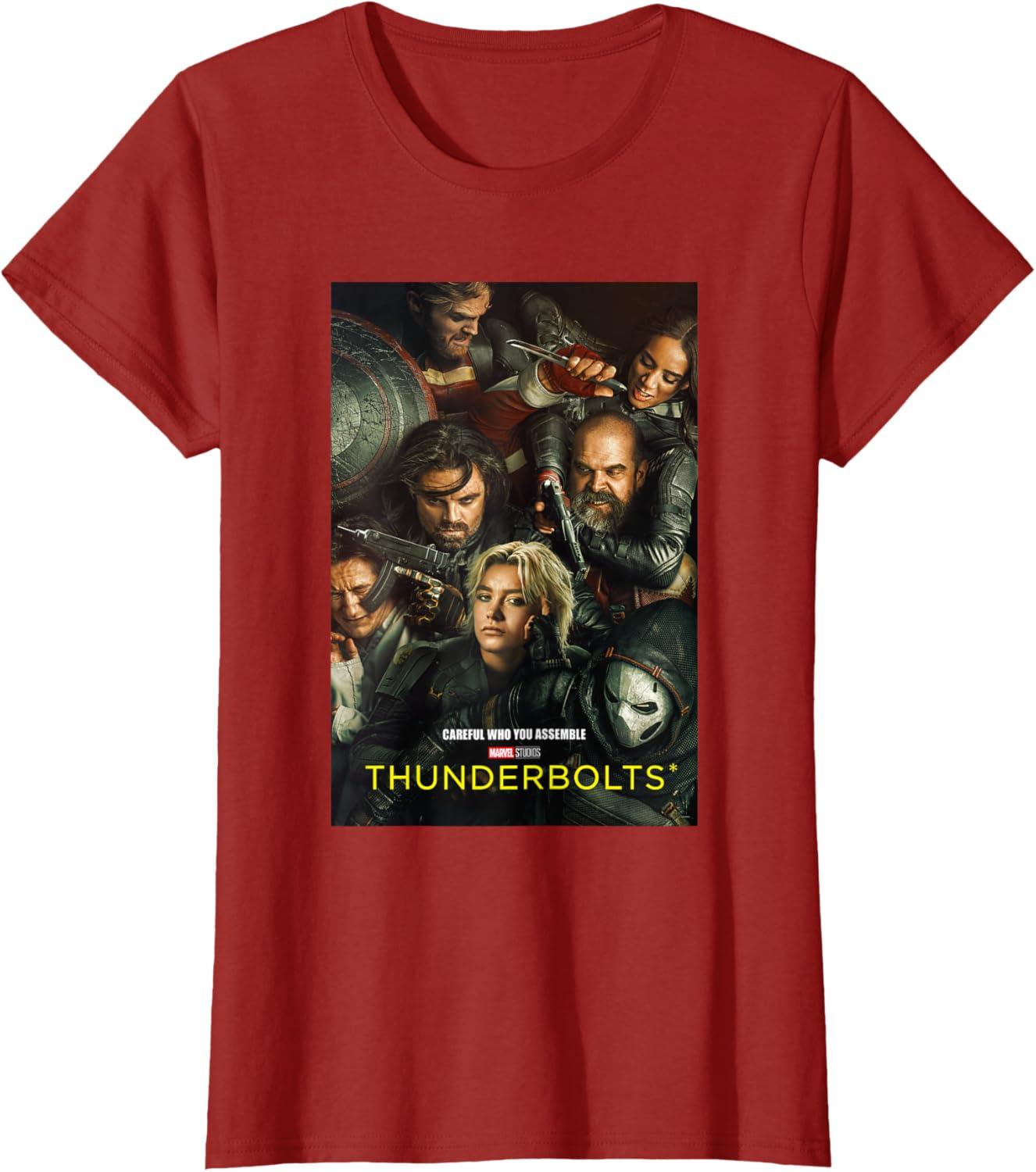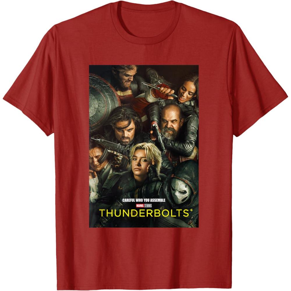 Marvel Thunderbolts Careful Who You Assemble Team Poster T-Shirt(Cranberry Red)