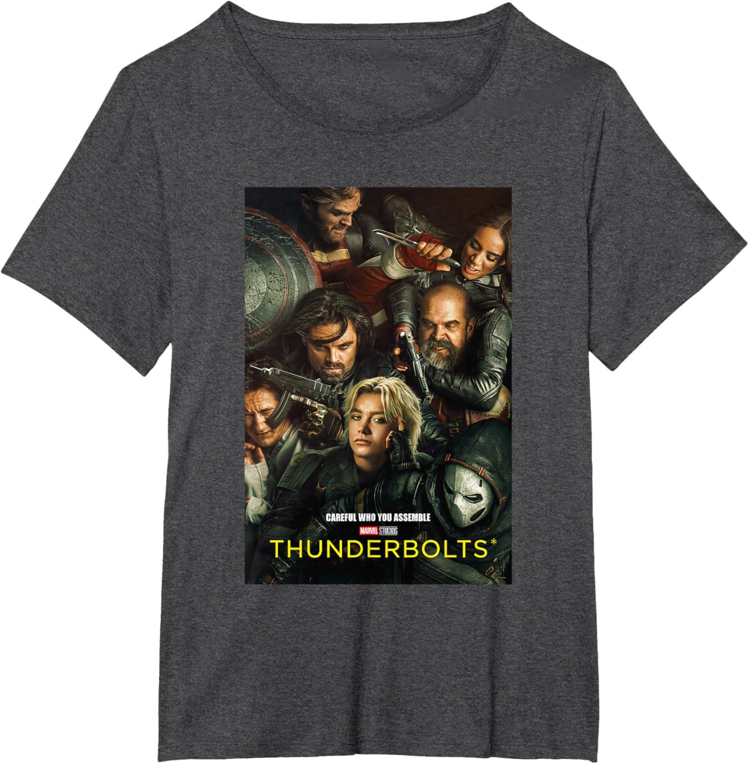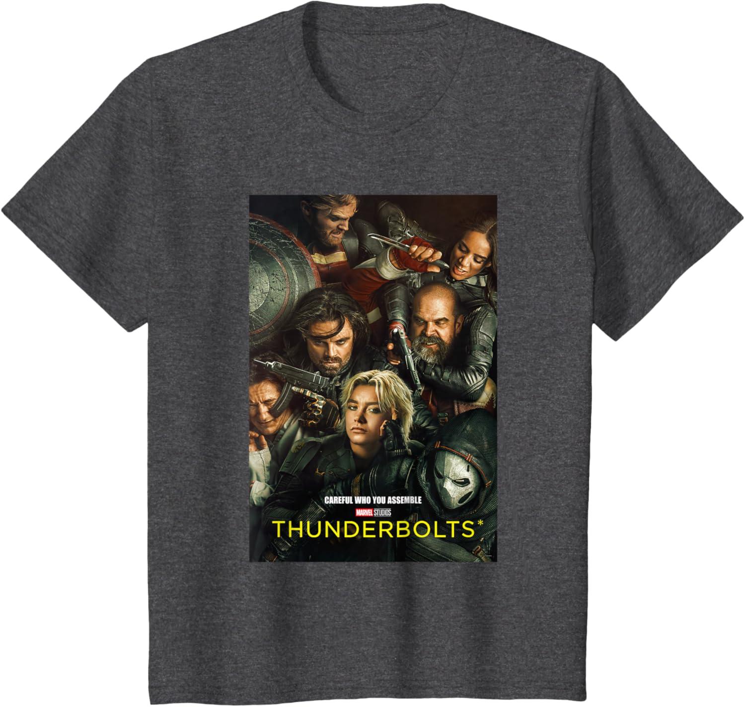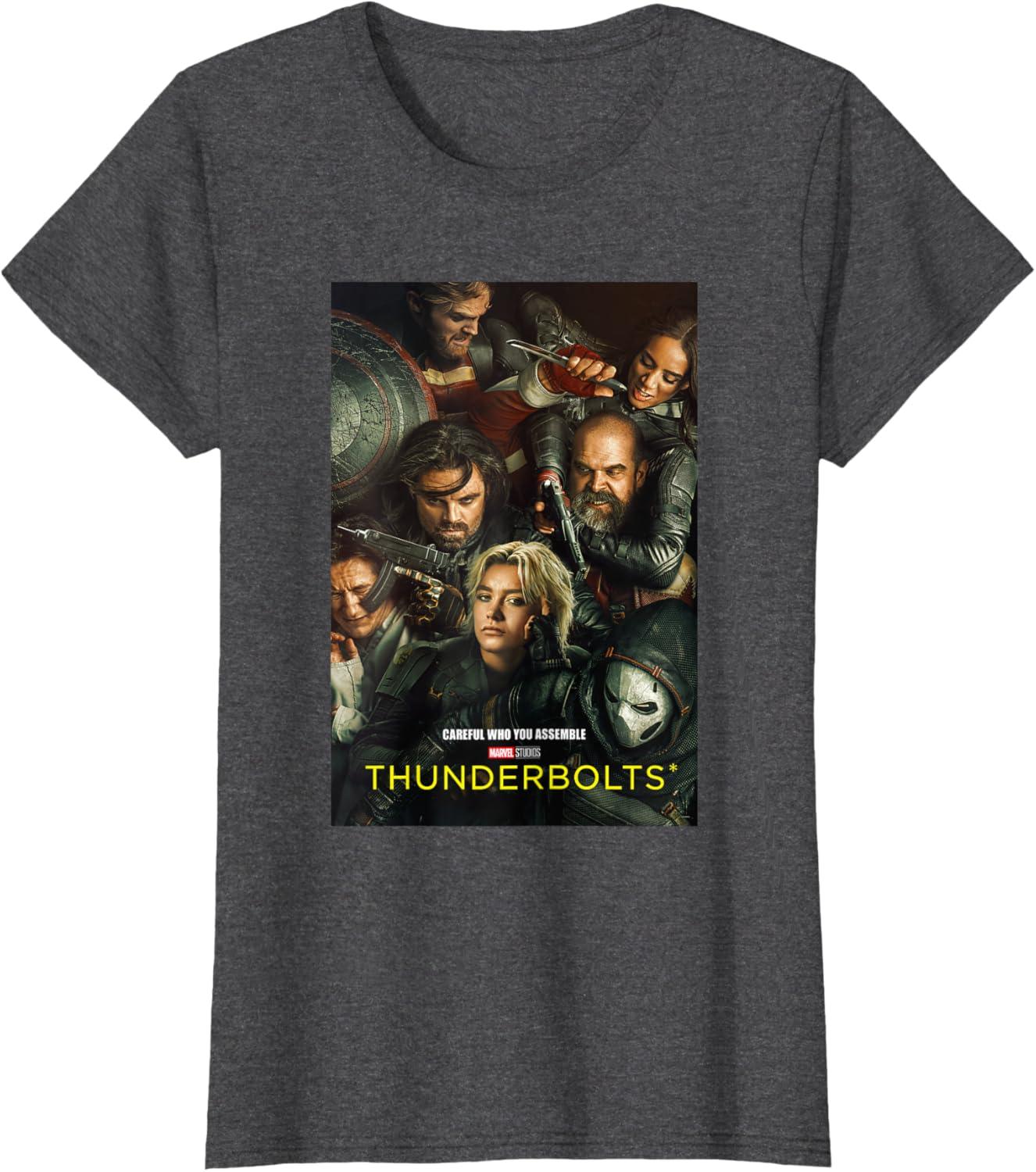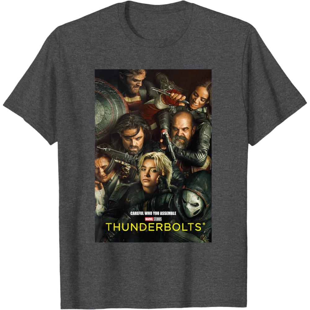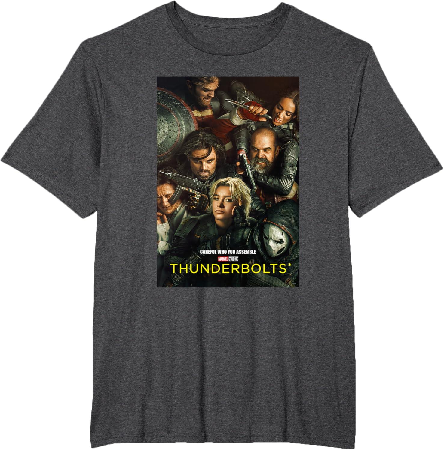 Marvel Thunderbolts Careful Who You Assemble Team Poster T-Shirt(Dark Heather Grey)