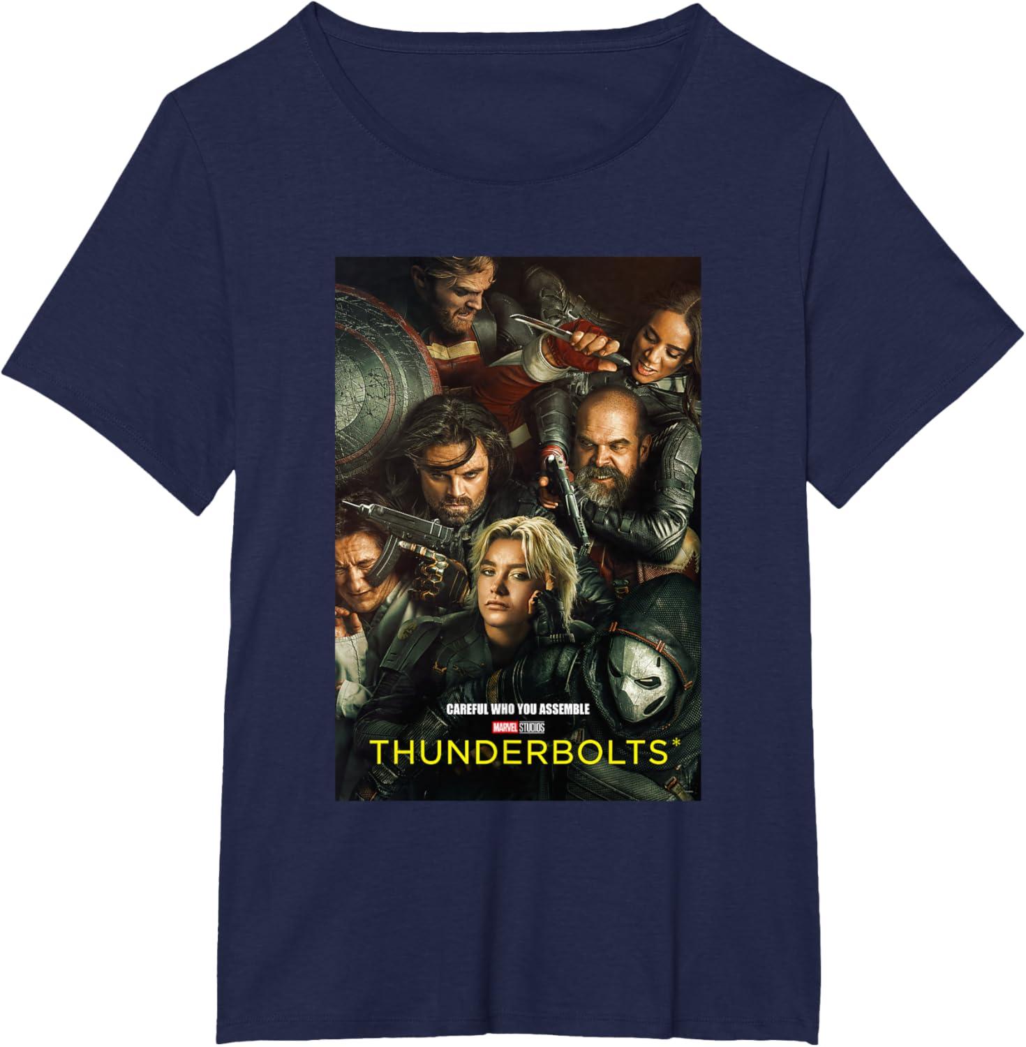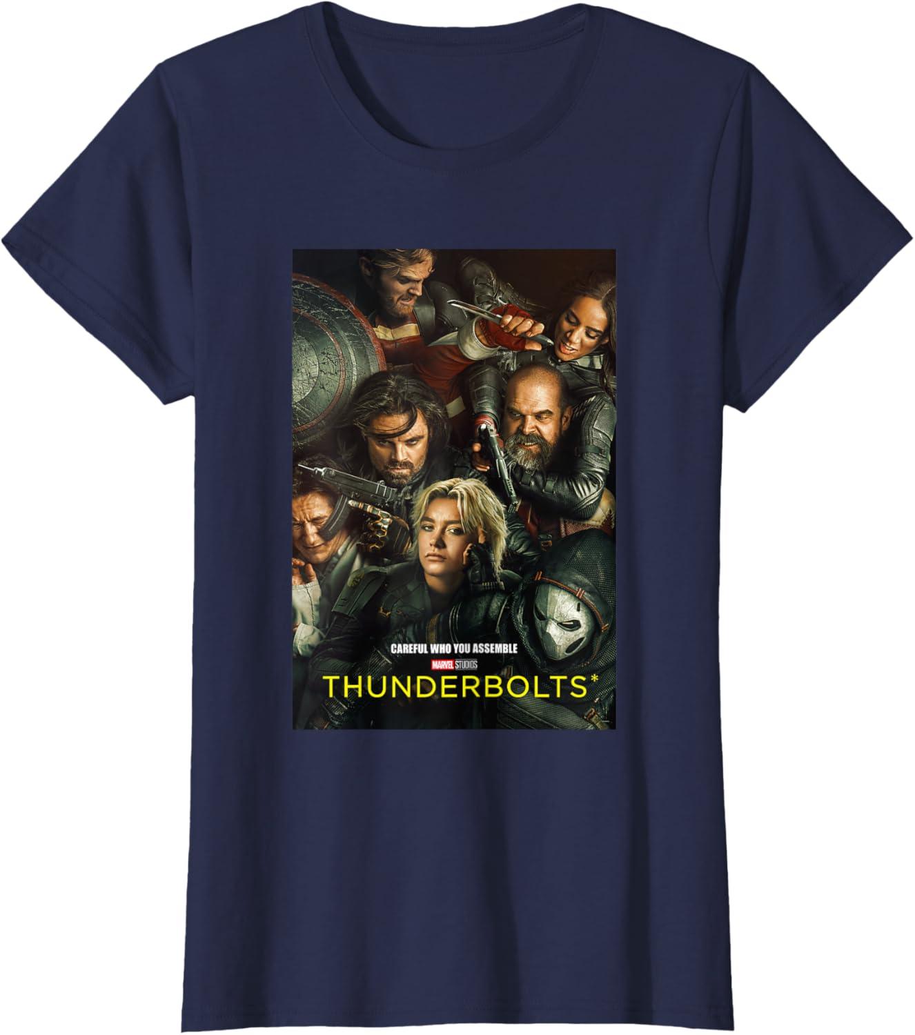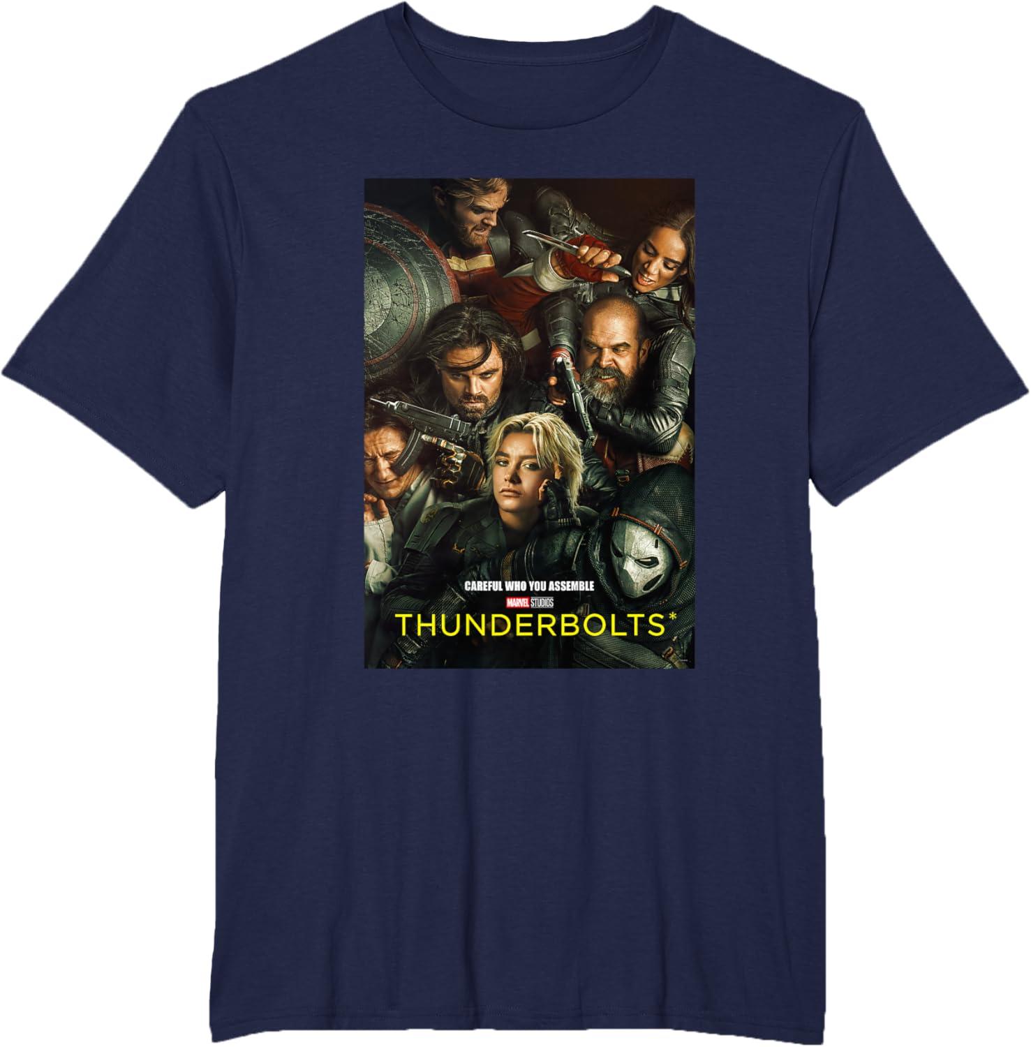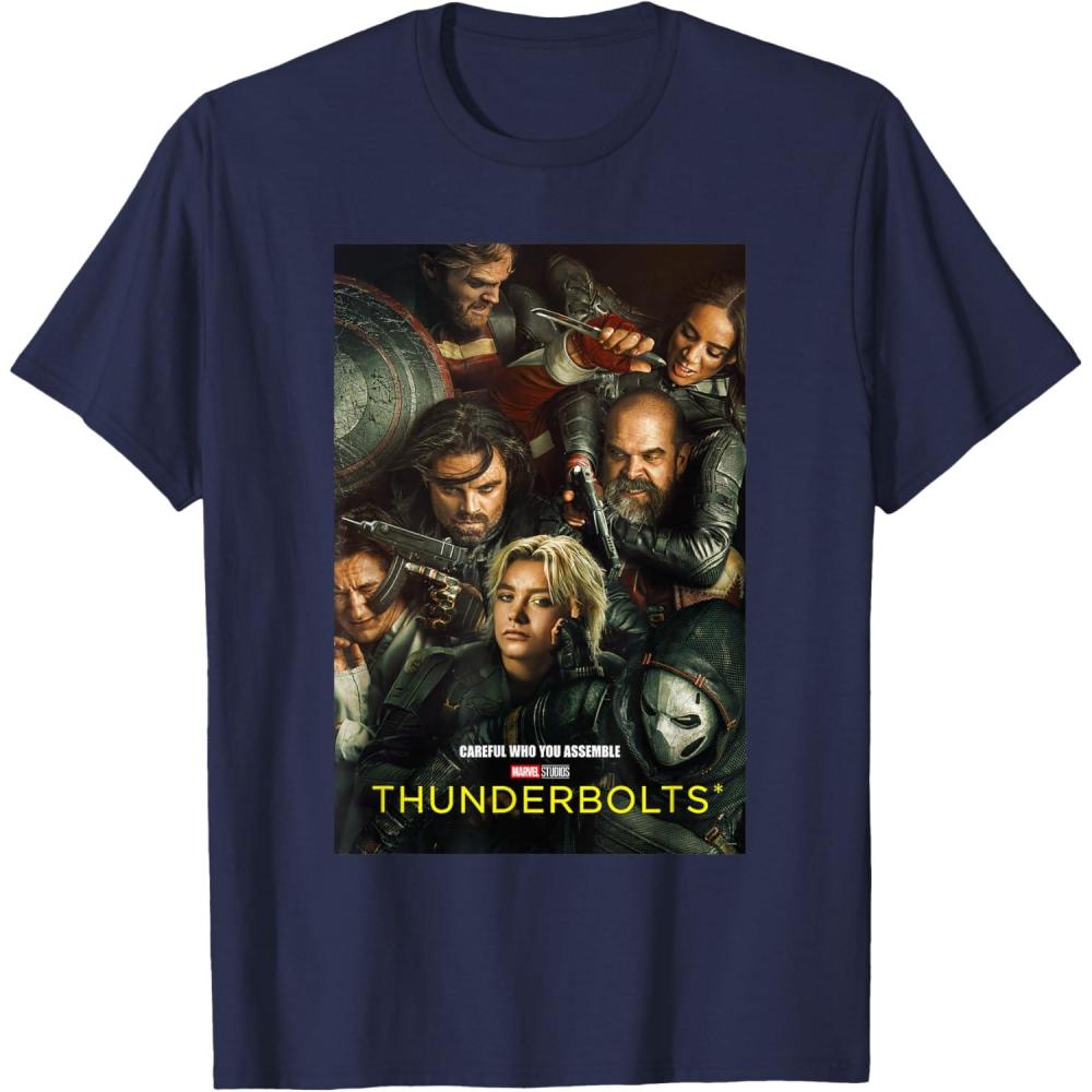Marvel Thunderbolts Careful Who You Assemble Team Poster T-Shirt(Navy Blue)