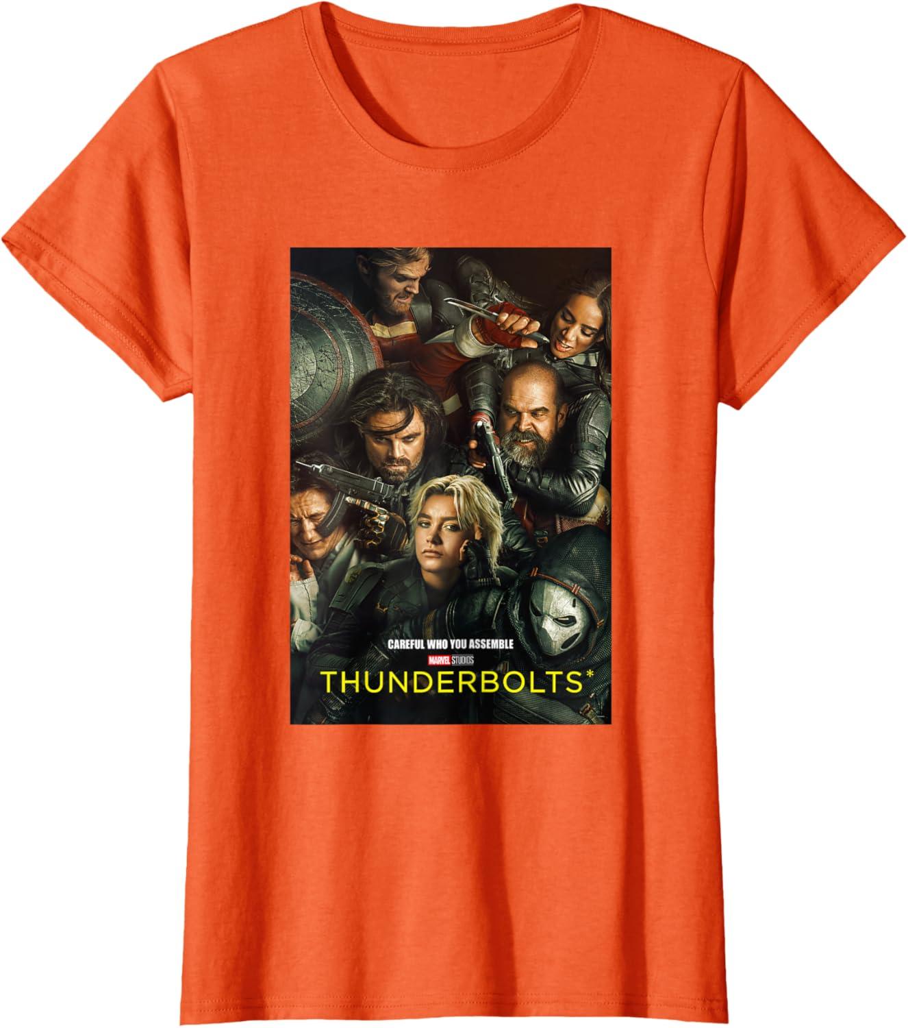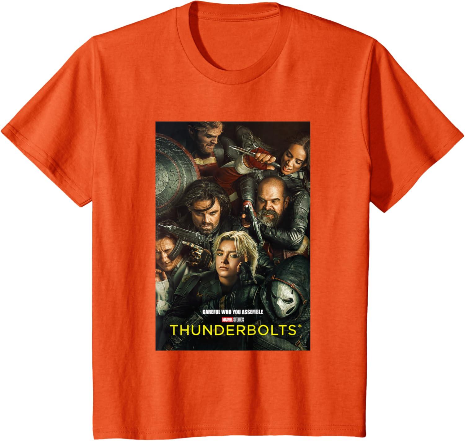 Marvel Thunderbolts Careful Who You Assemble Team Poster T-Shirt(Orange)