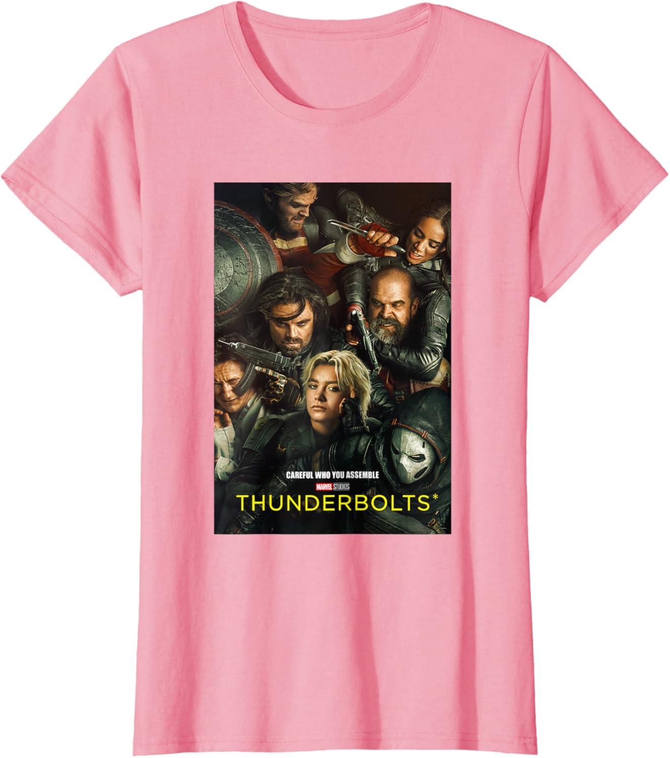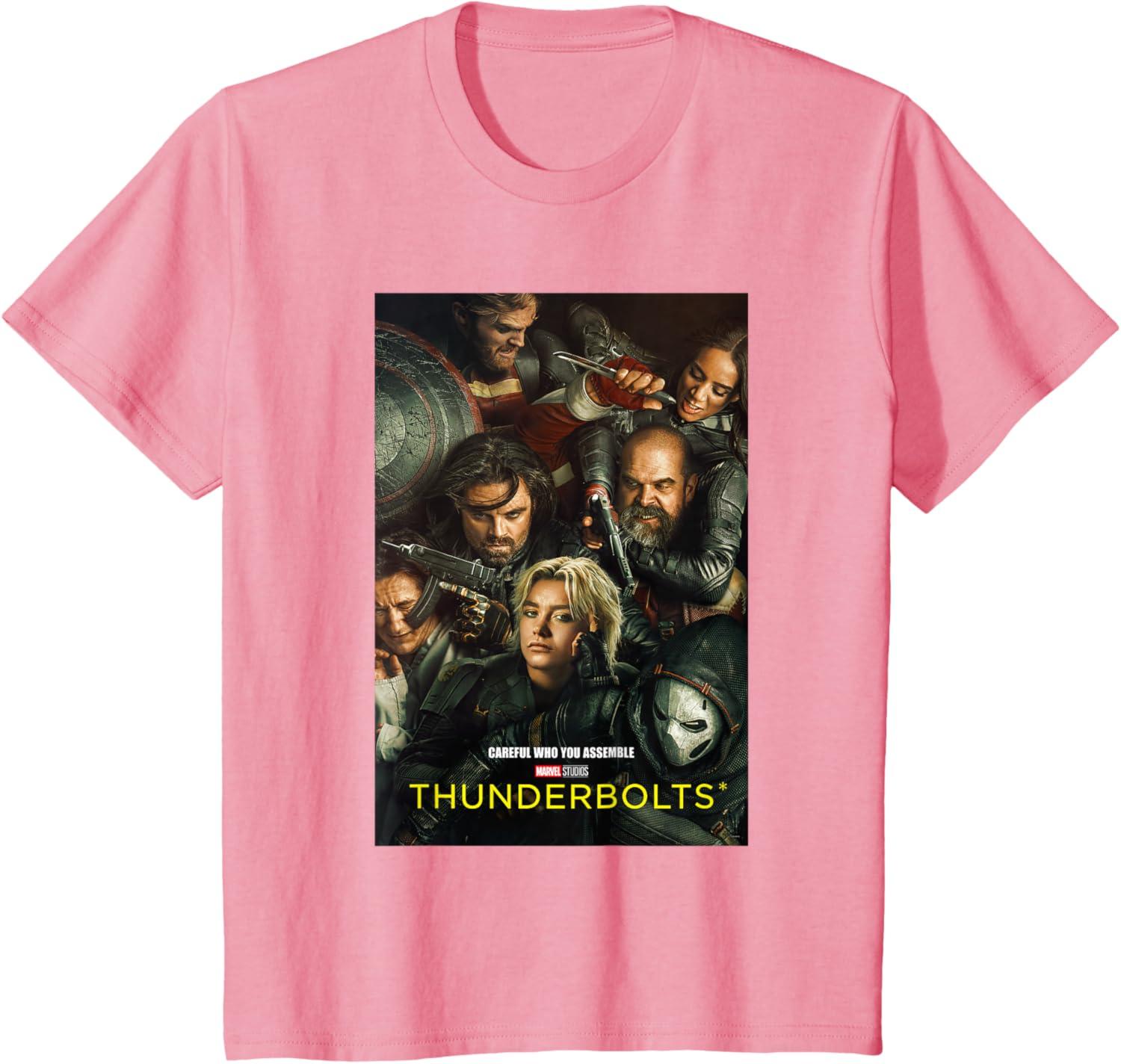 Marvel Thunderbolts Careful Who You Assemble Team Poster T-Shirt(Pink)