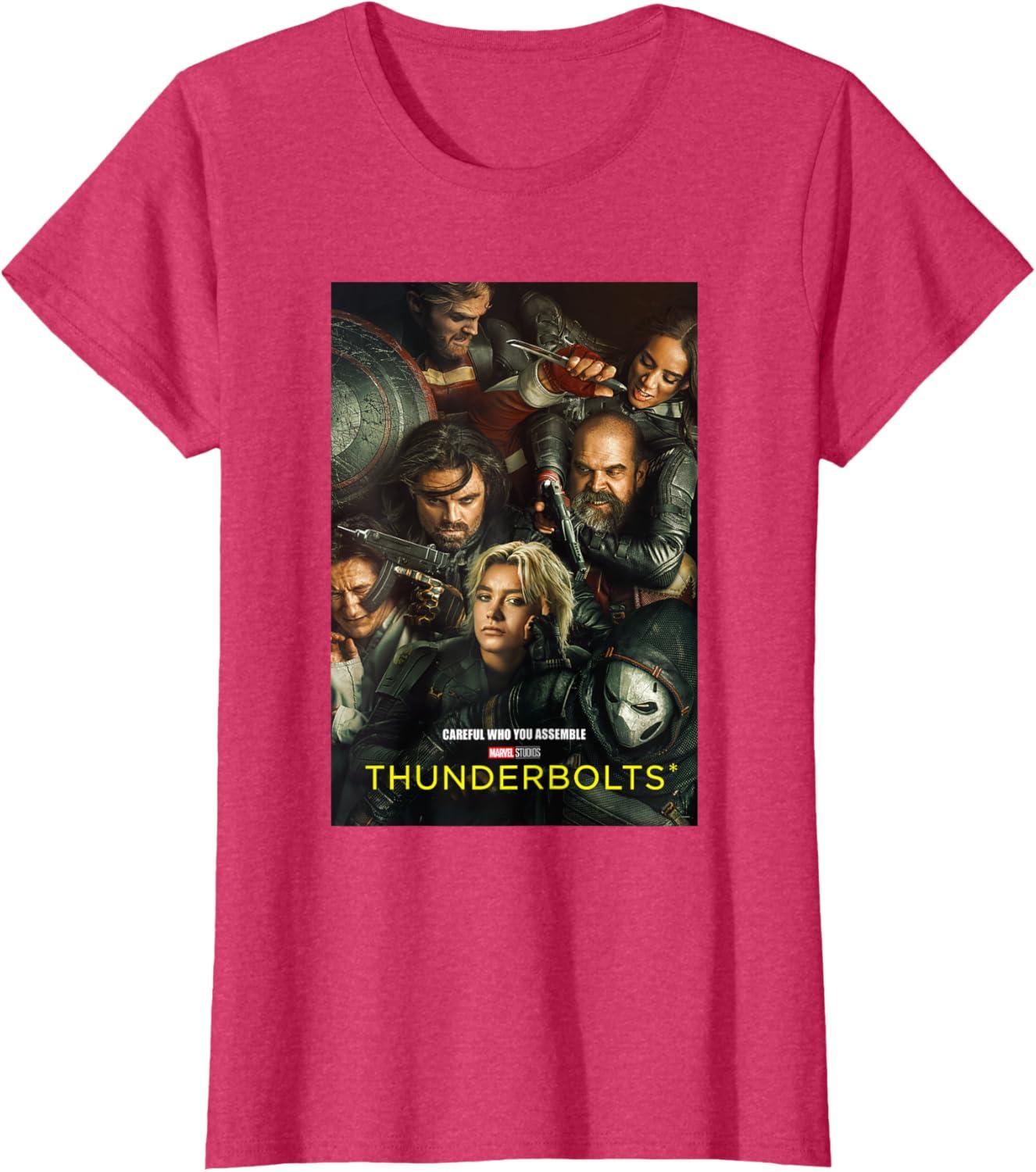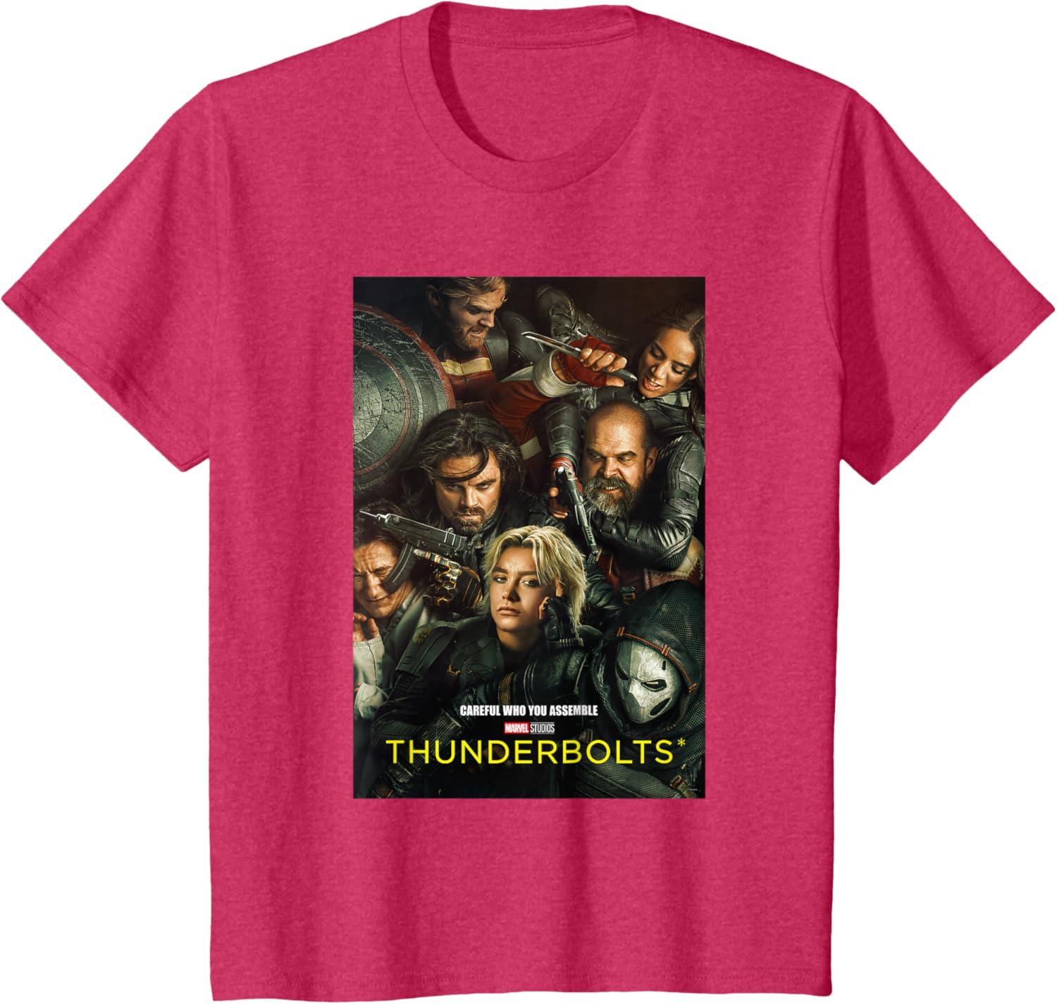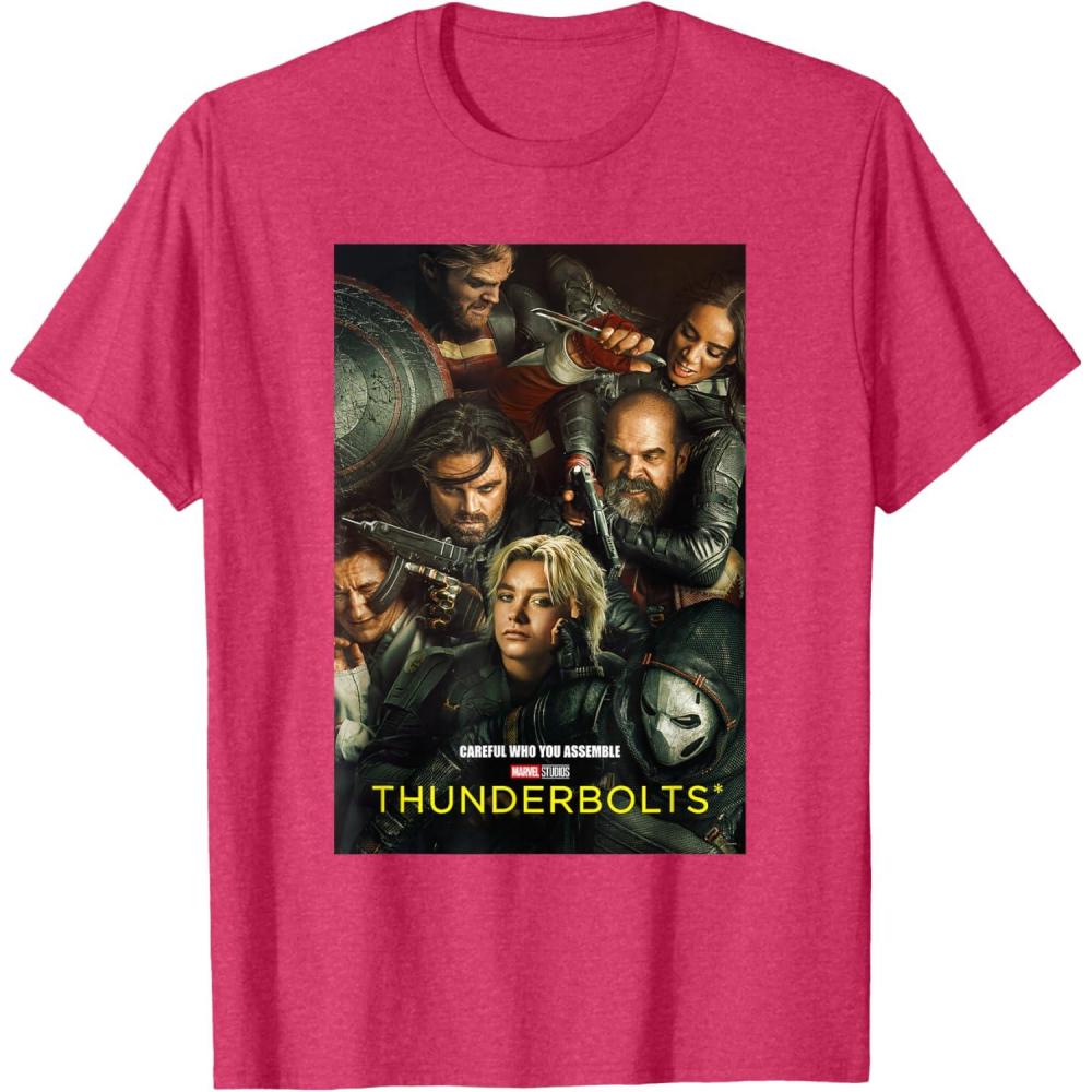 Marvel Thunderbolts Careful Who You Assemble Team Poster T-Shirt(Red Heather)
