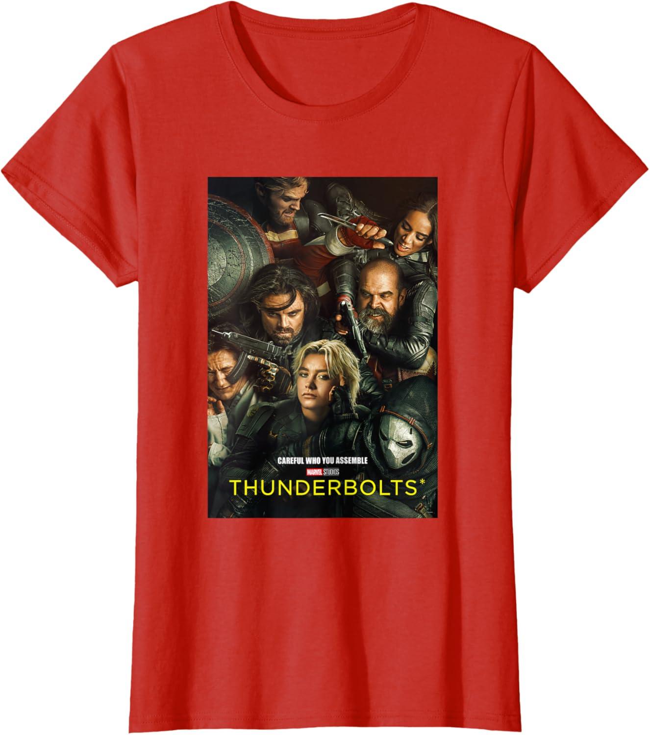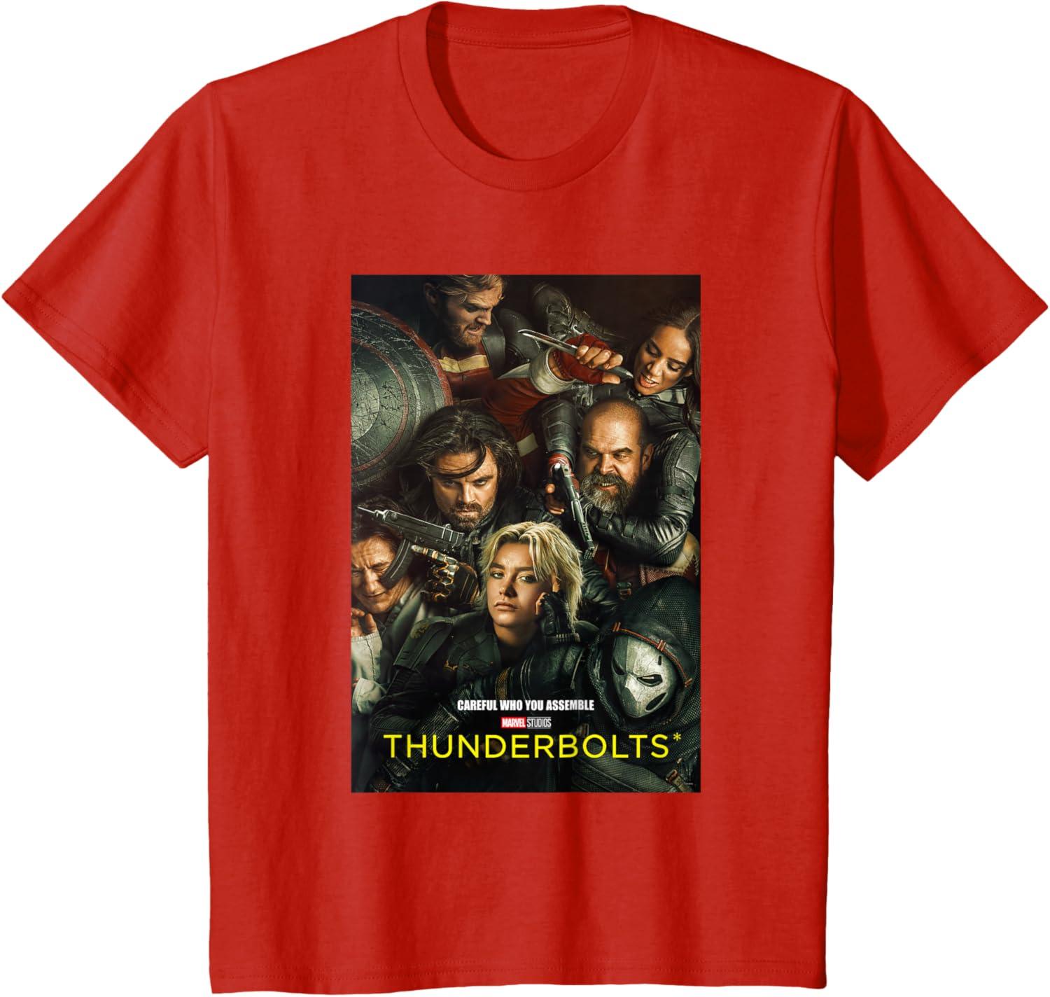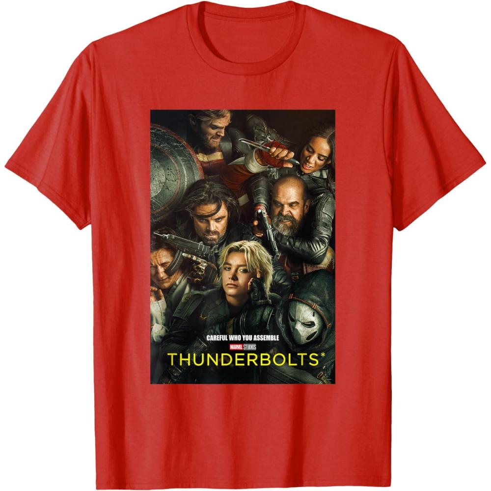 Marvel Thunderbolts Careful Who You Assemble Team Poster T-Shirt(Red)