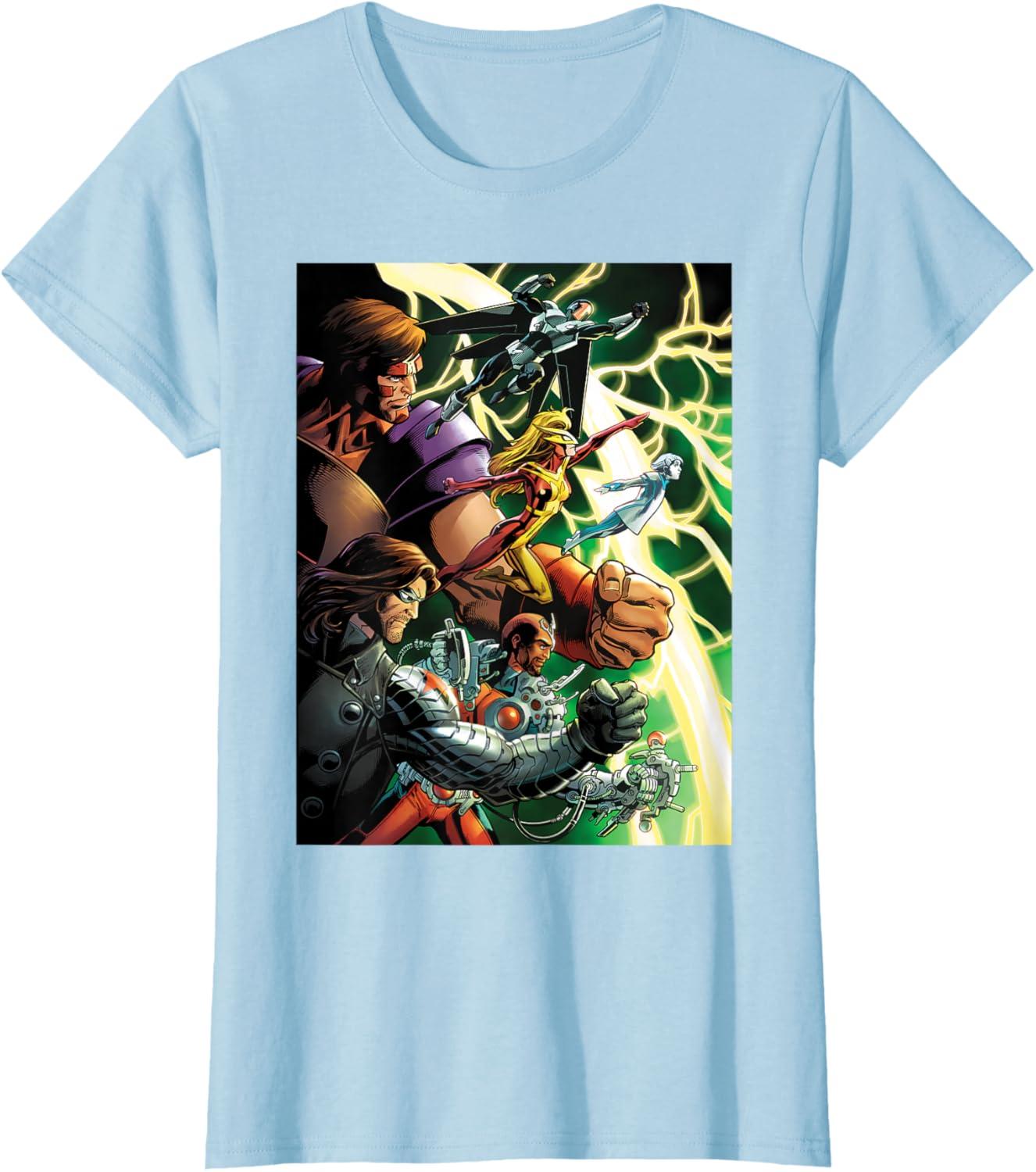Marvel Thunderbolts Comic Cover Art Bucky and Team T-Shirt(Baby Blue)