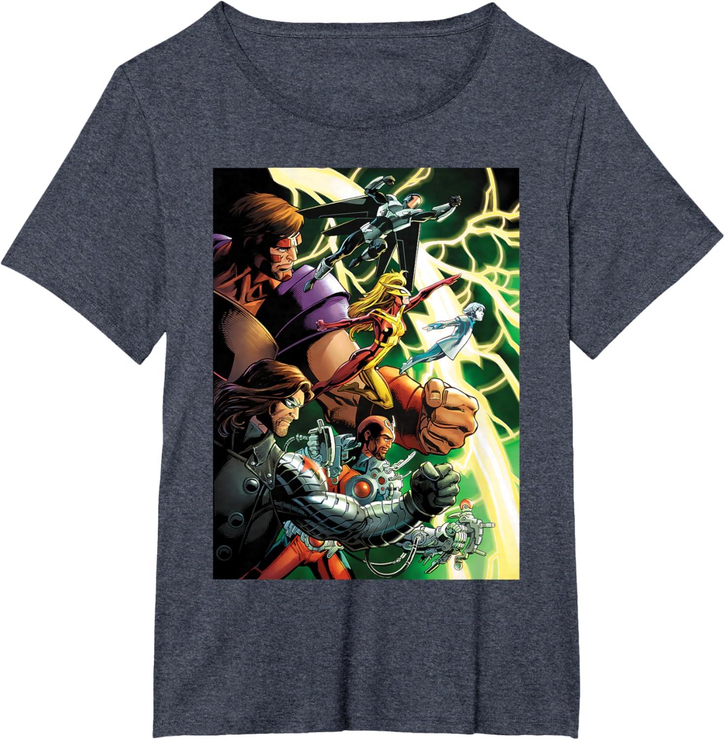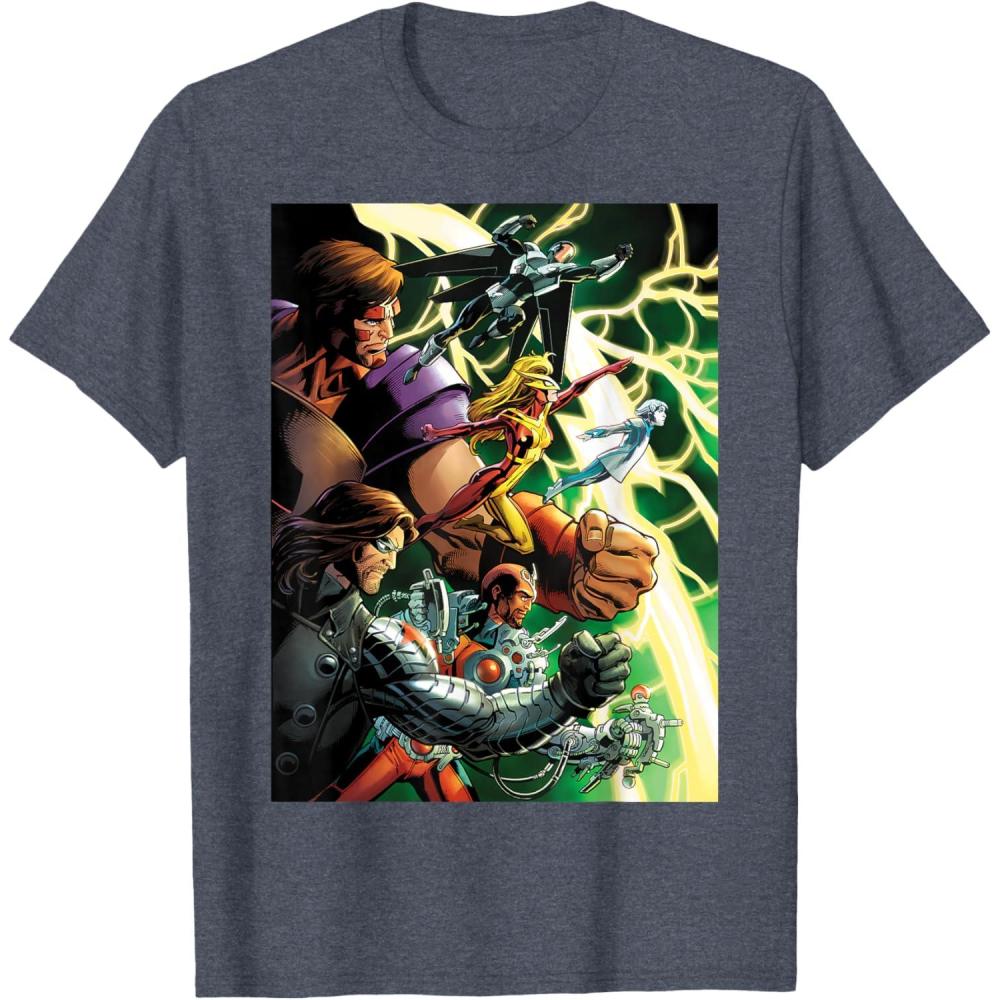 Marvel Thunderbolts Comic Cover Art Bucky and Team T-Shirt(Heather Blue)