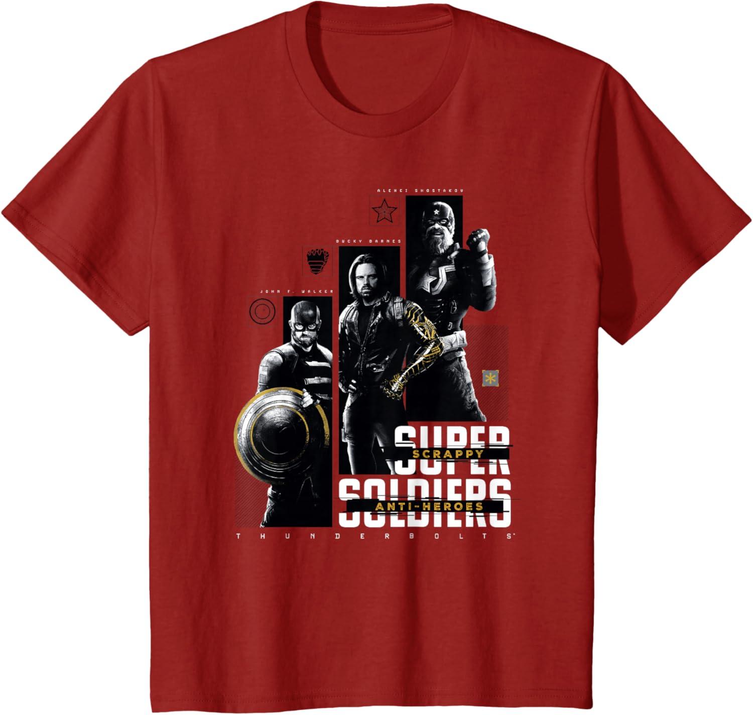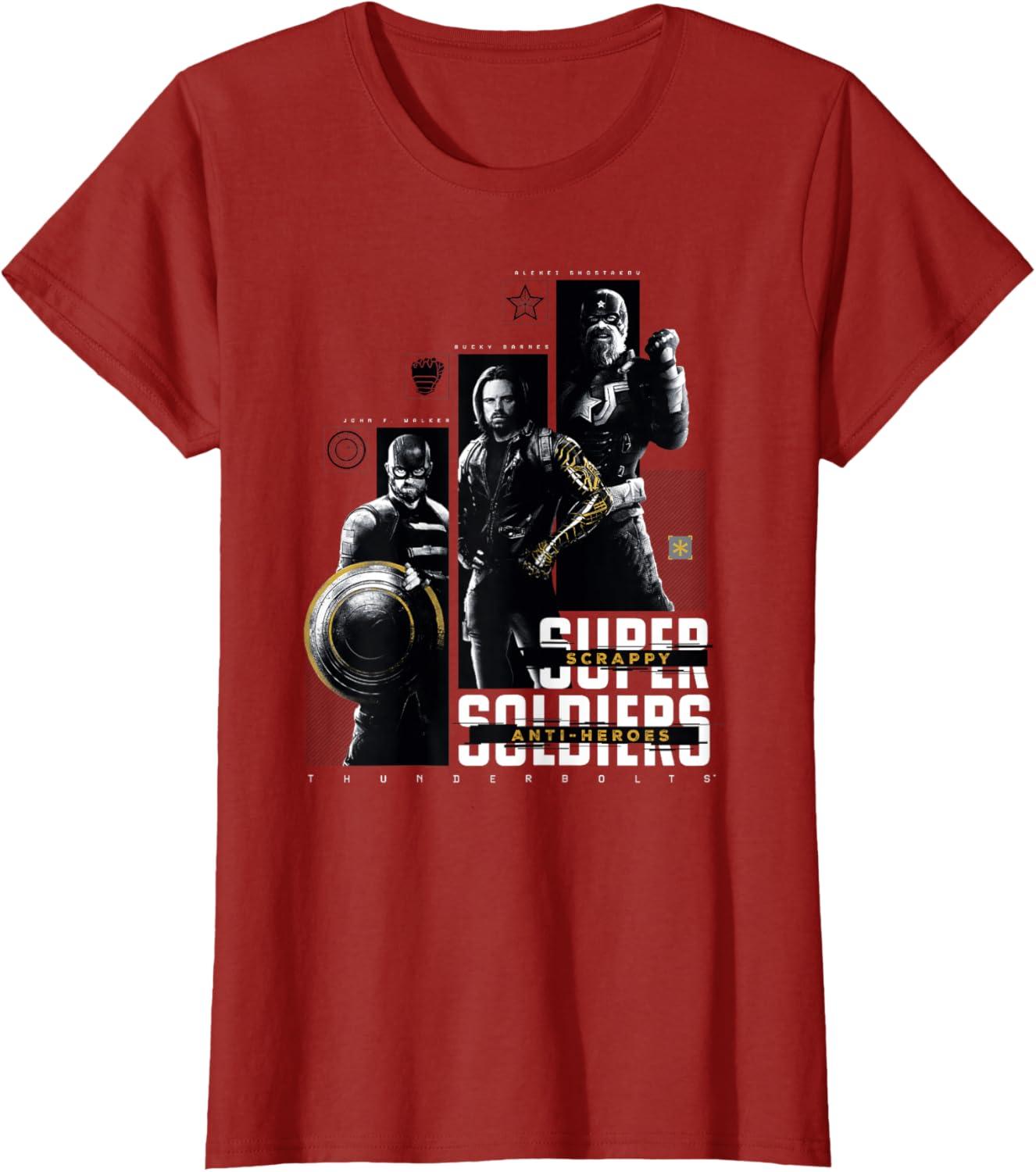 Get ready to meet this new unconventional team of antiheroes! Yelena Belova, Bucky Barnes, Red Guardian, U.S. Agent, Taskmaster, and Ghost must assemble to embark on a dangerous mission that will force them to confront the darkest corners of their pasts, and just maybe, get a shot at redemption. It's time to get marvel-ous with these awesome officially licensed Marvel Thunderbolts graphic tee shirts, sweatshirts, and hoodies!
