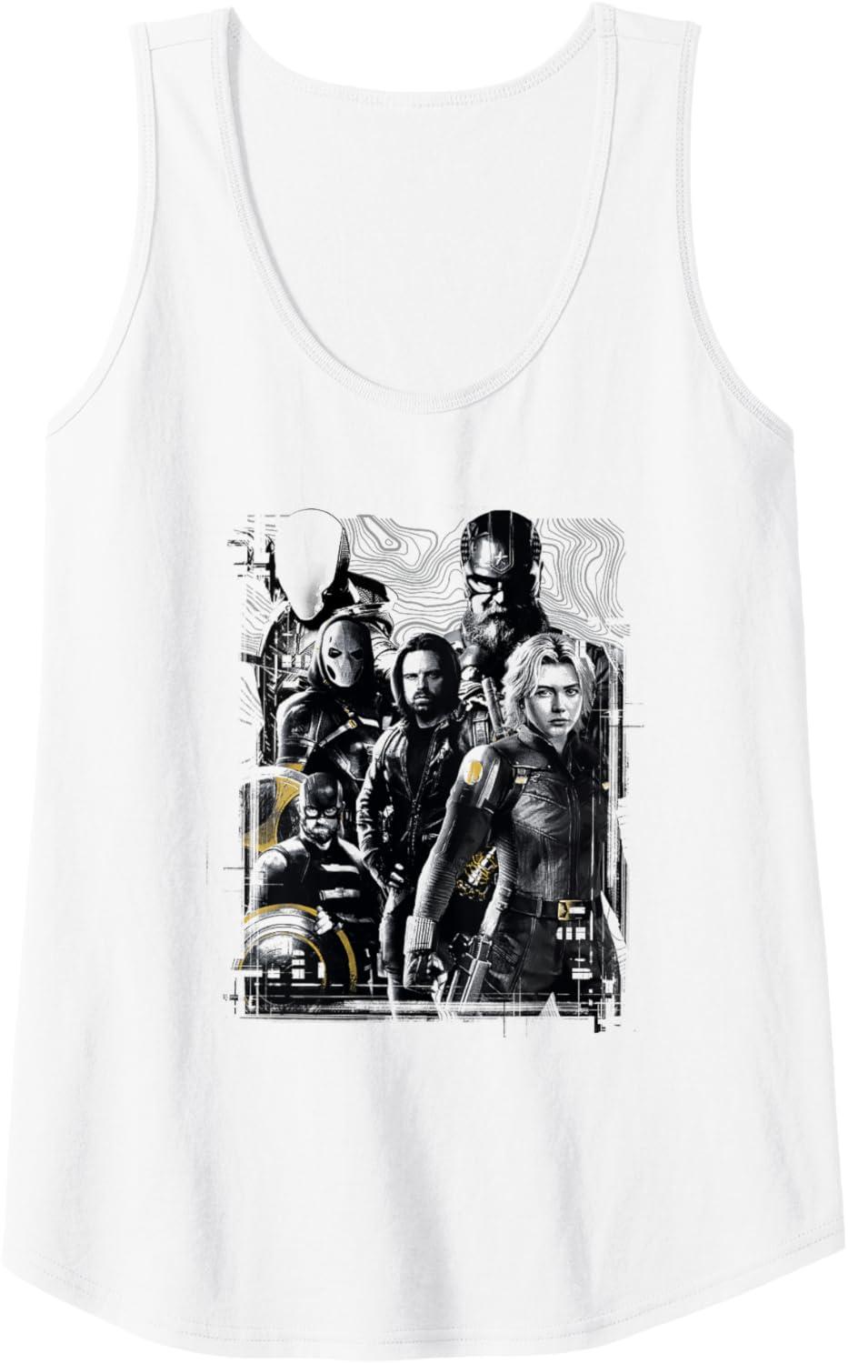 Get ready to meet this new unconventional team of antiheroes! Yelena Belova, Bucky Barnes, Red Guardian, U.S. Agent, Taskmaster, and Ghost must assemble to embark on a dangerous mission that will force them to confront the darkest corners of their pasts, and just maybe, get a shot at redemption. It's time to get marvel-ous with these awesome officially licensed Marvel Thunderbolts graphic tee shirts, sweatshirts, and hoodies!