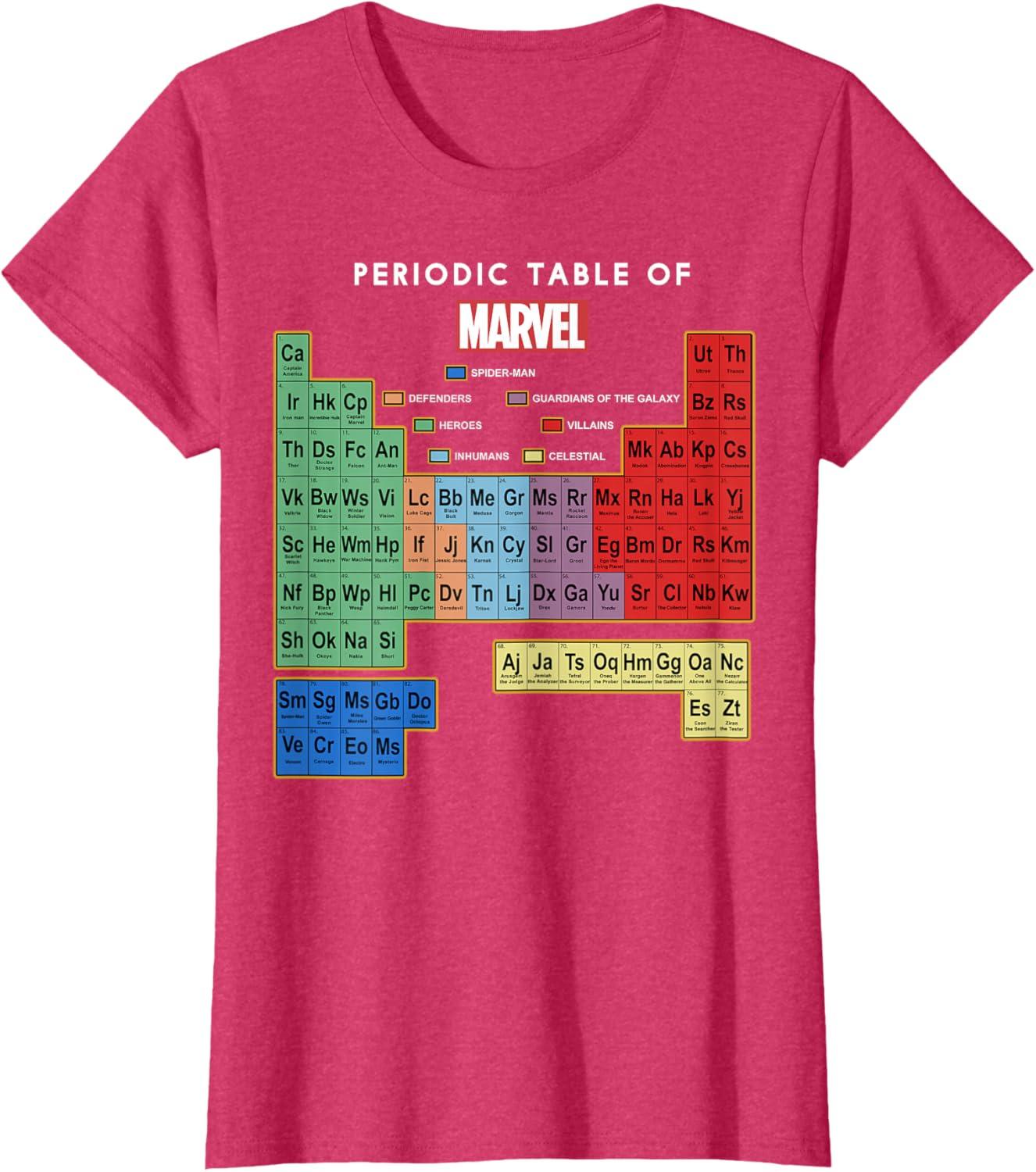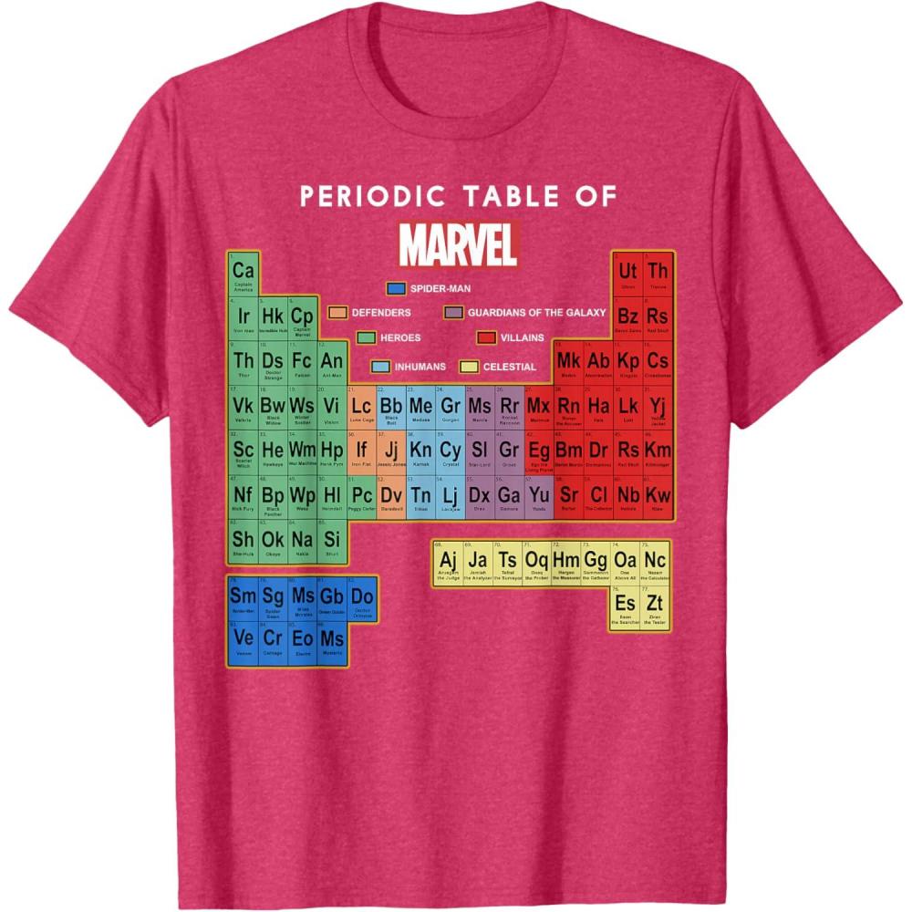 imageMarvel Ultimate Periodic Table Of Elements Graphic Short Sleeve TShirt Black SmallRed Heather