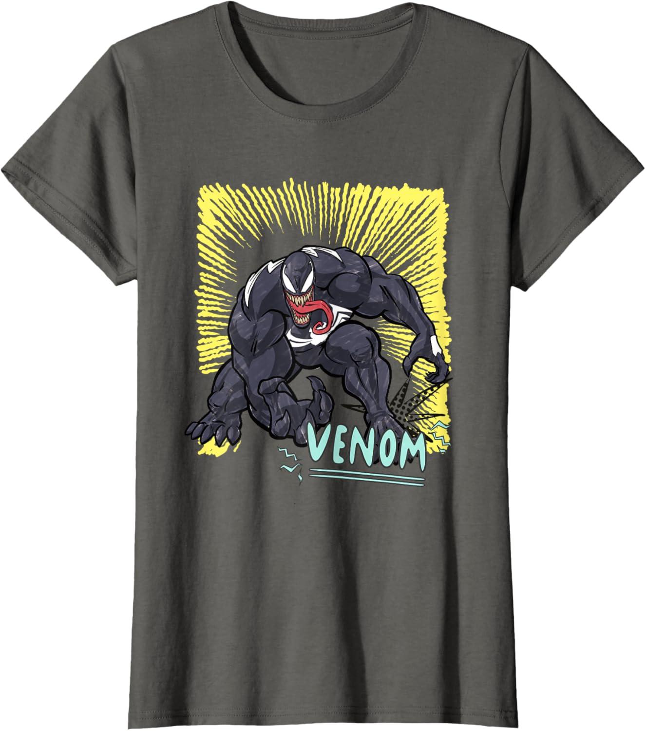 Marvel Venom Art Supplies We are Venom! Sometimes a vigilante hero, sometimes one of Spider-Man's most dangerous villains, Marvel's Lethal Protector takes the spotlight on this official tee or hoodie, featuring Venom in a powerful crouching pose with pop graphic design elements and striking marker-style colouring. Eddie Brock and the alien symbiote never looked so cool! A great gift for a Venom or Marvel Comics fan. Available in youth and adult sizes. Find it in a t-shirt, premium t-shirt, tank top, v-neck, long sleeve tee, hoodie, and sweatshirt.