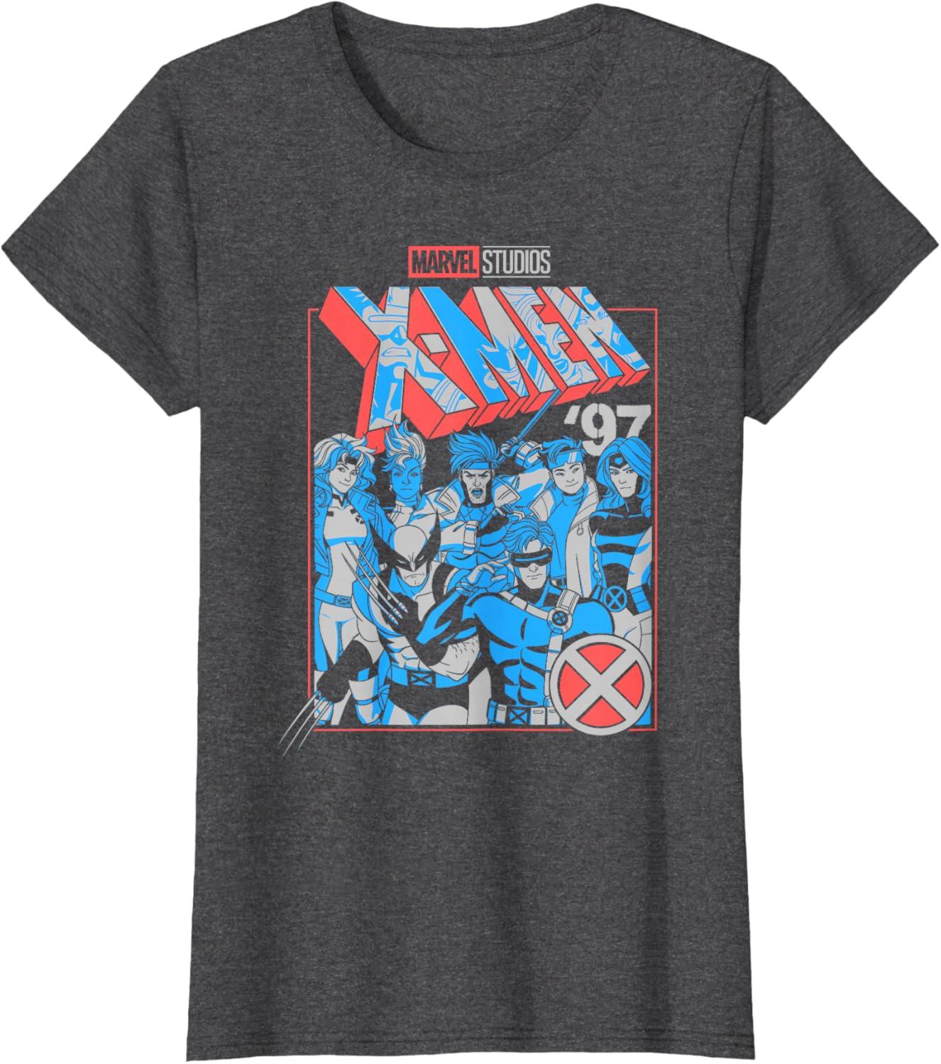 Marvel X-Men ’97 Americana Colors Group Poster T-Shirt(Heather Blue)