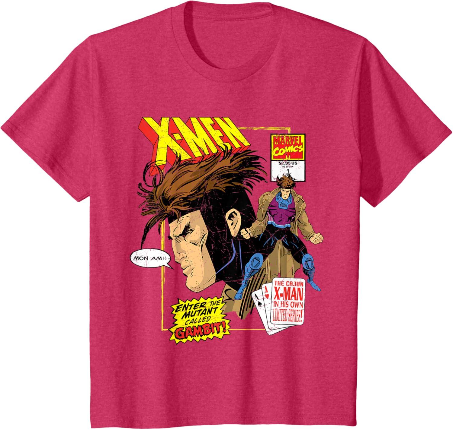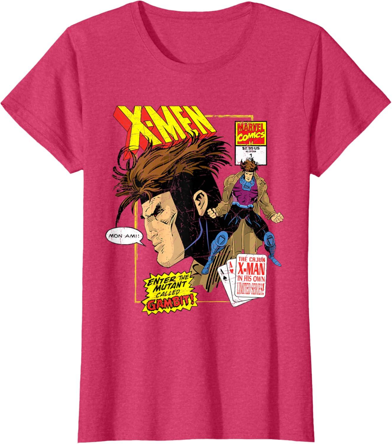 Marvel X-Men Cajun Gambit Remy LeBeau Comic Art T-Shirt T-Shirt(Red Heather)