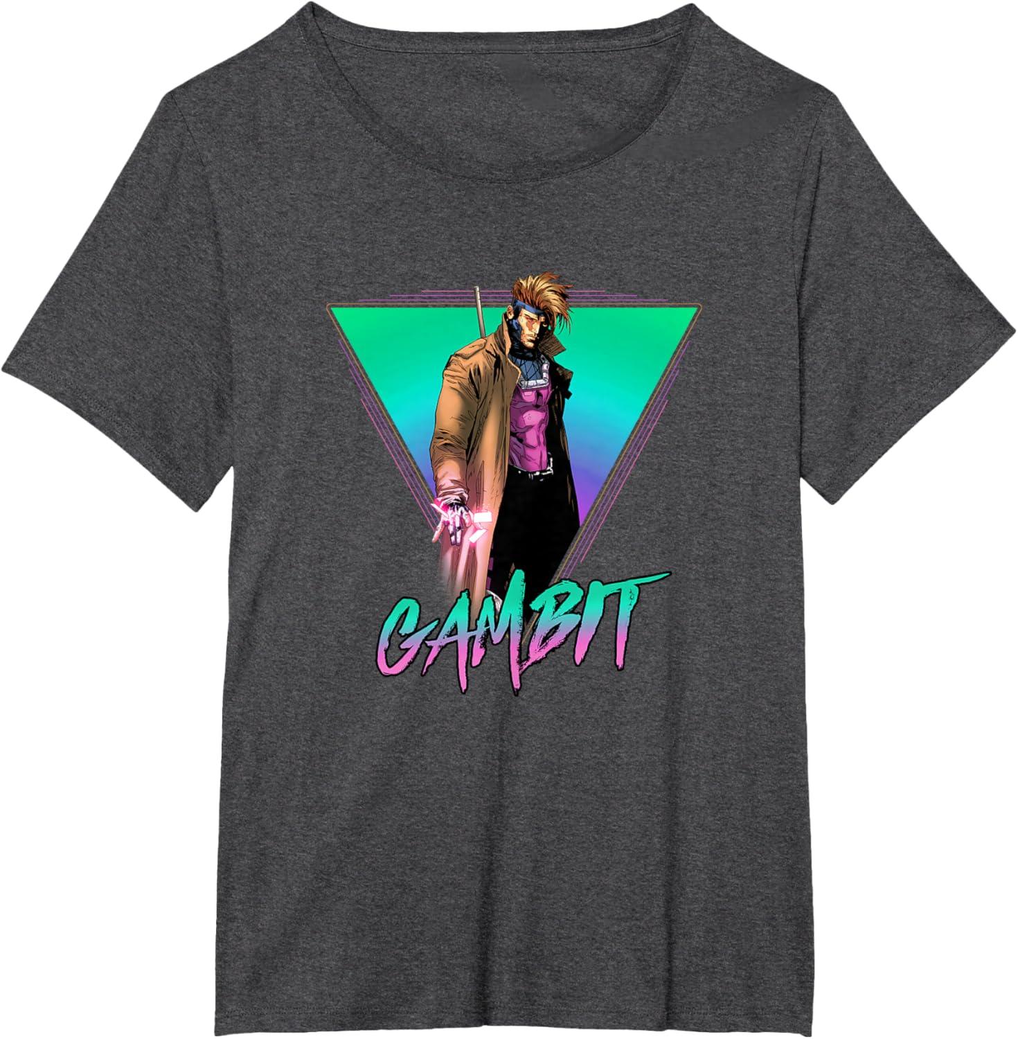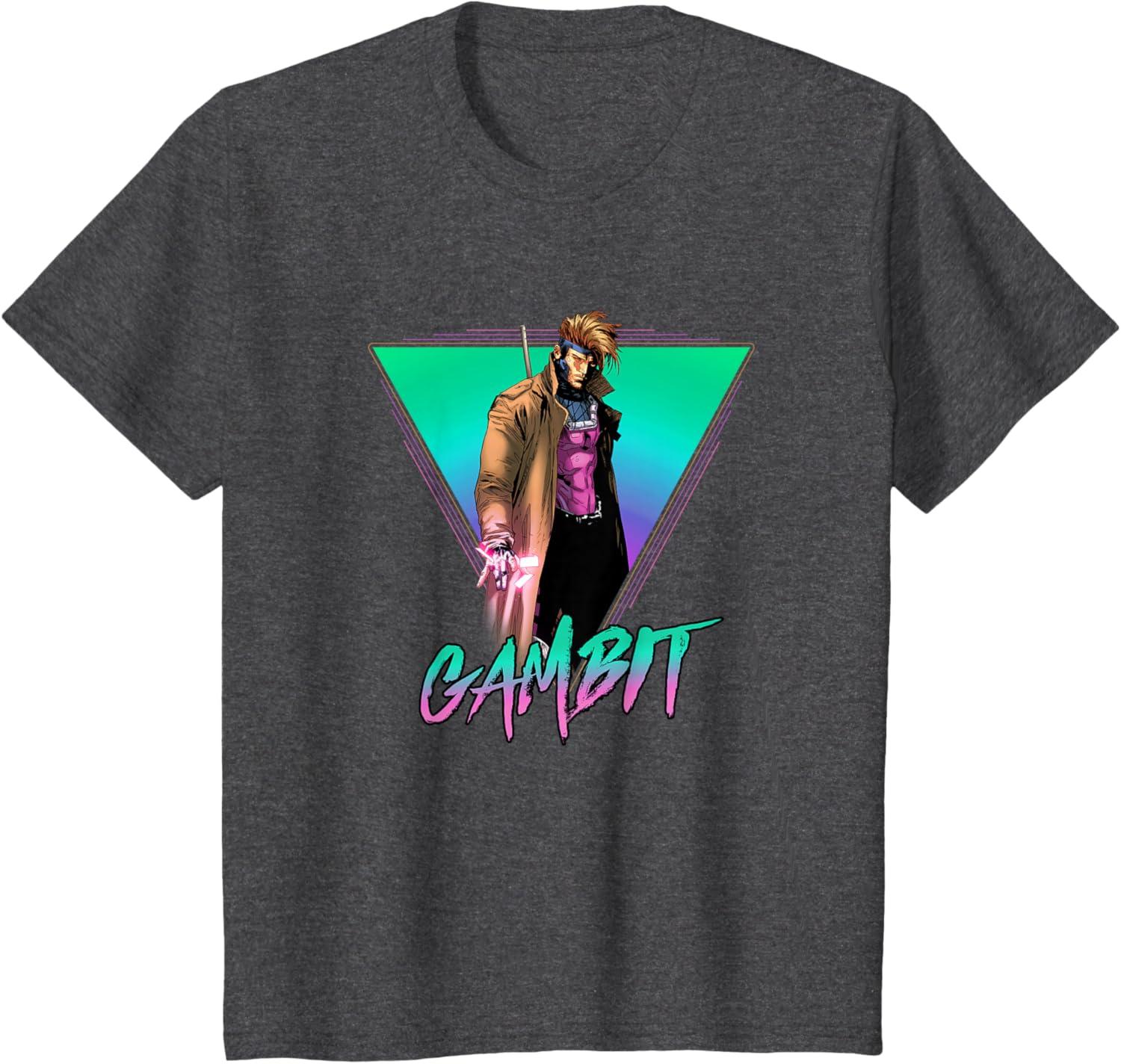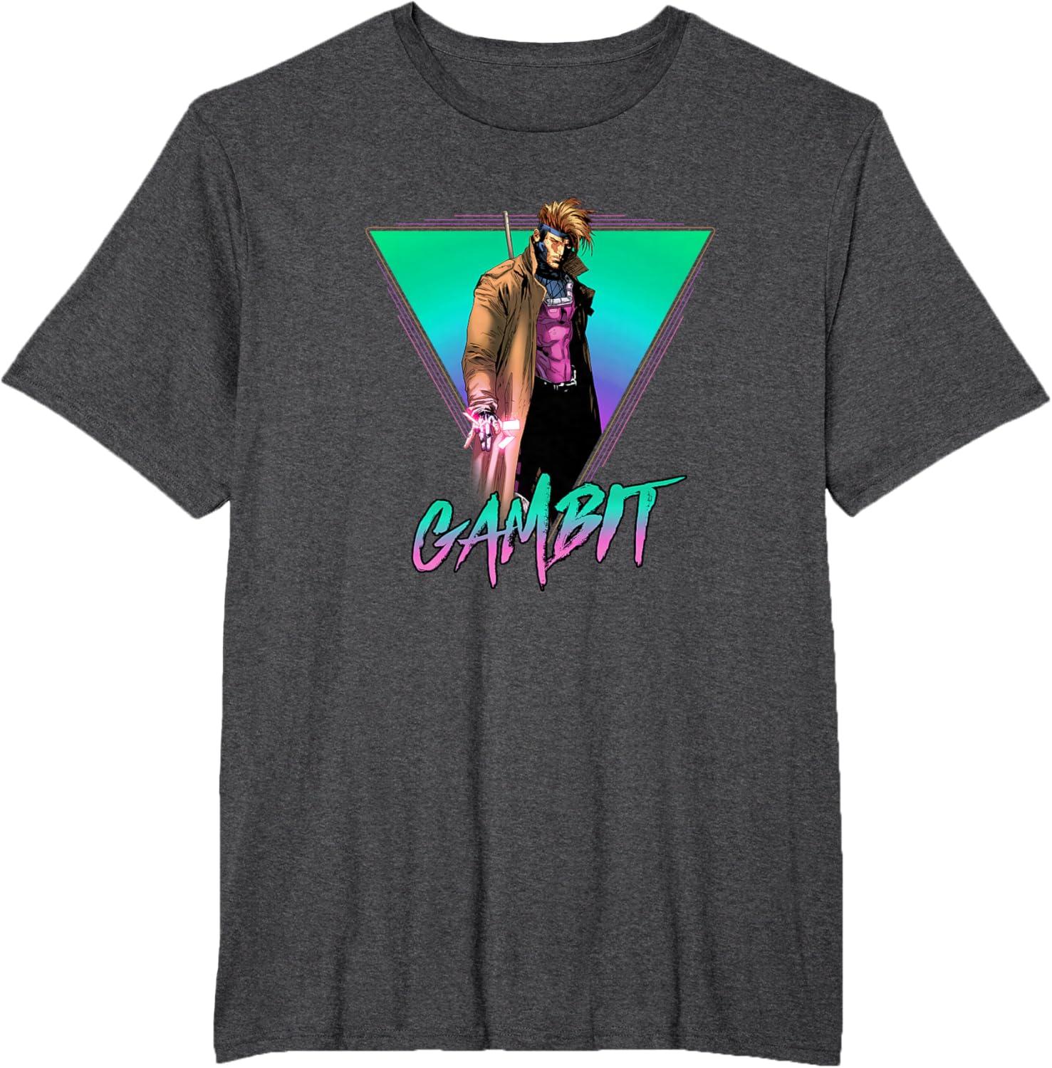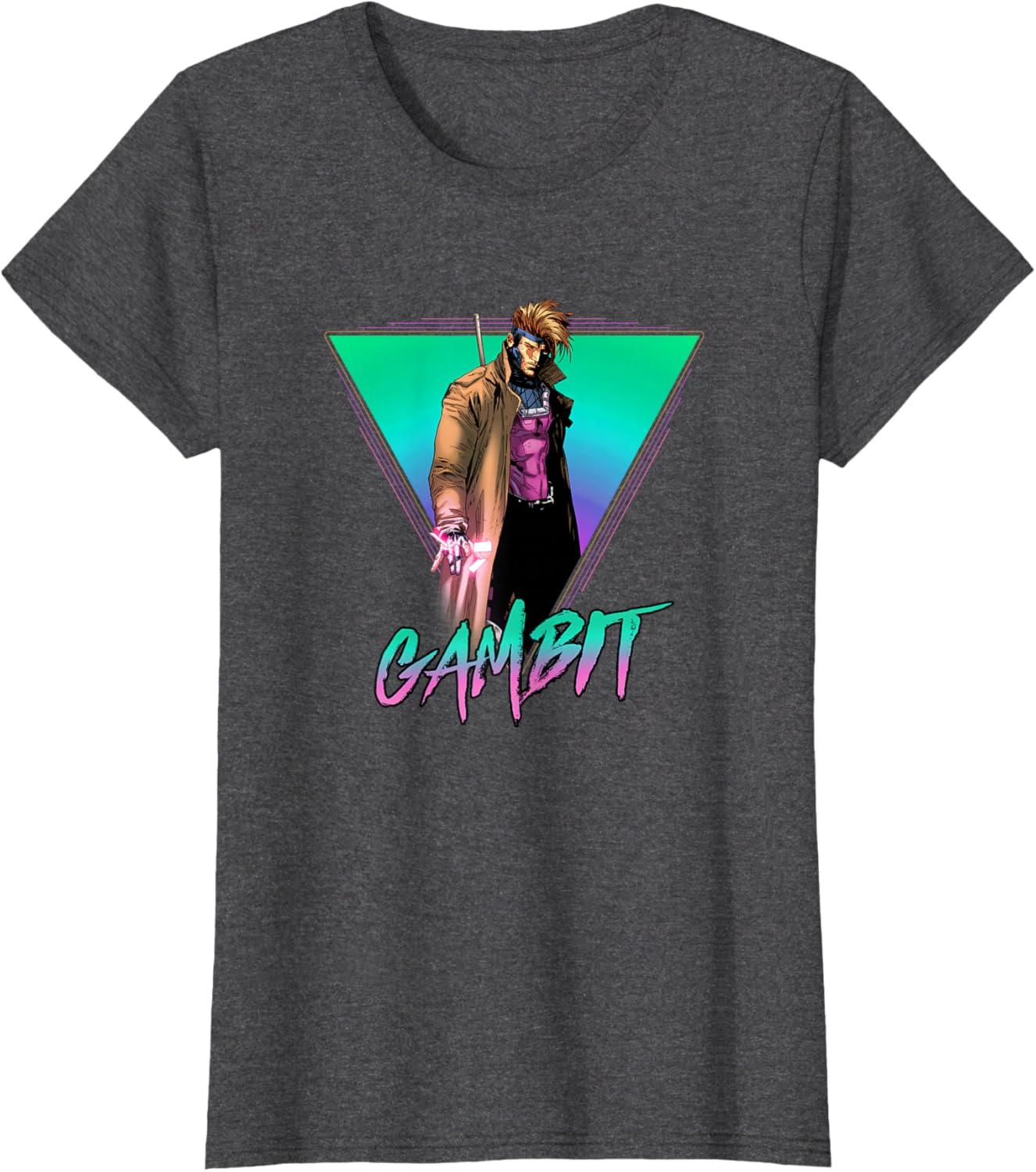 Marvel X-Men Gambit Epic Neon 80’s Style Retro Portrait T-Shirt(Heather Grey)