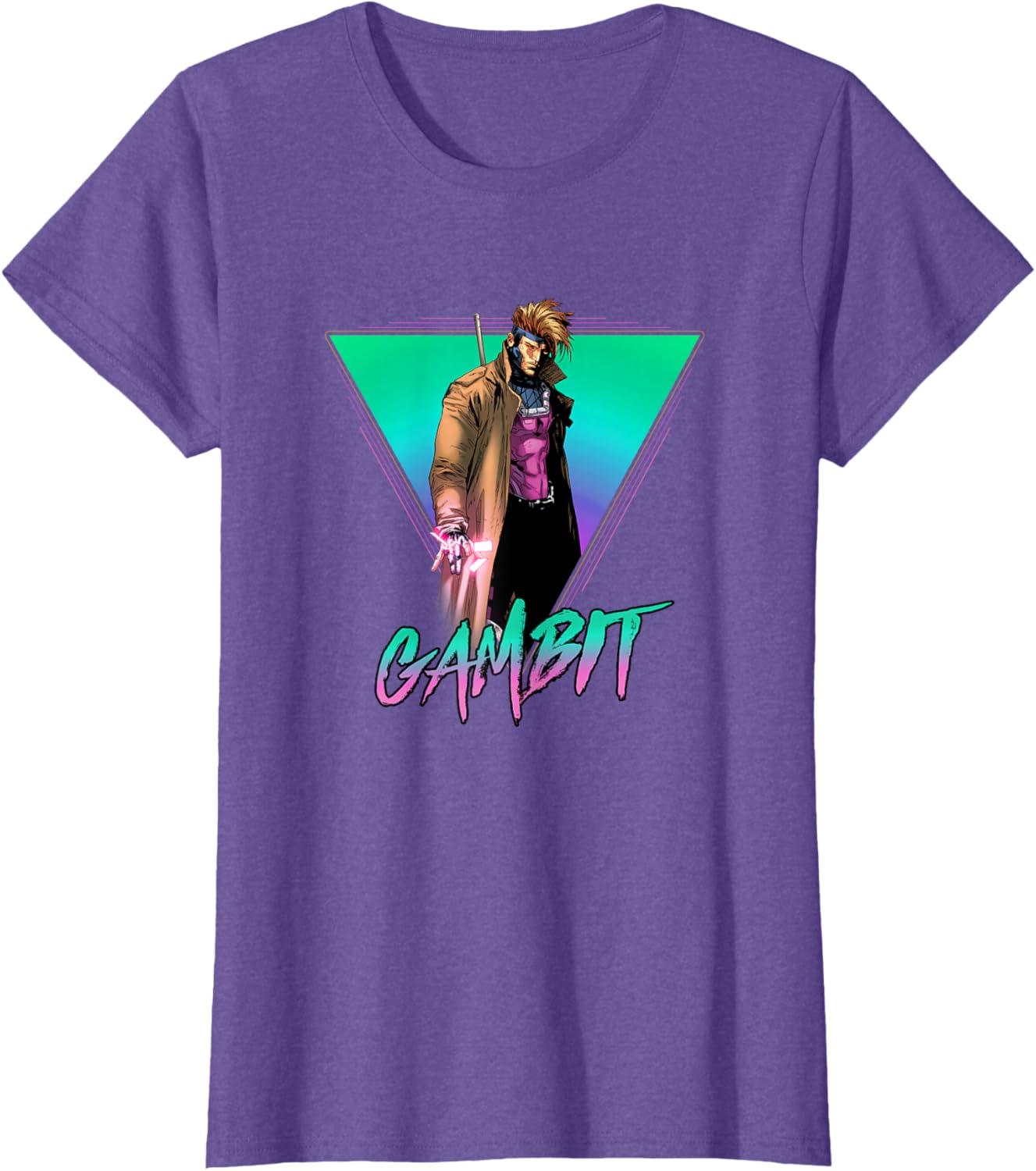 Marvel X-Men Gambit Epic Neon 80’s Style Retro Portrait T-Shirt(Purple Heather)