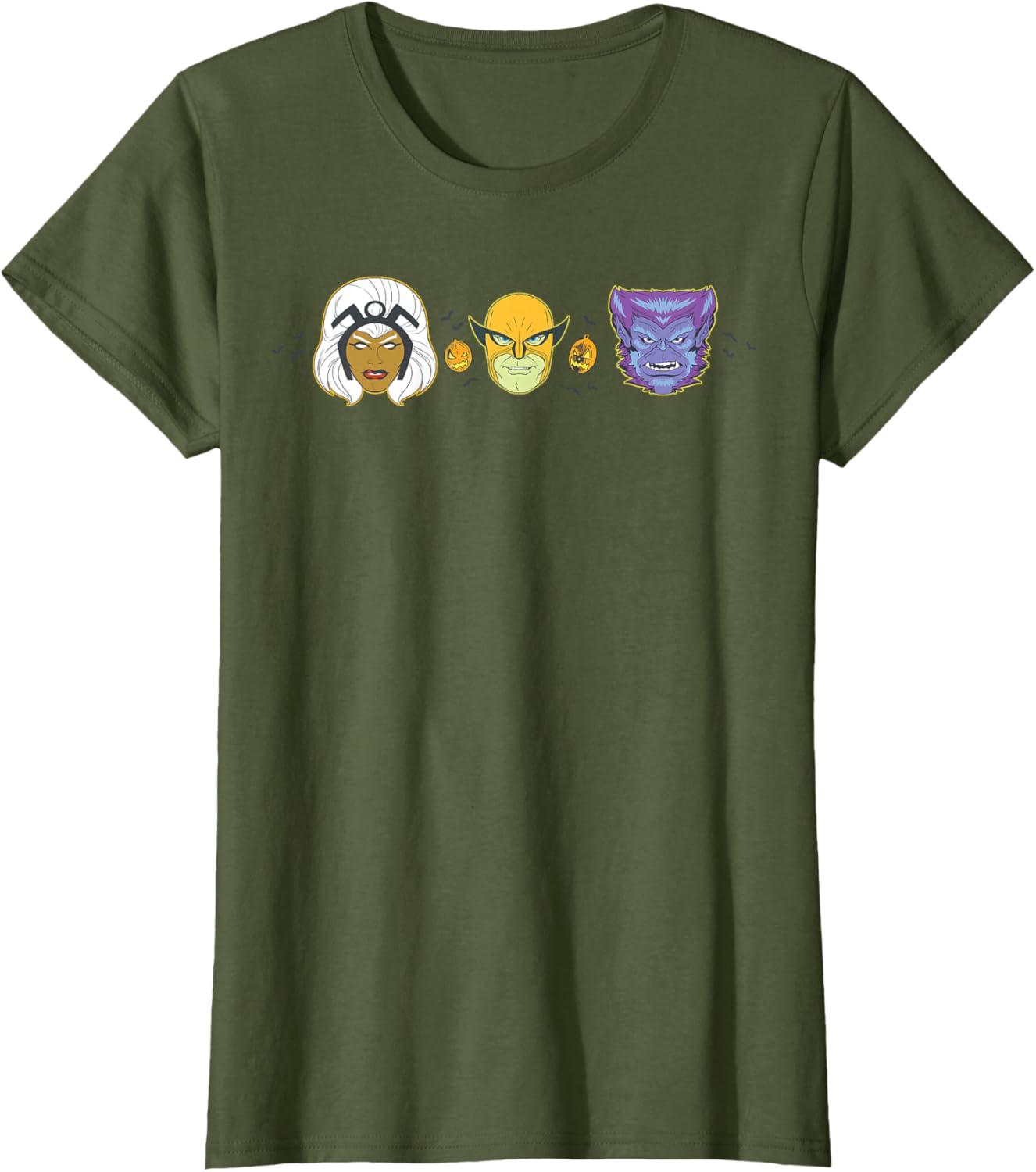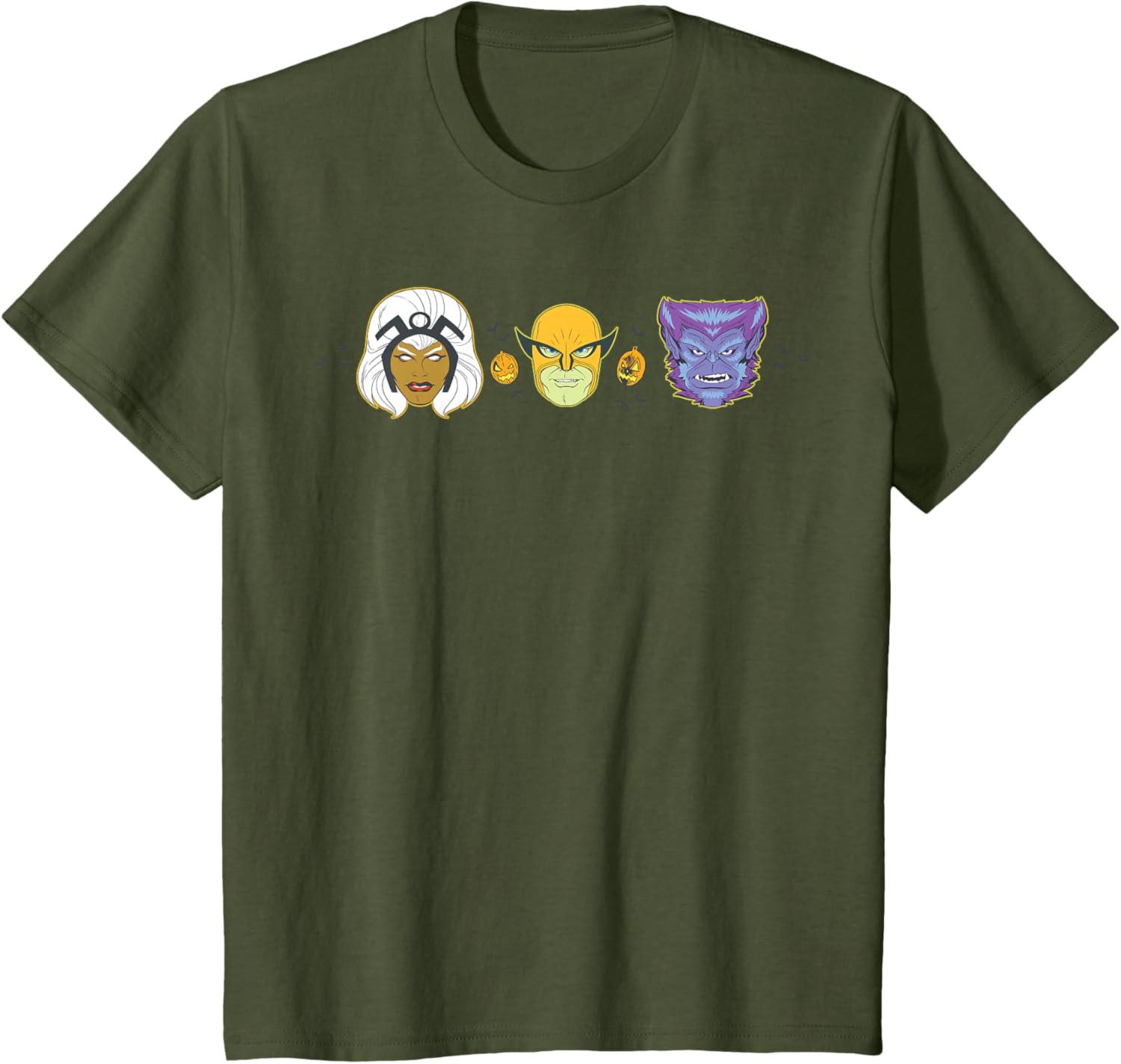 Make your Halloween a little bit retro and a whole lot super with this official Marvel tee or hoodie, featuring bats, jack-o'-lantern pumpkins, and 1960s-style costume mask illustrations of Storm, Wolverine, and the Beast from the X-Men with dotted outlines just like vintage cut-out paper masks! A great gift for a Marvel Super Heroes fan, and perfect for a superhero themed costume party or Halloween trick-or-treating. Masks are not designed for actual use — it's just a fun t-shirt! Planning a fall trip to Avengers Campus at Disney California Adventure Park, Disneyland, Walt Disney World, or another super destination? Look for our other Marvel Retro Vintage Mask graphic tee designs and wear matching Marvel Halloween t-shirts with friends and family groups for even more superhero-sized fun! Available in youth and adult sizes. Find it in a t-shirt, premium t-shirt, tank top, v-neck, long sleeve tee, hoodie, and sweatshirt.