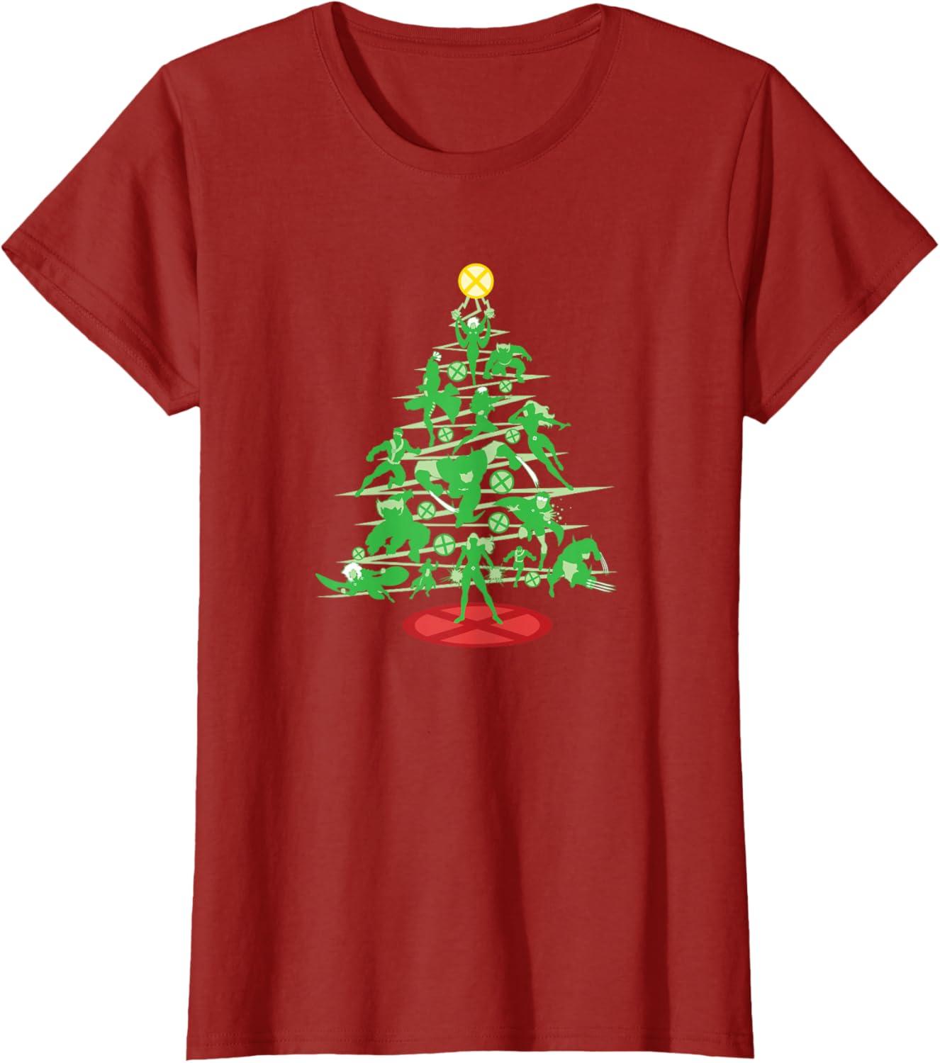 Marvel X-Men Mutant Christmas Tree T-Shirt(Cranberry Red)