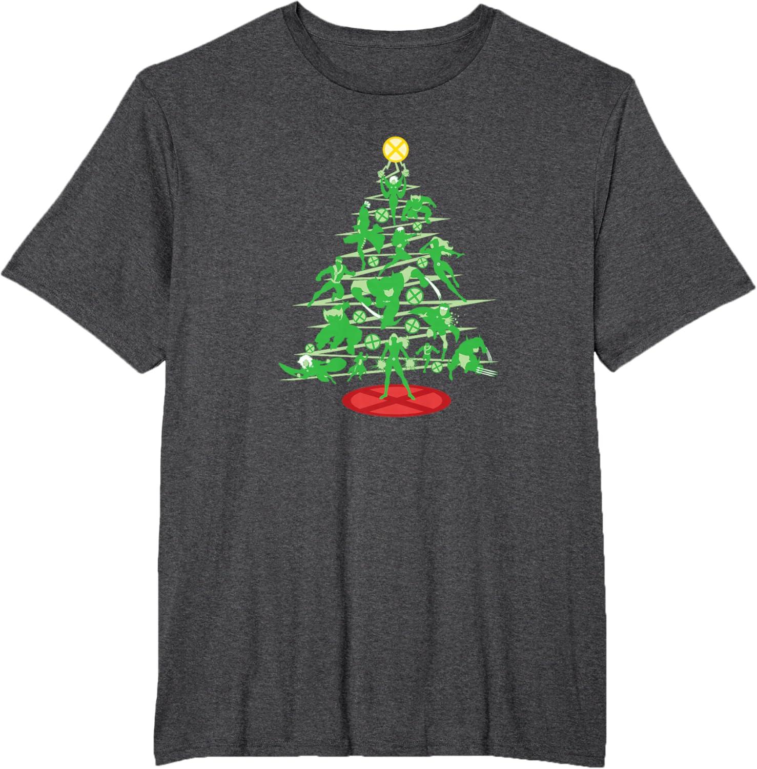 Marvel X-Men Mutant Christmas Tree T-Shirt(Dark Heather Grey)