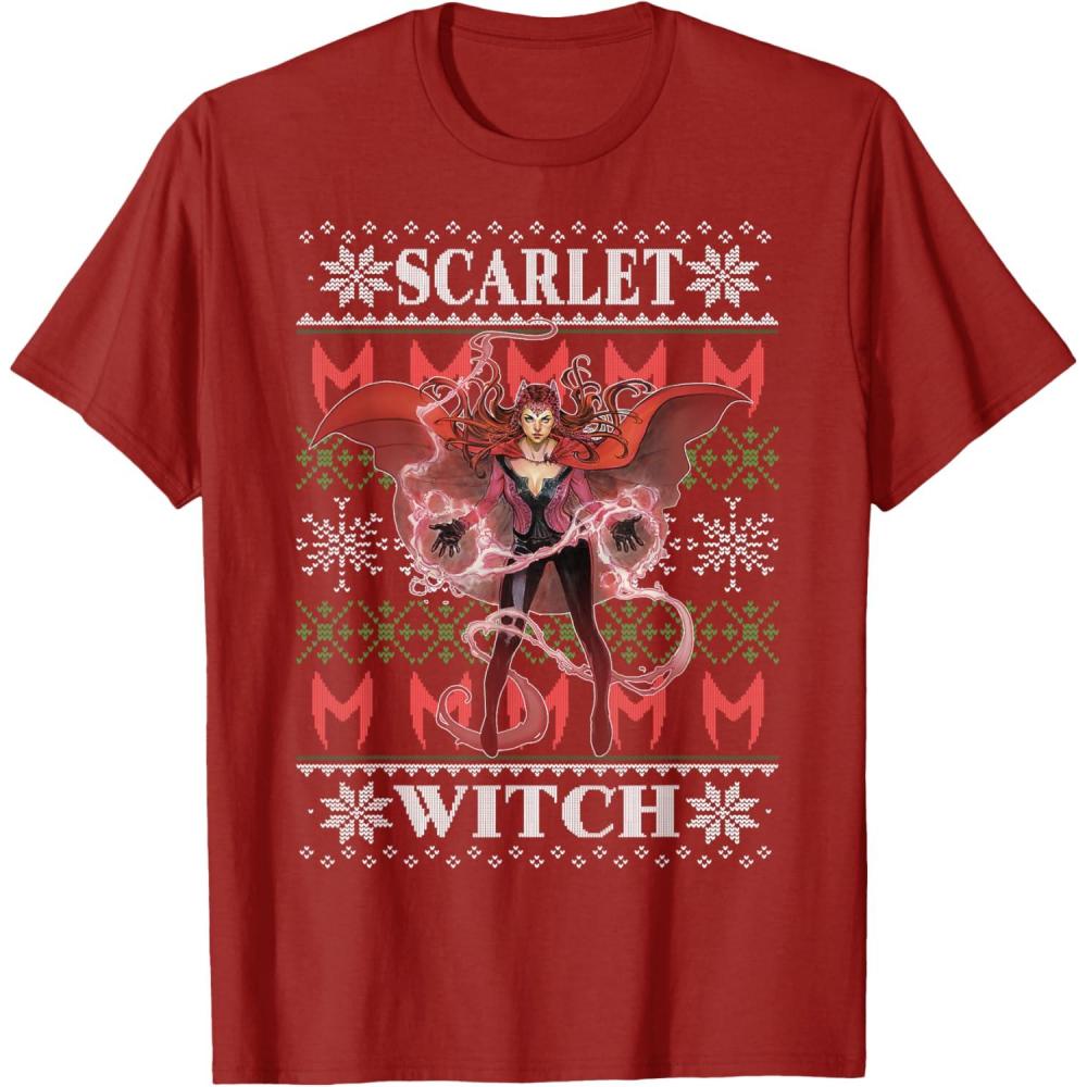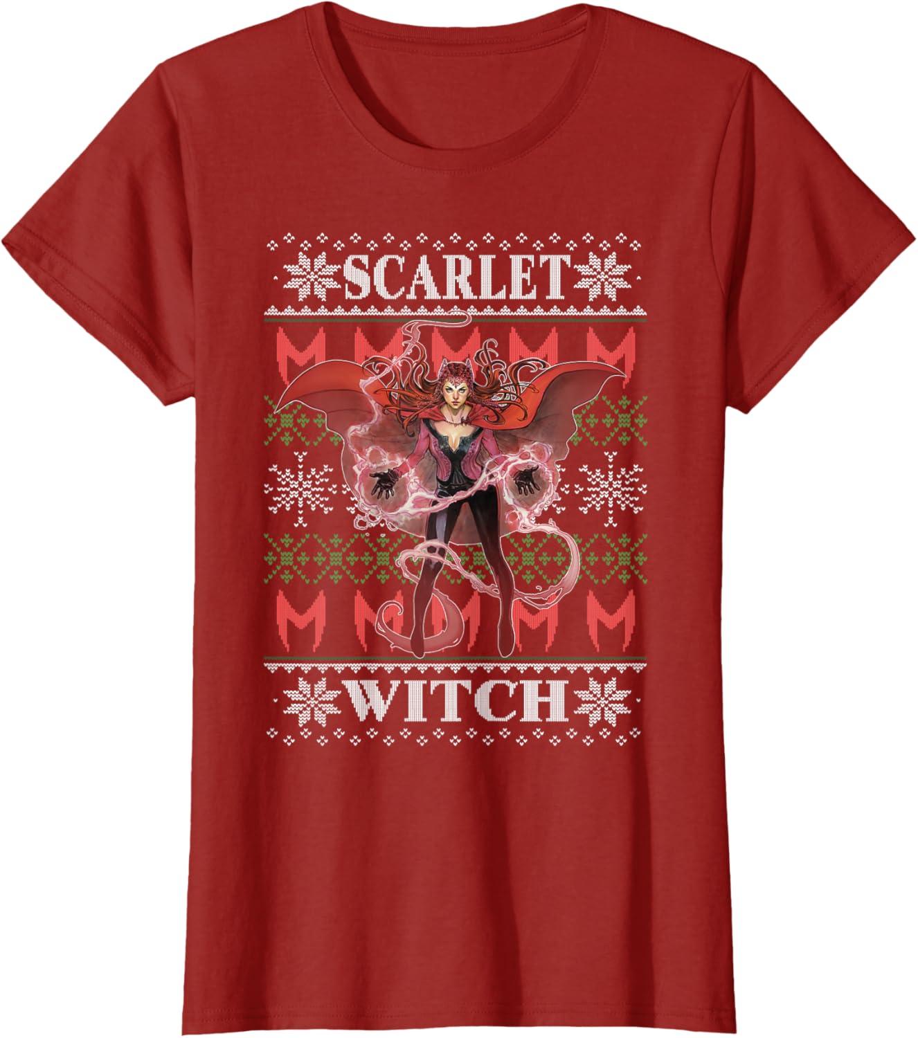 Marvel X-Men Scarlet Witch Ugly Christmas Sweater T-Shirt(Cranberry Red)