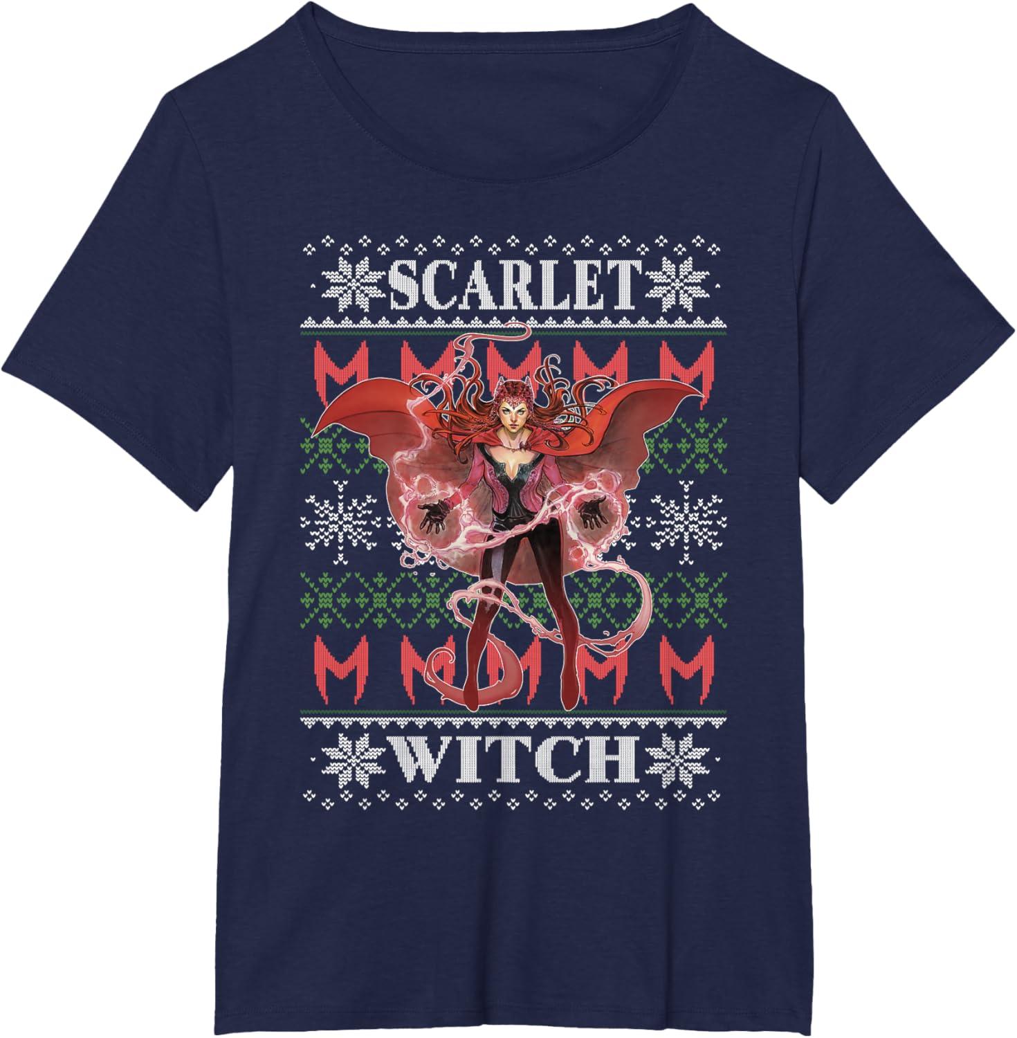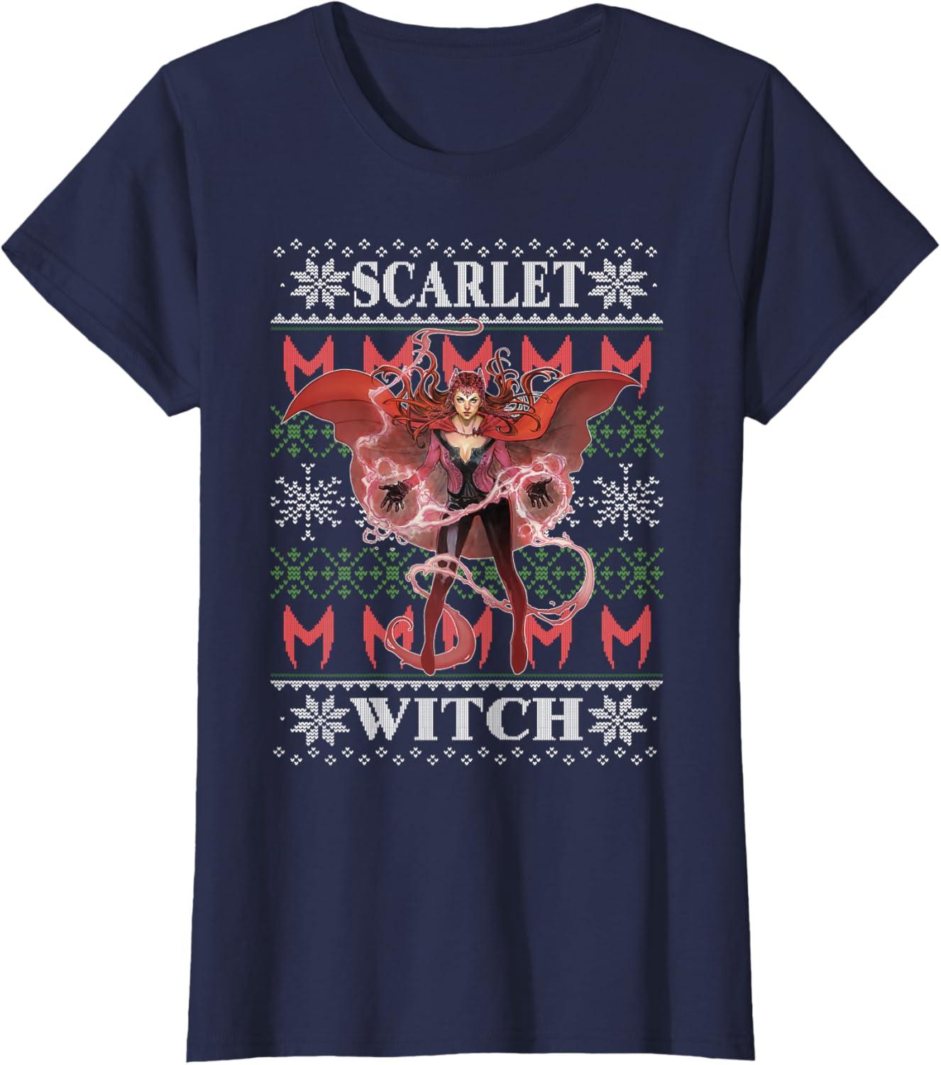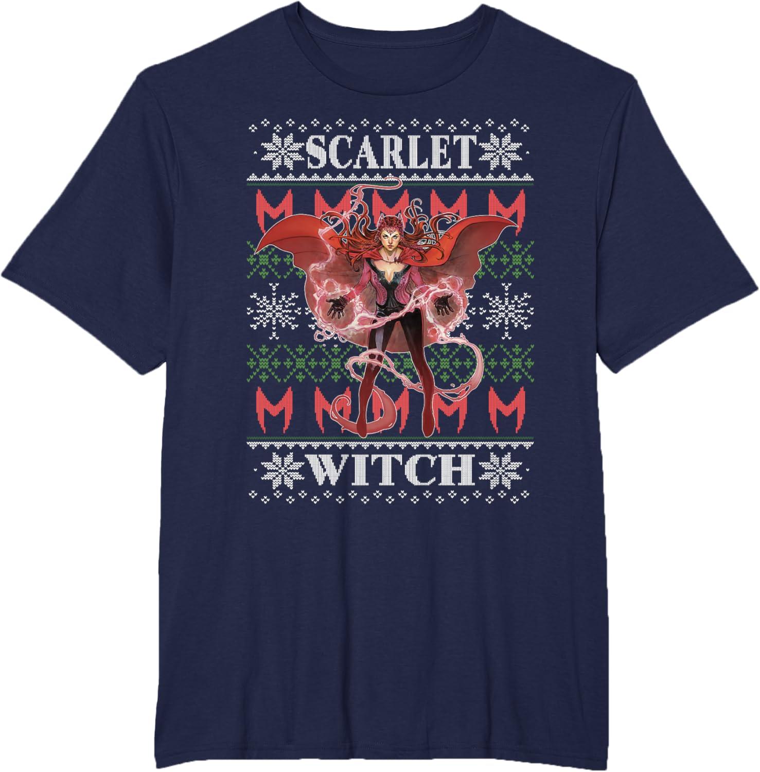 Marvel X-Men Scarlet Witch Ugly Christmas Sweater T-Shirt(Navy Blue)