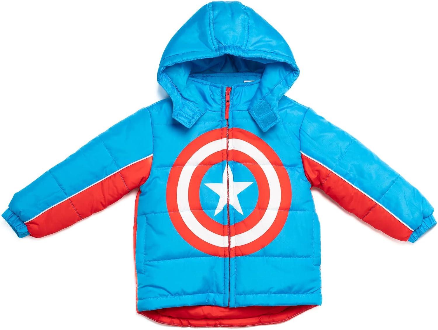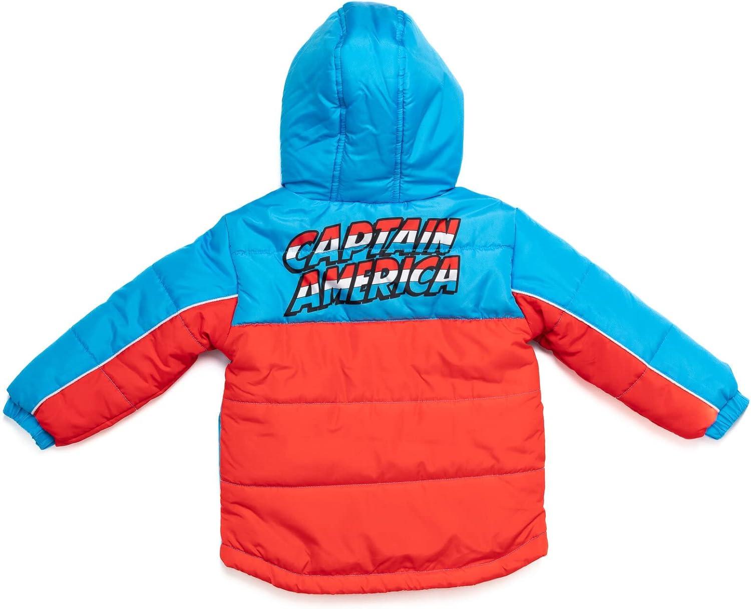 Marvel Zip Up Cosplay Puffer Jacket Toddler to Big Kid Sizes (2T – 14-16)(Captain America Blue)