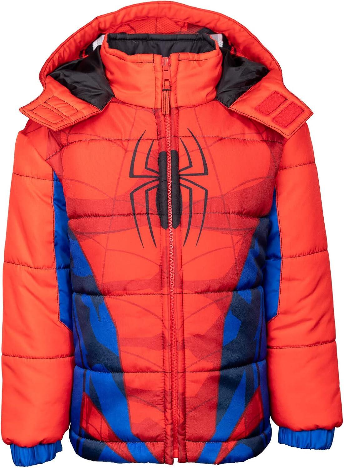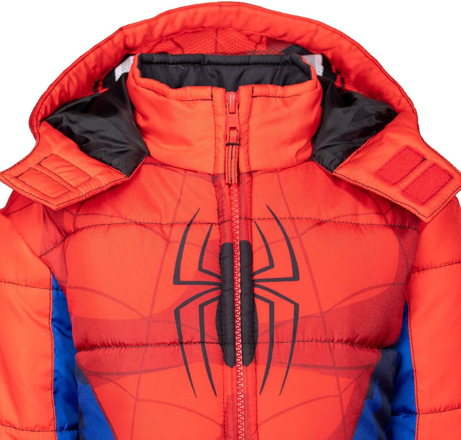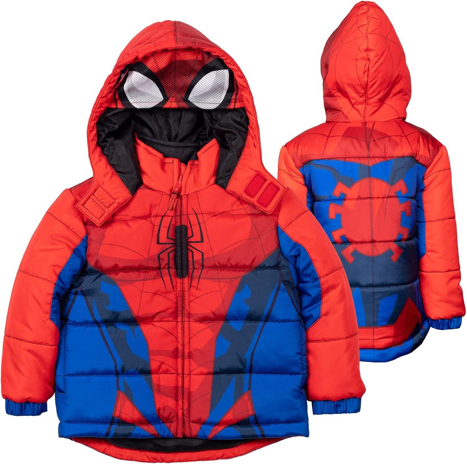 Marvel Zip Up Cosplay Puffer Jacket Toddler to Big Kid Sizes (2T – 14-16)(Spider-man Red)