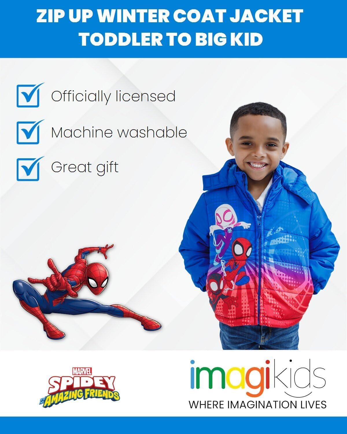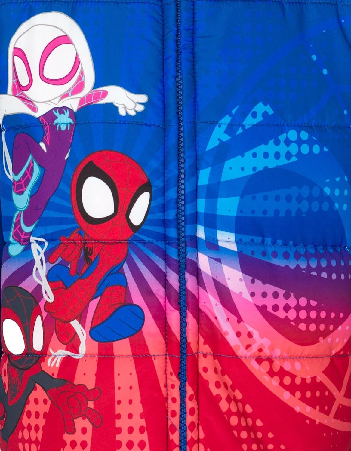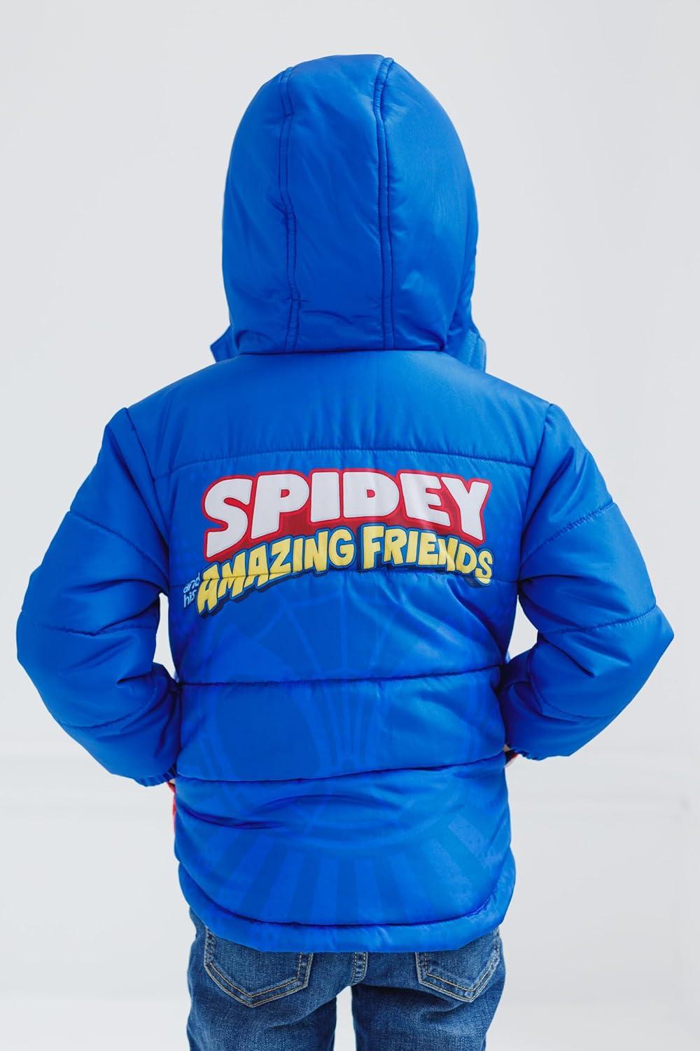 Marvel Zip Up Cosplay Puffer Jacket Toddler to Big Kid Sizes (2T - 14-16)(Spidey and His Amazing Friends Blue / Red)