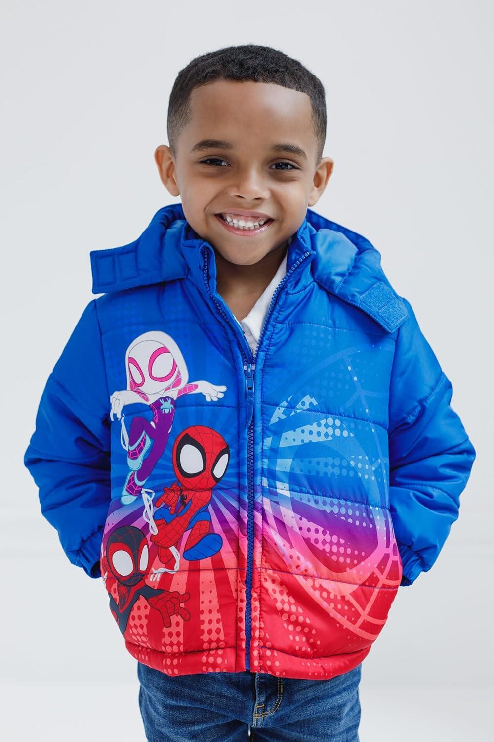 Marvel Zip Up Cosplay Puffer Jacket Toddler to Big Kid Sizes (2T – 14-16)(Spidey and His Amazing Friends Blue / Red)