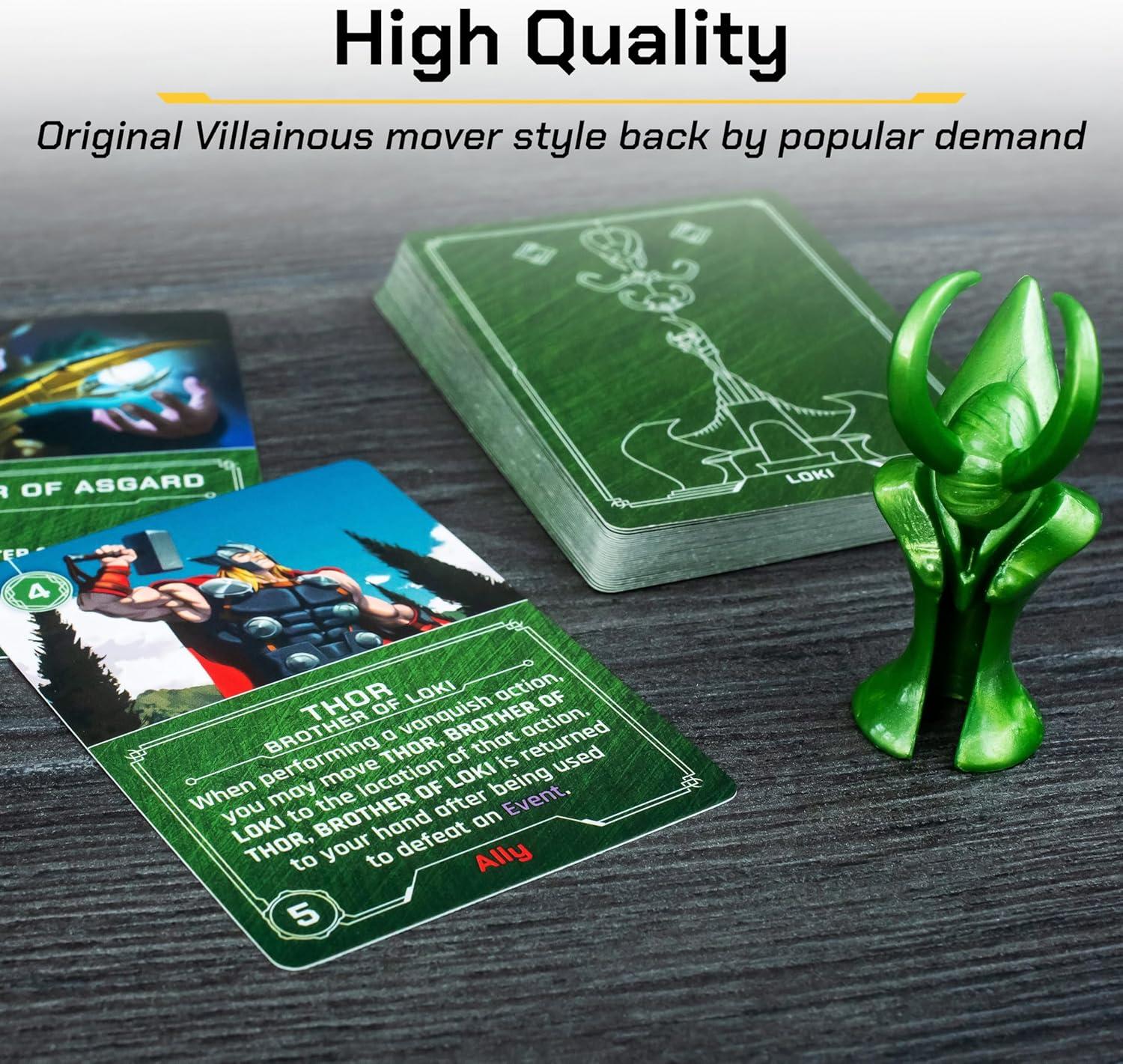 Enter the thrilling world of Marvel with Ravensburger's Marvel Villainous: Mischief & Malice Strategy Board Game. Embody one of the three Marvel Villains – Loki, Madame Masque, and M.O.D.O.K., each with a unique, story-based objective. Engage in fierce battles against iconic Marvel Heroes from a shared Fate deck. Whether you're a die-hard Marvel fan, a comic book lover, or a board game enthusiast, this game assures an engaging time at family game nights. The game comes with every component you need for an immersive game experience, including sculpted Villain movers, Villain guides, Villain Domains, unique Fate decks, a shared Fate deck, Specialty tiles, and various tokens. With three different game modes, it offers high replay value and varied difficulty levels for a fresh and exciting gameplay every time. Suitable for players aged 12 and up, it makes an excellent gift that provides 40 minutes to an hour of captivating gameplay.