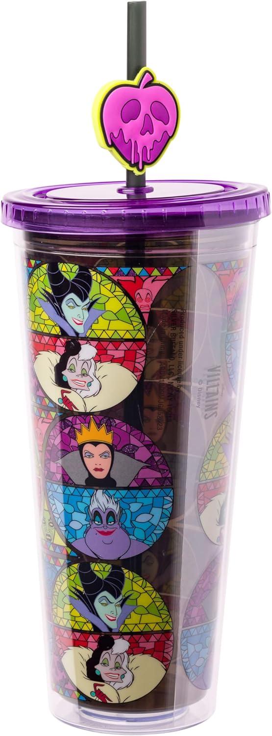 Silver Buffalo Marvel Avengers Spider-Man Plastic Cold Cup with Lid and Straw Topper, 24 Ounces(Disney Villains)