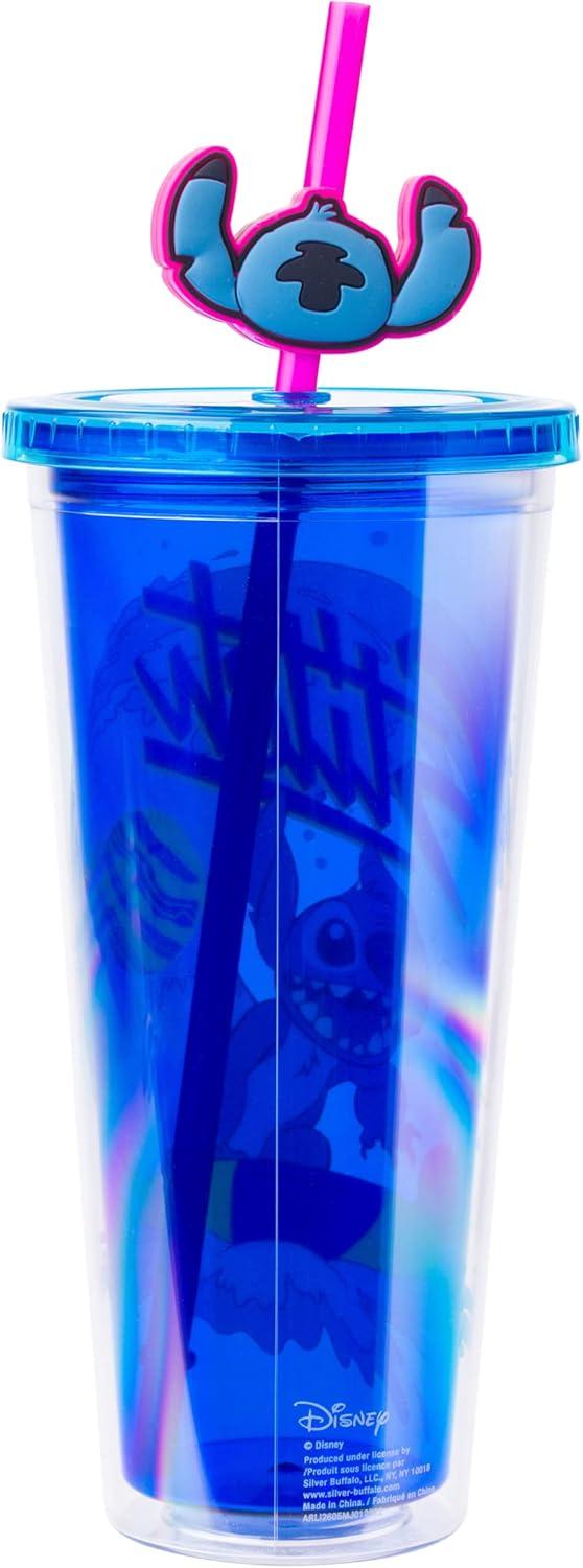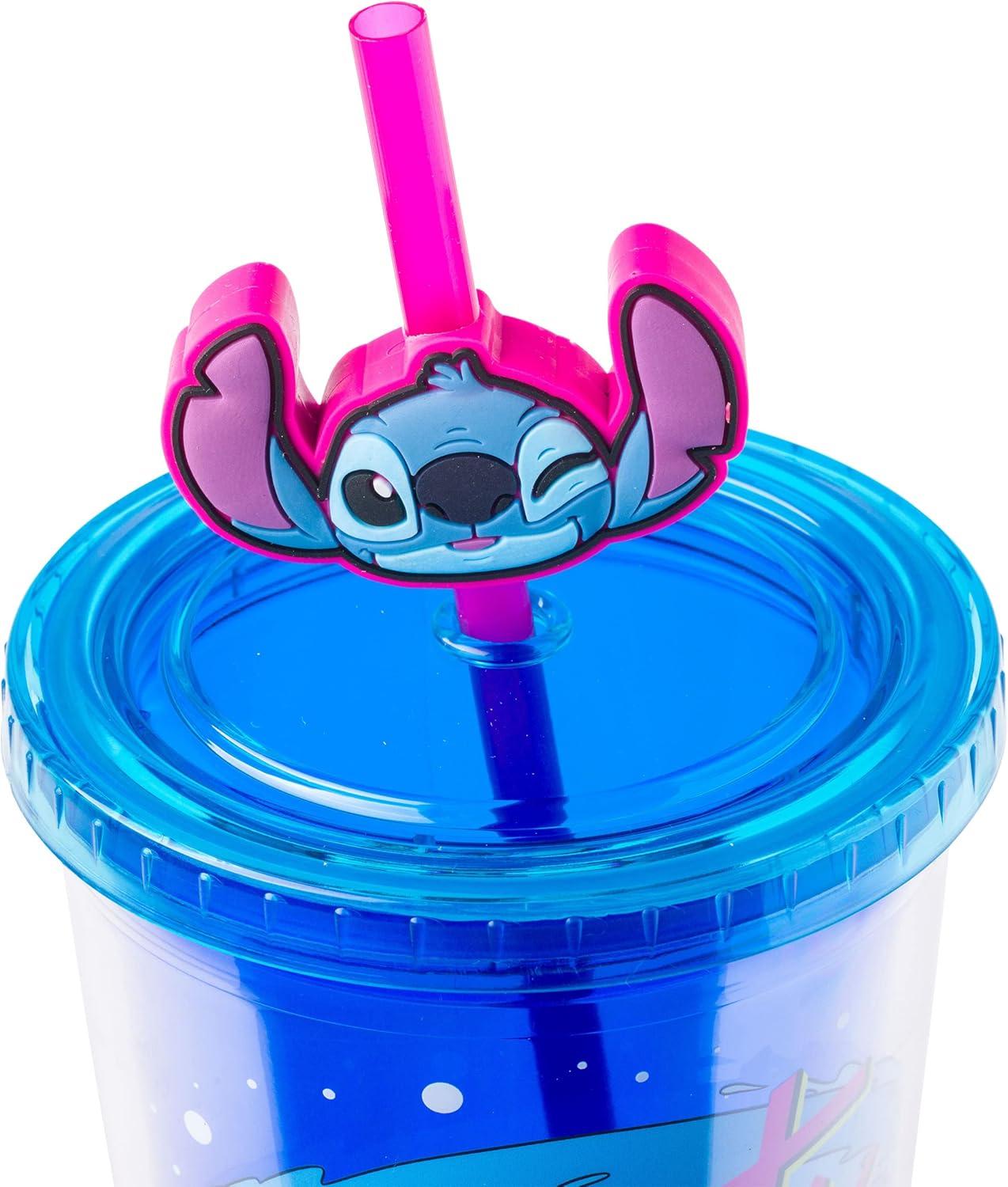imageSilver Buffalo Marvel Avengers SpiderMan Plastic Cold Cup with Lid and Straw Topper 24 OuncesLilo and Stitch Glitter