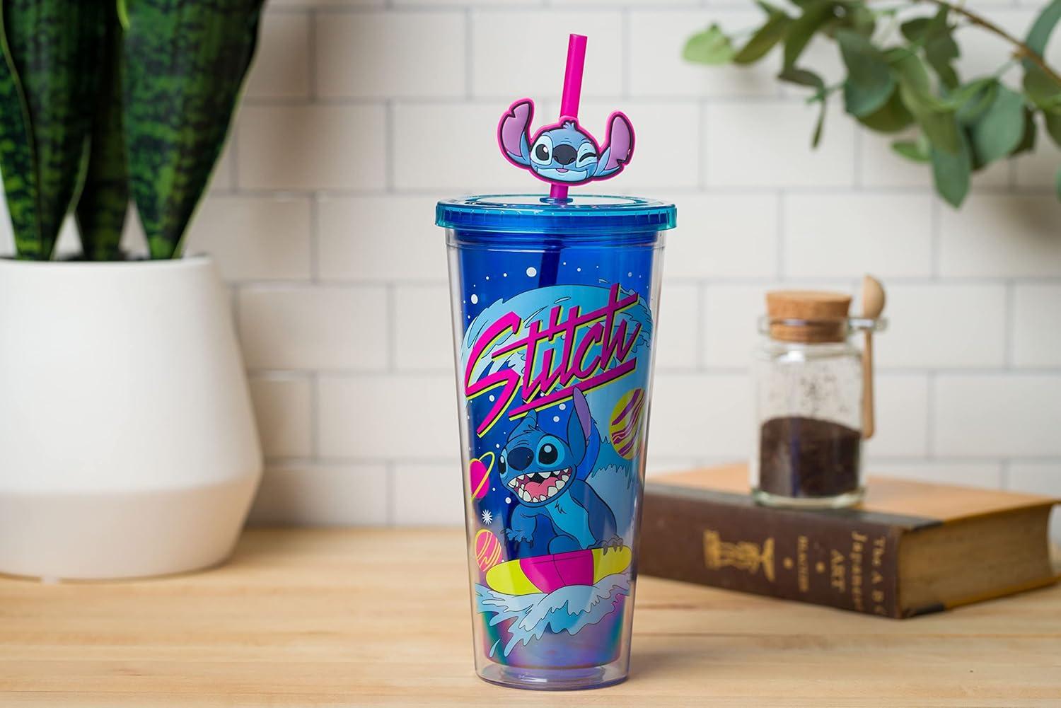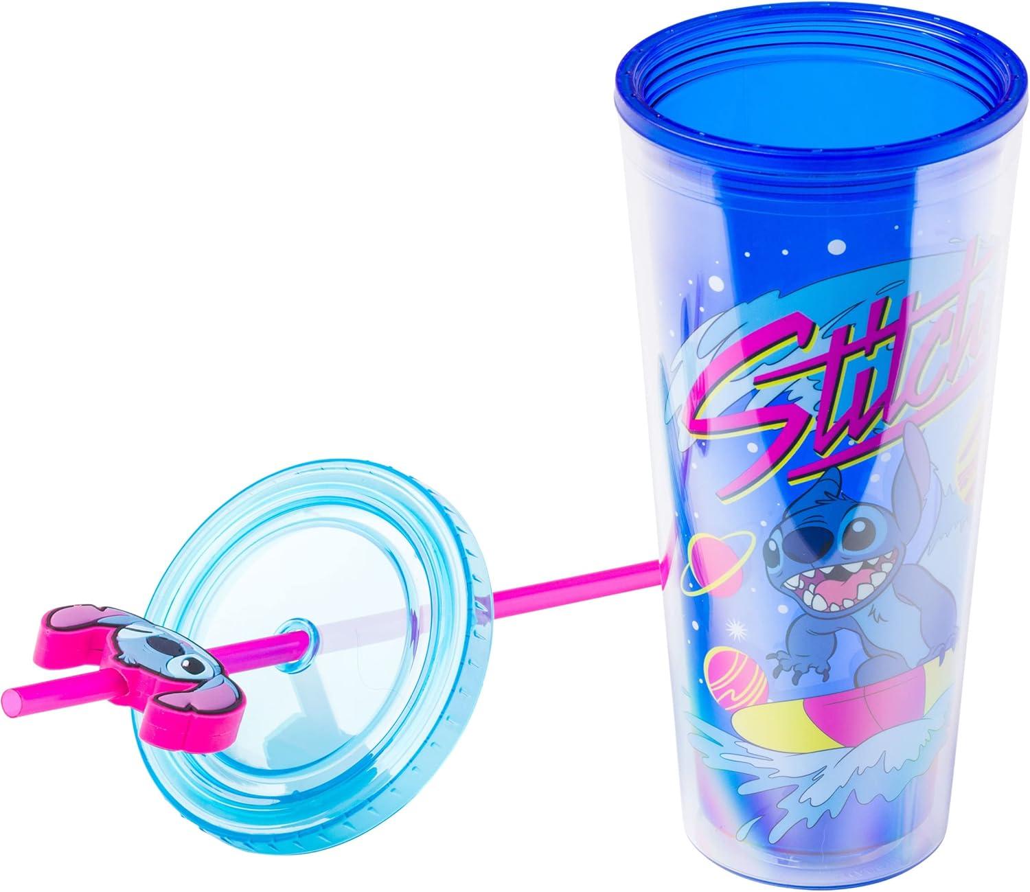 Silver Buffalo Marvel Avengers Spider-Man Plastic Cold Cup with Lid and Straw Topper, 24 Ounces(Lilo and Stitch Cosmic Surfer)