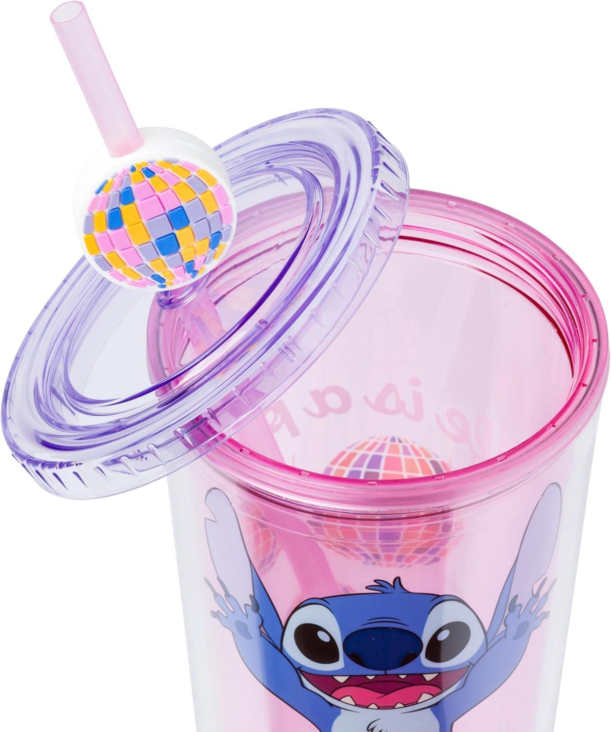 imageSilver Buffalo Marvel Avengers SpiderMan Plastic Cold Cup with Lid and Straw Topper 24 OuncesLilo and Stitch Life is a Party