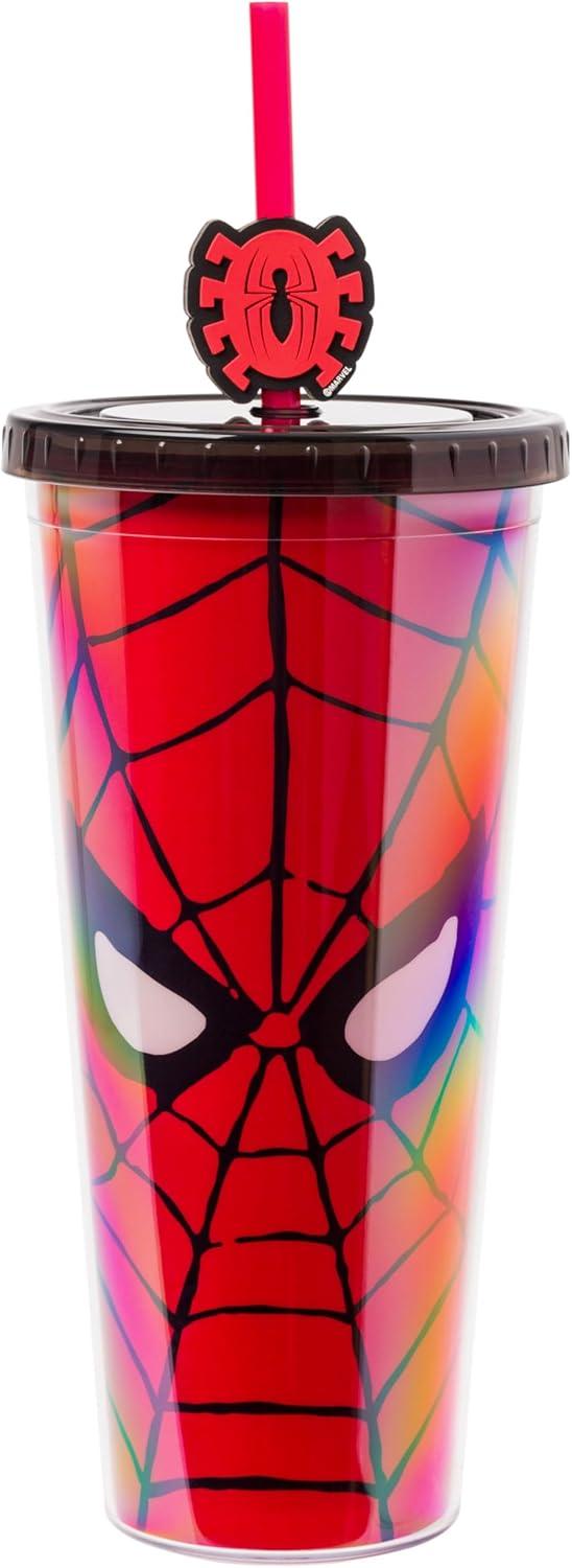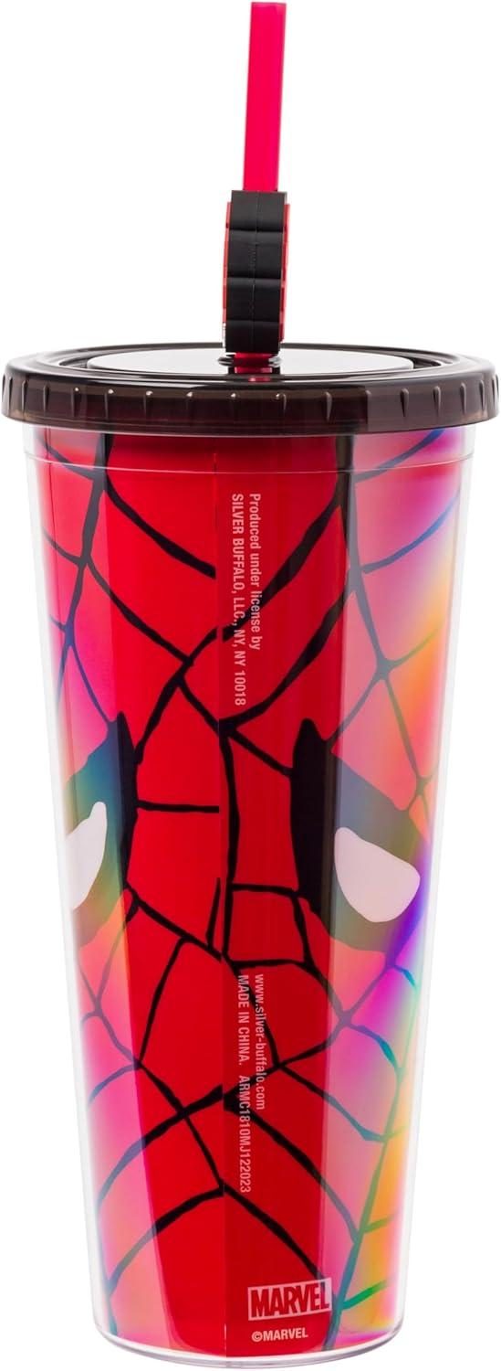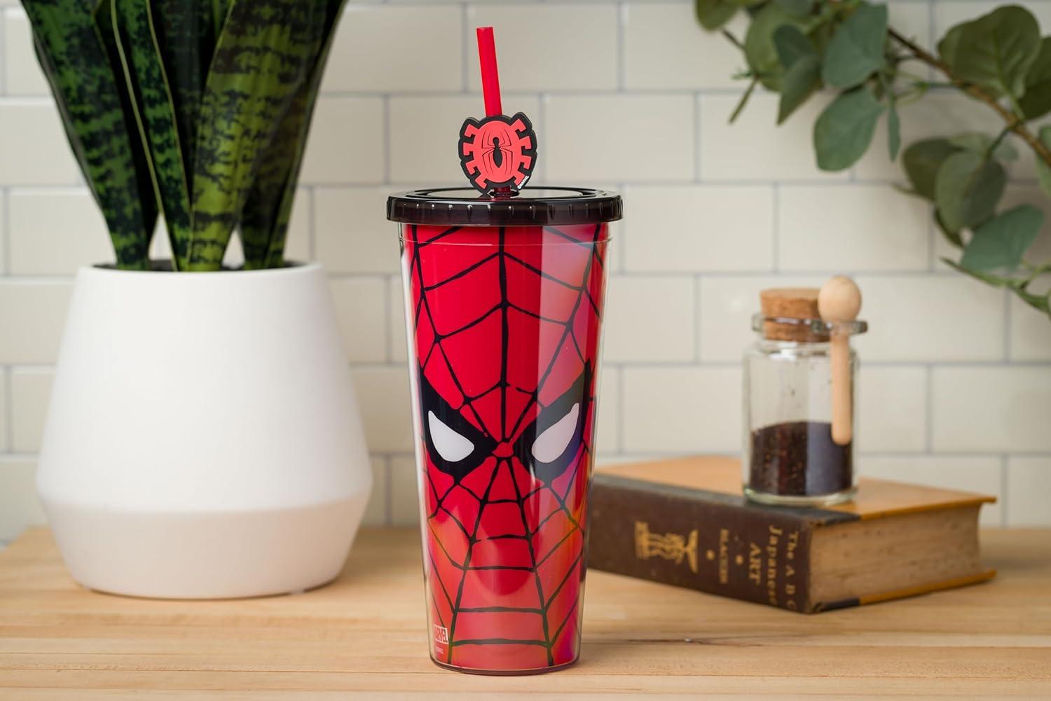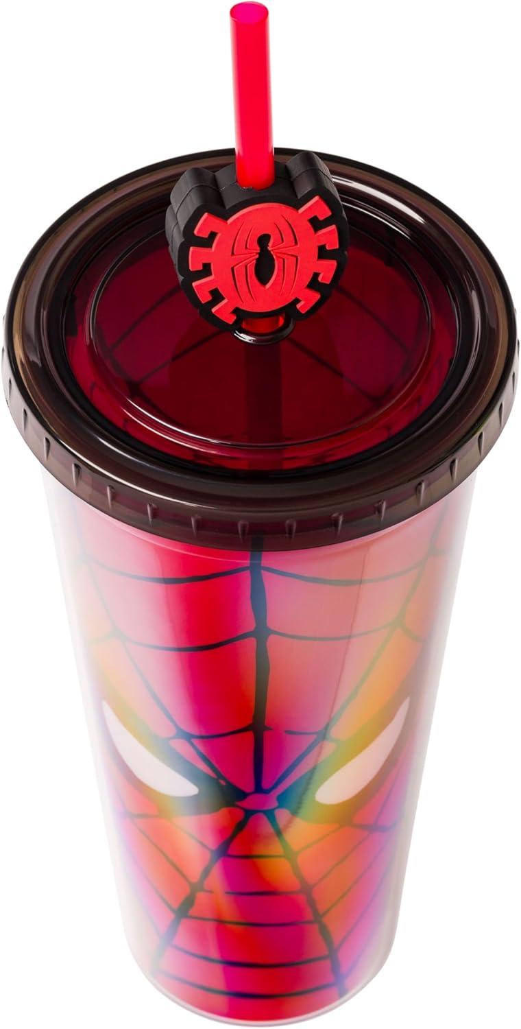 Silver Buffalo Marvel Avengers Spider-Man Plastic Cold Cup with Lid and Straw Topper, 24 Ounces(Spider-Man)