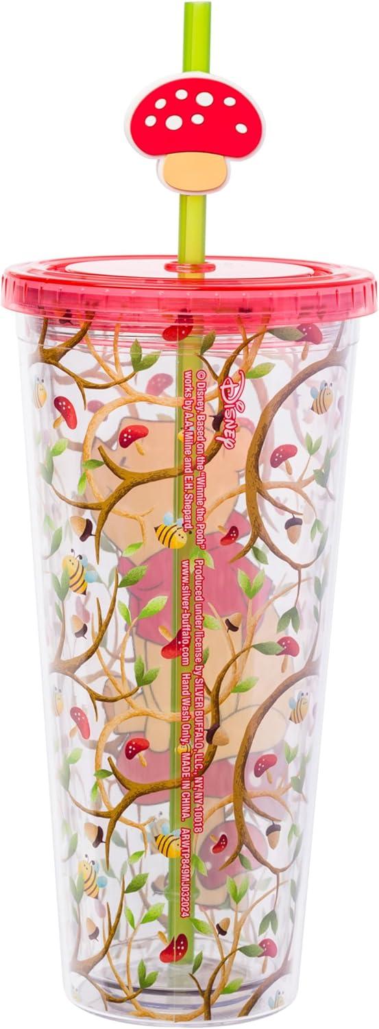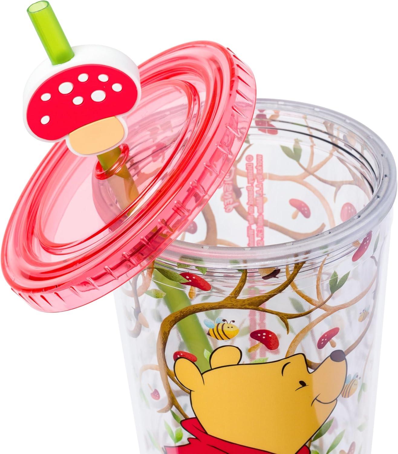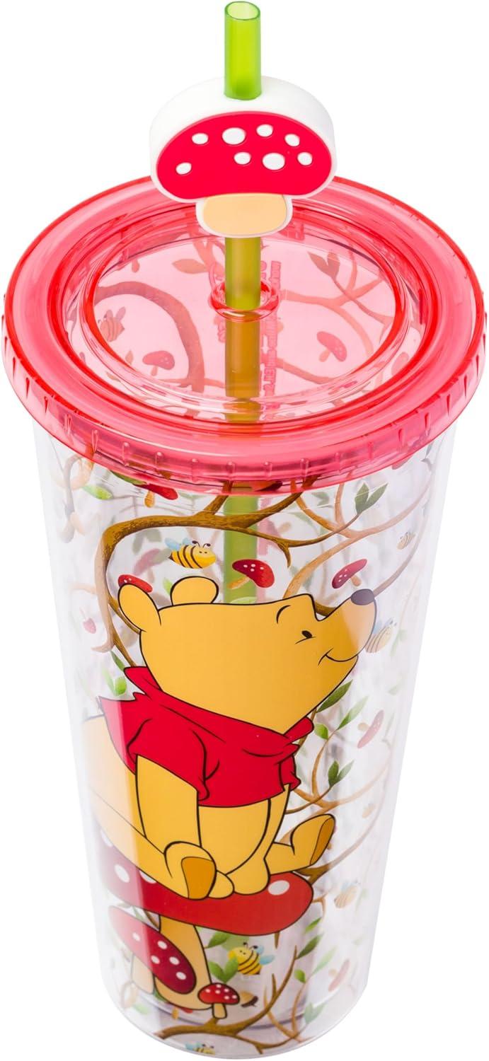 Silver Buffalo Marvel Avengers Spider-Man Plastic Cold Cup with Lid and Straw Topper, 24 Ounces(Winnie the Pooh Mushrooms)