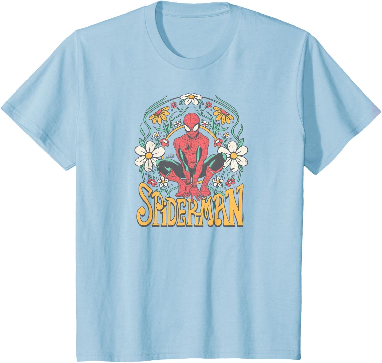 Spider-Man – Florals T-Shirt(Baby Blue)