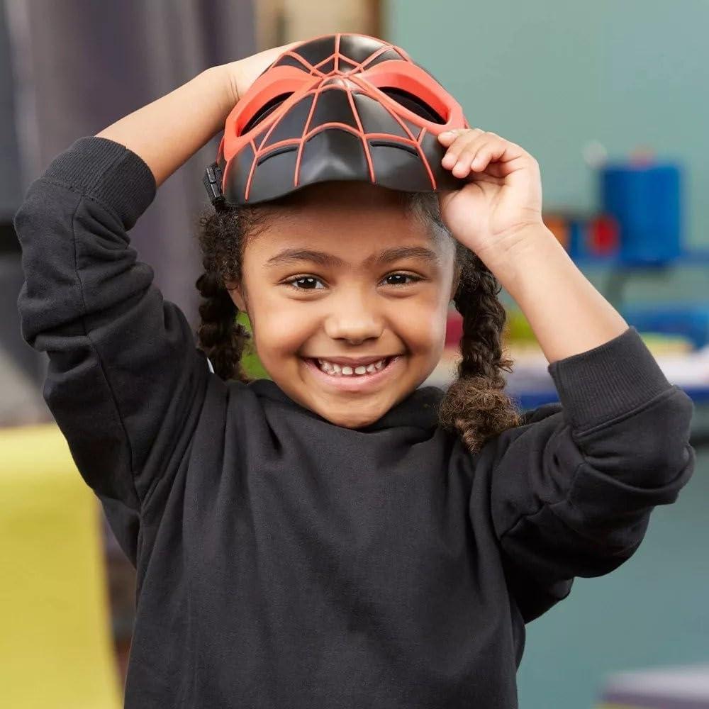 Miles Morales is dealing with the regular pressure every teenager faces, keeping his grades up, missing his friend Gwen, and trying to keep his identity as a masked vigilante hidden from his anxious parents. Imagine suiting up as Miles Morales to swing into heart-pounding action in the Spider-Verse! Kids ages 5 and up can pretend to gear up and save the world as one of their favorite wall-crawler with this Marvel Spider-Man roleplay mask, inspired by the Spider-Man: Across the Spider-Verse movie. This Miles Morales roleplay toy features a flexible band that fits most aspiring web-slinging heroes. Boys and girls will love re-creating favorite moments from the Marvel entertainment, as well as imagining their own Super Hero adventures! Copyright 2022 MARVEL. Copyright 2022 SPA & CPII. Hasbro and all related terms are trademarks of Hasbro.