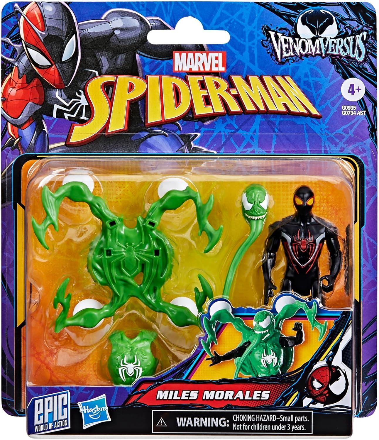 Kids can imagine unleashing Venomized web-slinging adventures and battles with their favorite Spider-Man heroes and villains! This collectible Marvel Miles Morales action figure is a part of Hasbro’s exclusive Epic World of Action series and features classic red-and-black suit design & deco, as well as poseable limbs. VenomVersus deluxe toys also include multiple Venomized accessories for symbiote web-slinging adventures. This 4-inch-scale (10cm) figure can't be missed and will be the perfect gift for kids or addition to any collection of Super Hero figures! Look for more Epic World of Action toys for boys and girls to collect, including figures, toy playsets, and vehicles! (Each sold separately. Subject to availability.) Copyright MARVEL. All trademarks and registered trademarks are the property of their respective owners. HASBRO and all related trademarks and logos are trademarks of Hasbro, Inc.