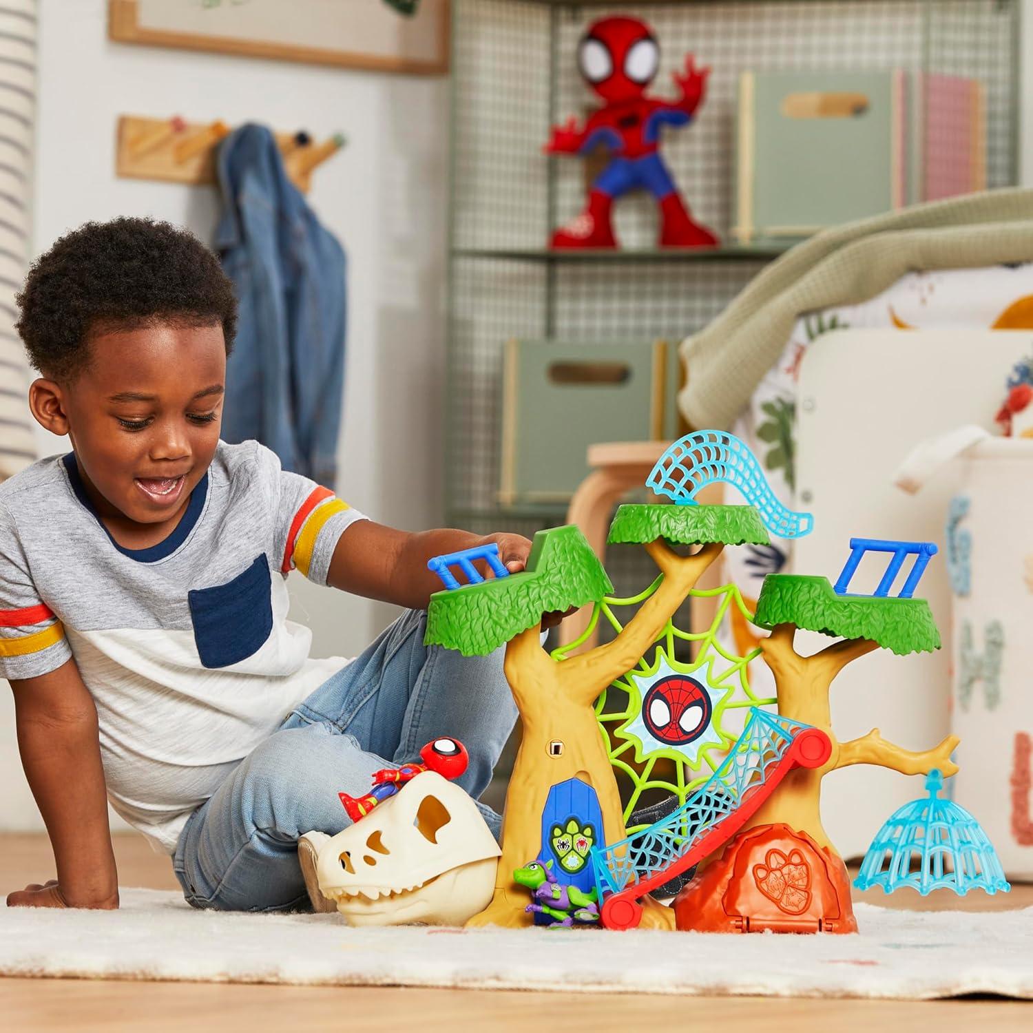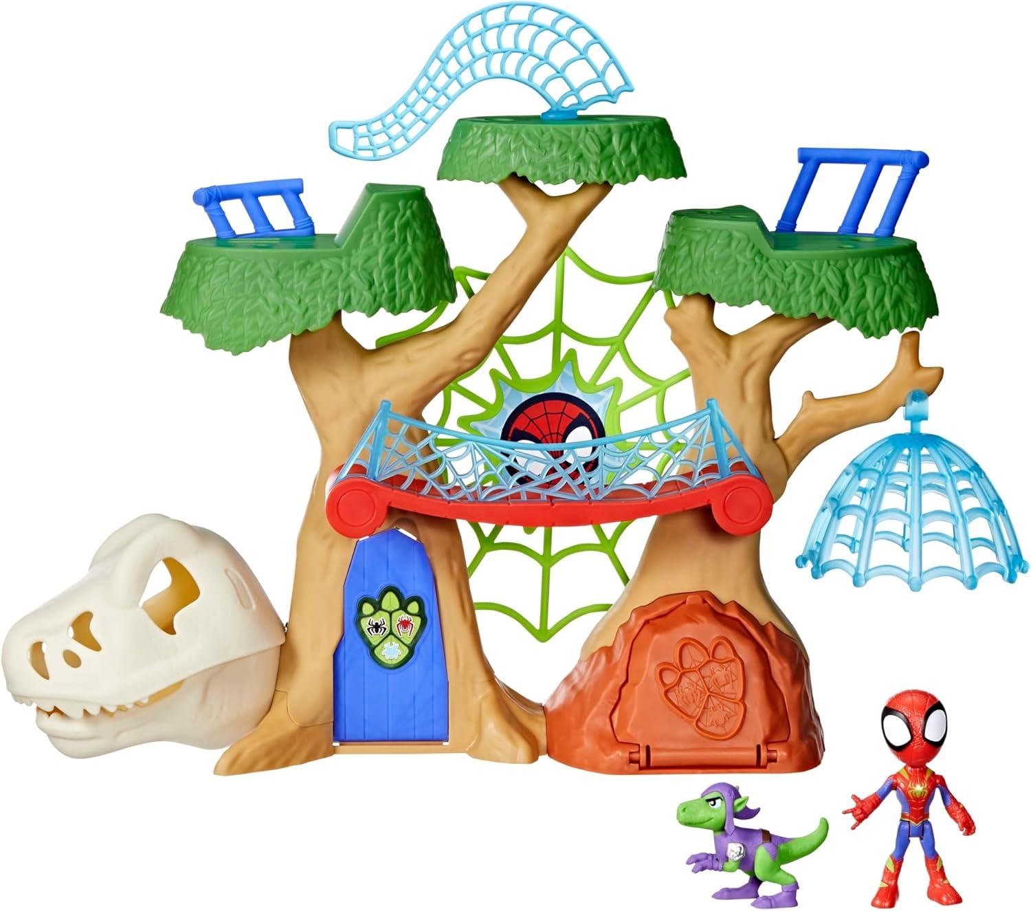 Spidey and his Amazing Friends Marvel Dino-Webs Treehouse Playset, Spider-Man & Goblin Raptor 4-Inch-Scale Action Figure Set, Ages 3 & Up