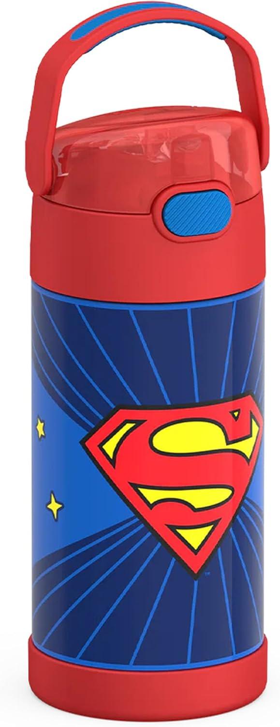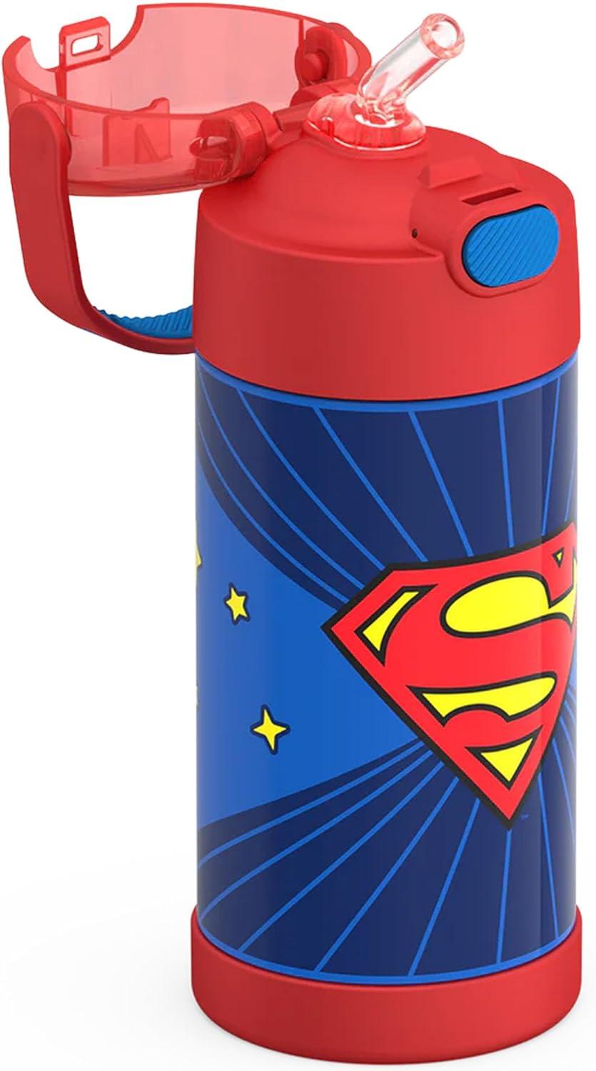 THERMOS FUNTAINER Water Bottle with Straw - 12 Ounce - Kids Stainless Steel Vacuum Insulated Water Bottle with Lid, Spider-Man(Superman)