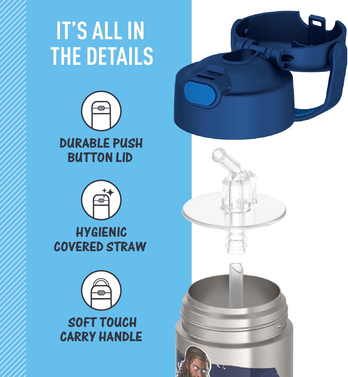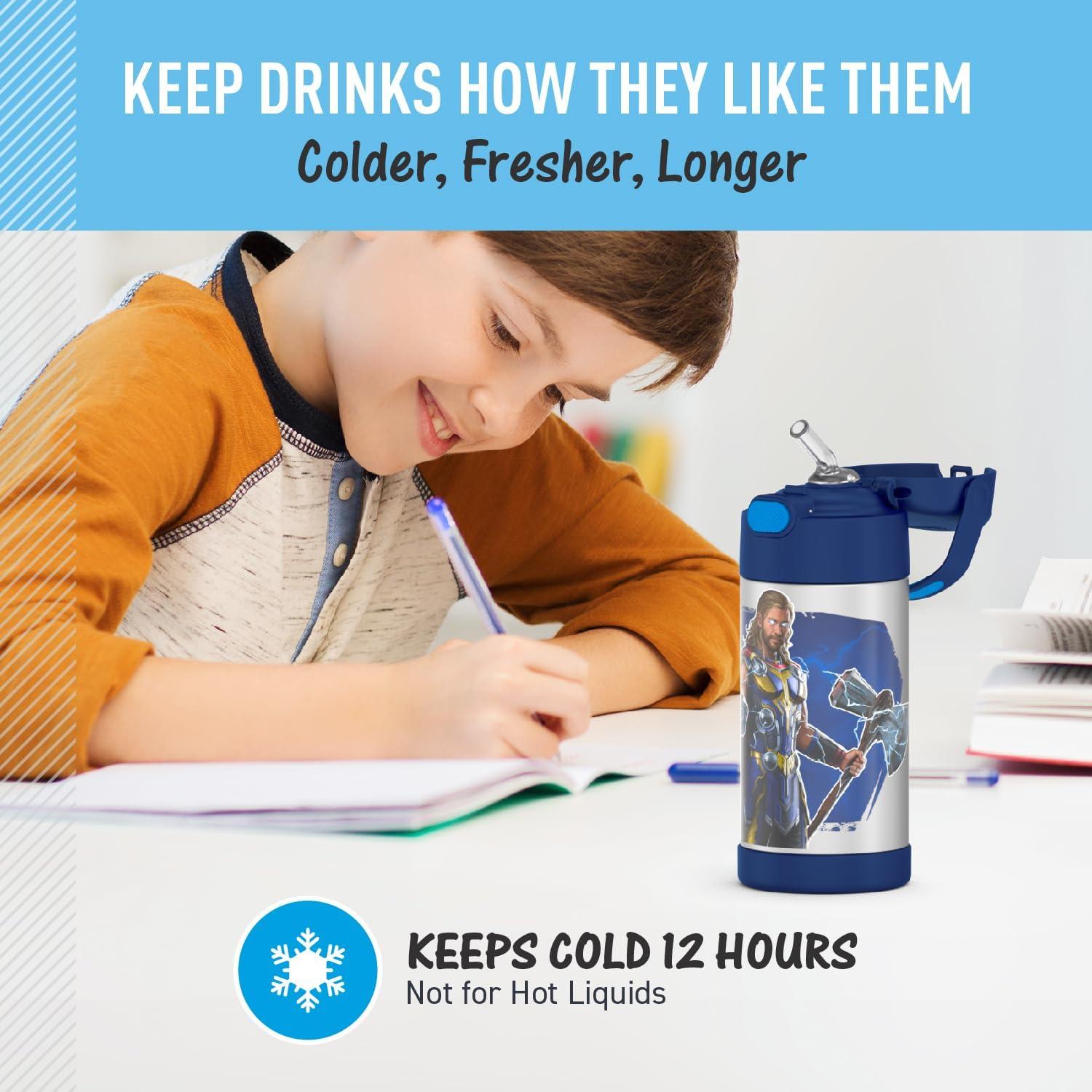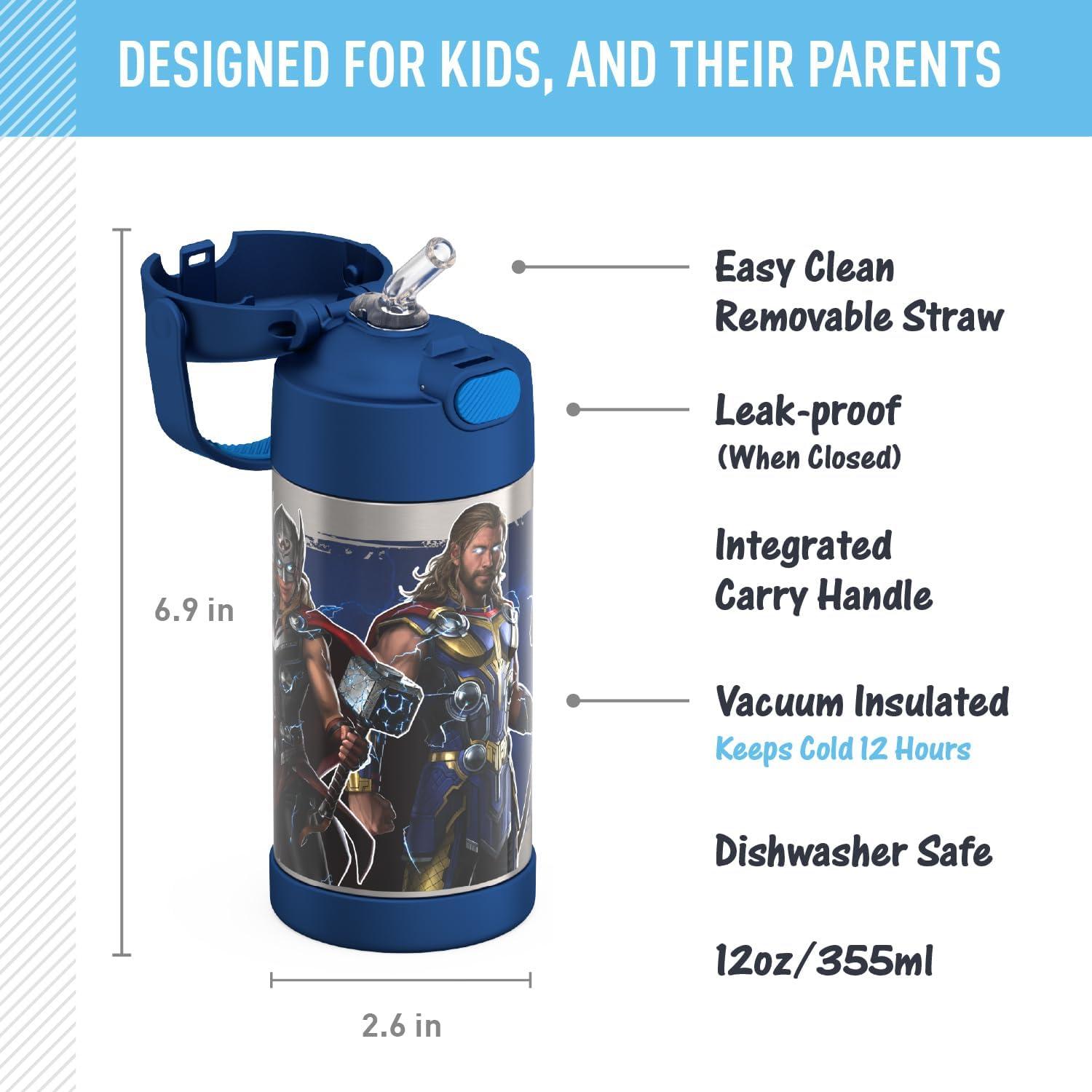 THERMOS FUNTAINER Water Bottle with Straw – 12 Ounce – Kids Stainless Steel Vacuum Insulated Water Bottle with Lid, Spider-Man(Thor)
