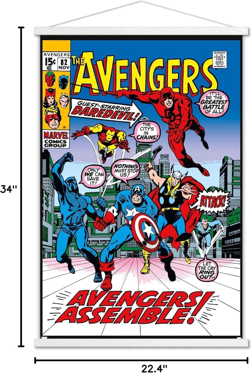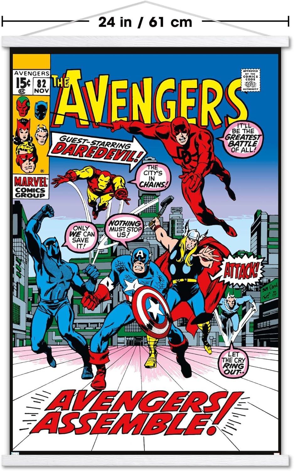 Trends International Marvel Comics – Avengers #82 Wall Poster with Magnetic Frame, 34L x 22.4W, Print and Black Hanger Bundle(Print and Black Hanger Bundle)