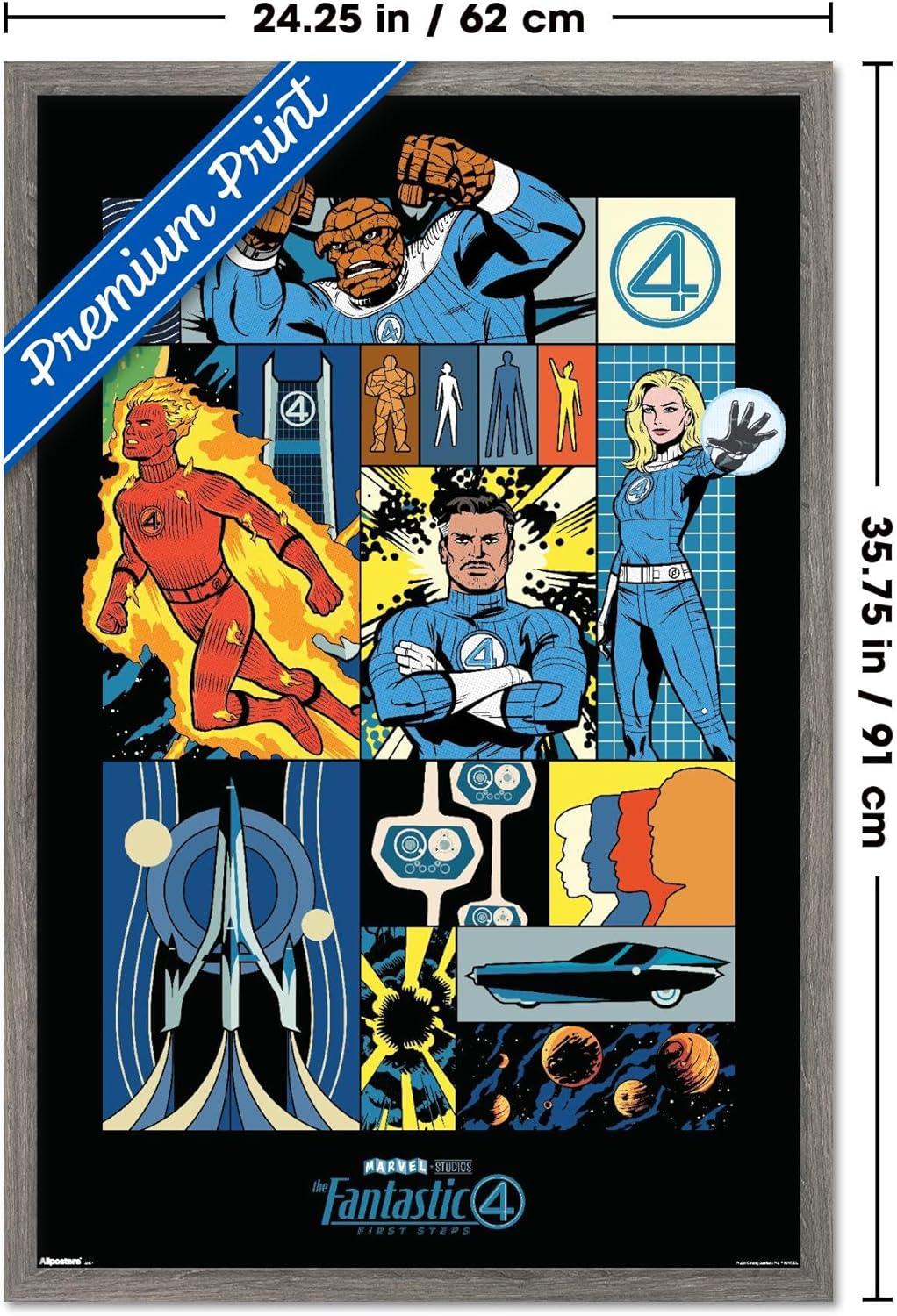 Trends International Marvel Fantastic Four: First Steps (2025) - Comic Panel Wall Poster, 22.4L x 14.7W, Premium Unframed Version(Barnwood Framed Version)