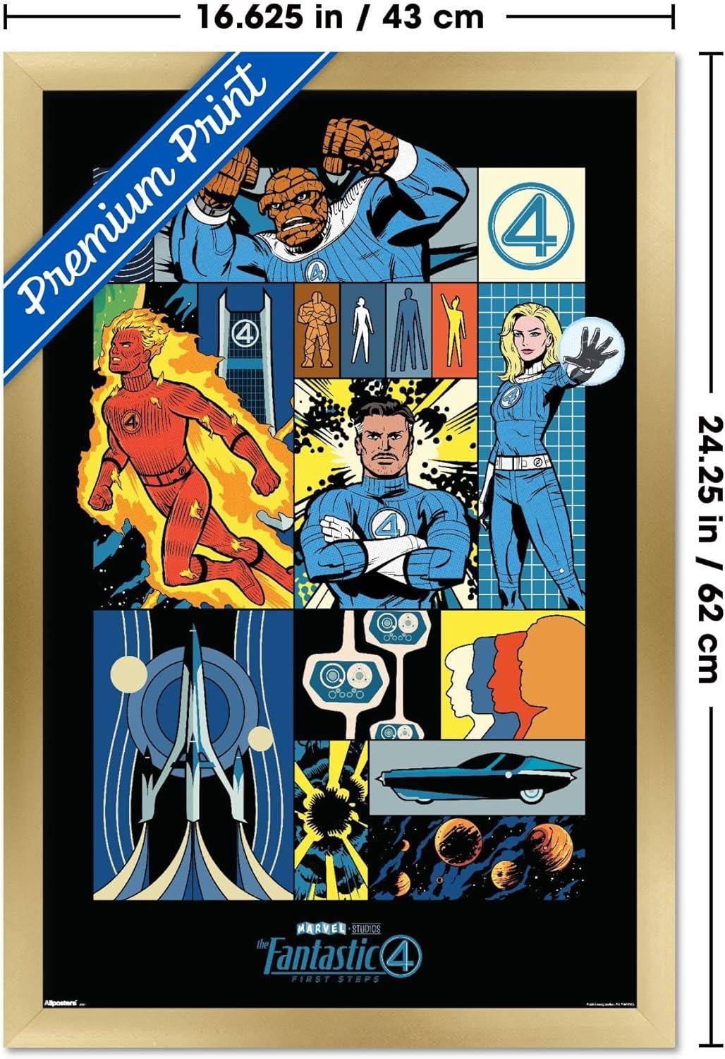 Trends International Marvel Fantastic Four: First Steps (2025) – Comic Panel Wall Poster, 22.4L x 14.7W, Premium Unframed Version(Gold Framed Version)