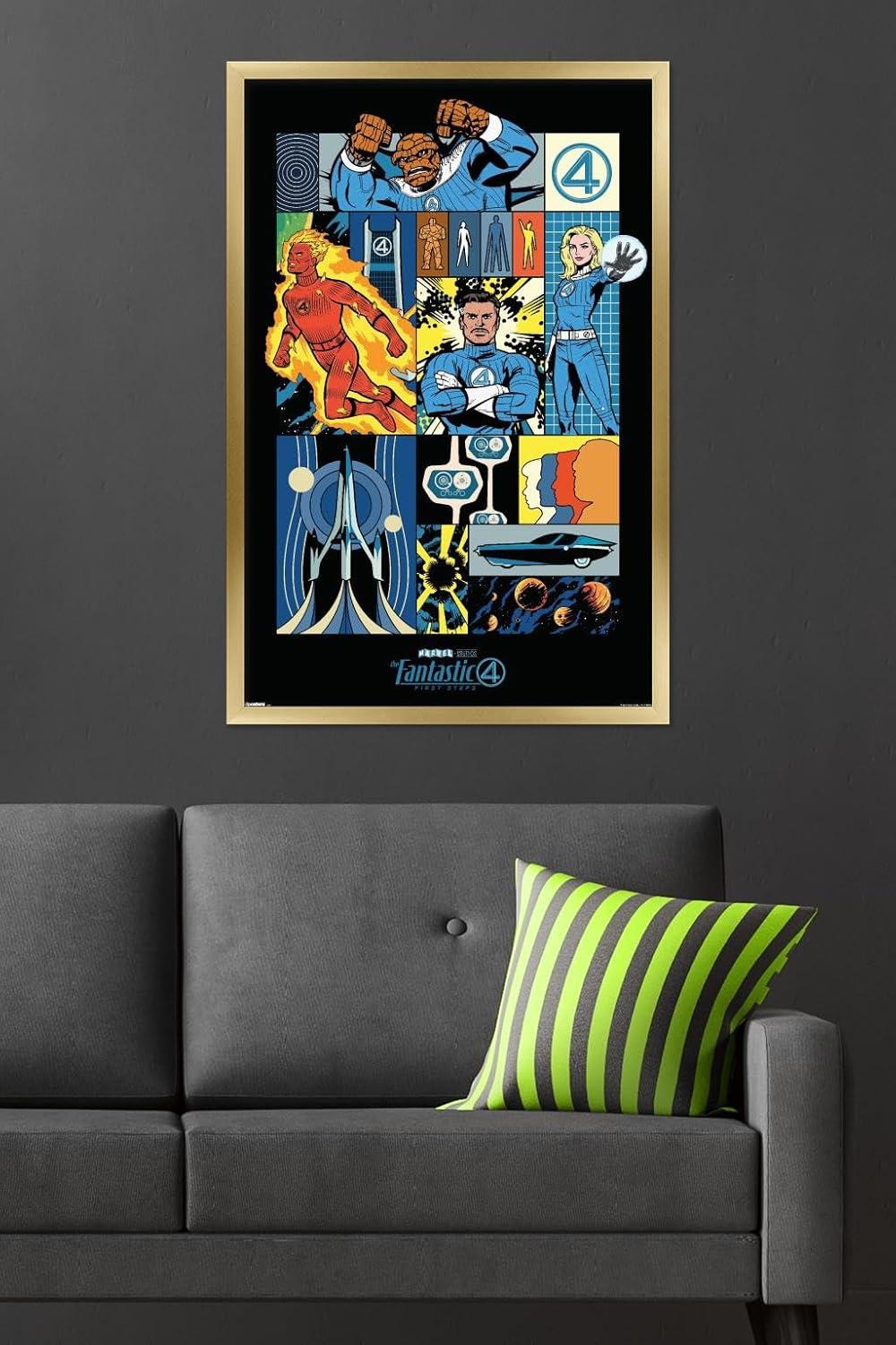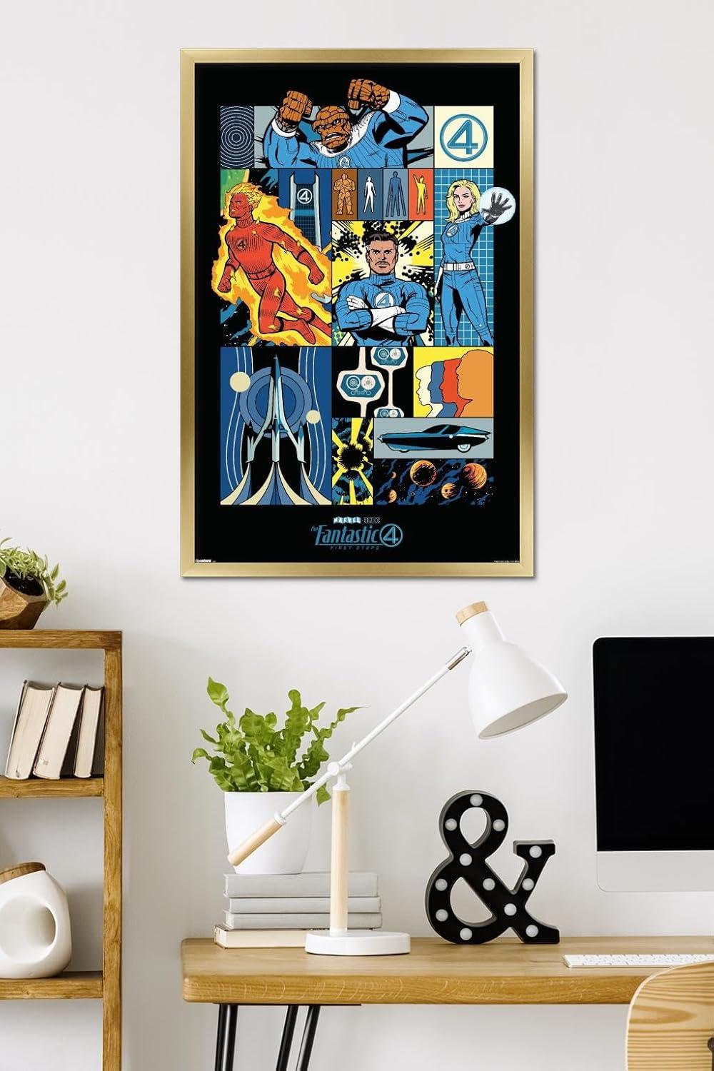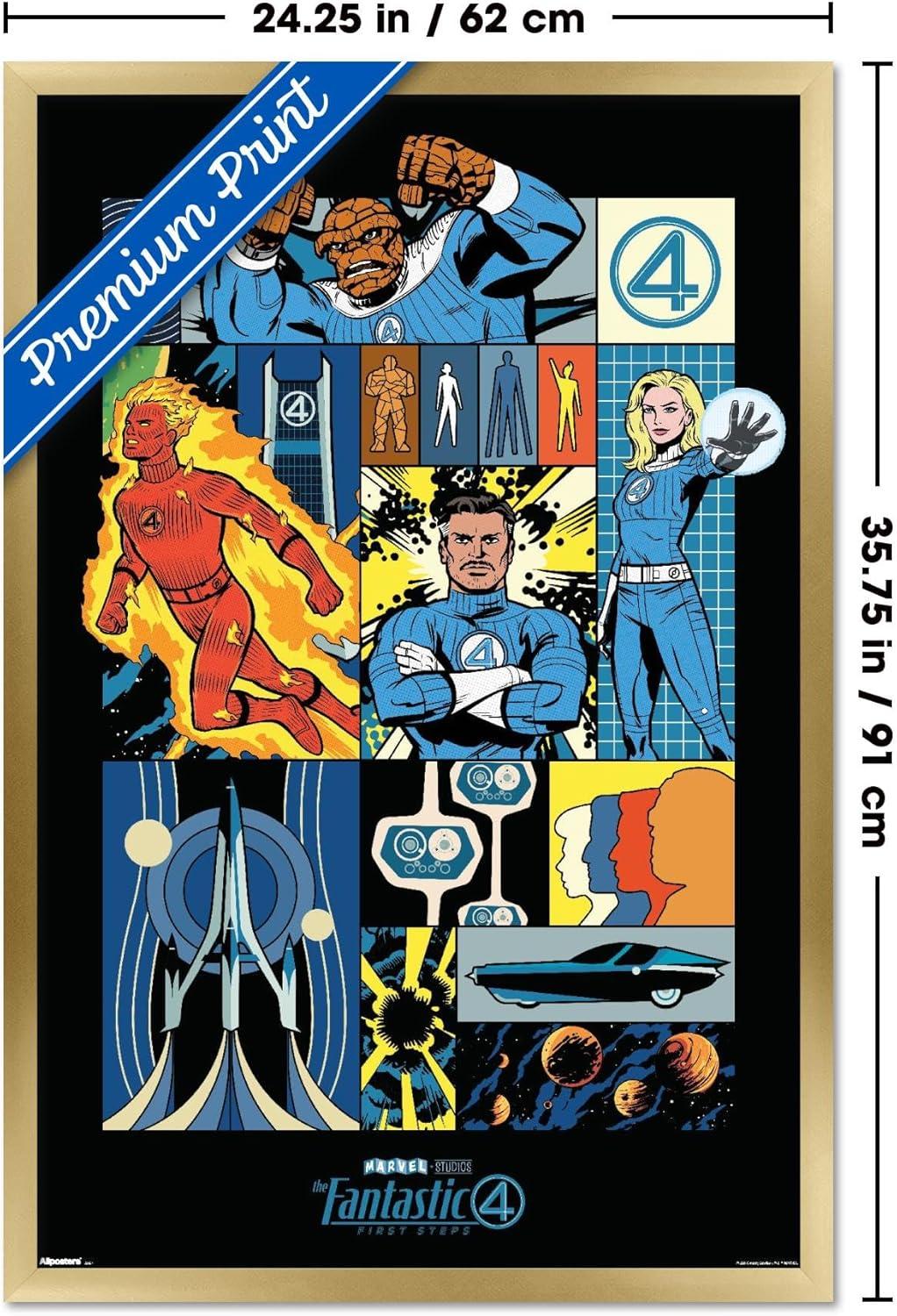 Trends International Marvel Fantastic Four: First Steps (2025) – Comic Panel Wall Poster, 22.4L x 14.7W, Premium Unframed Version(Gray Framed Version)