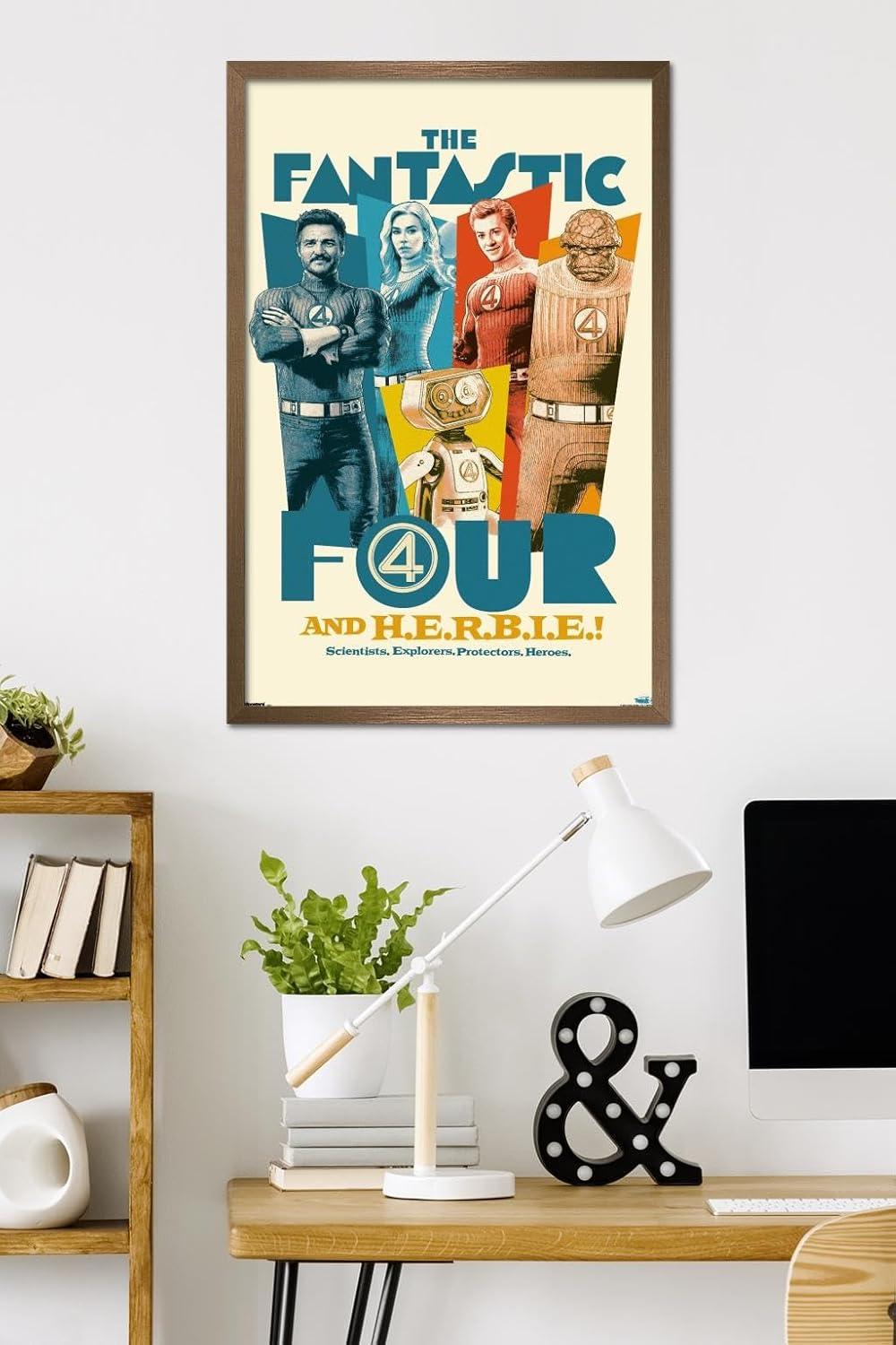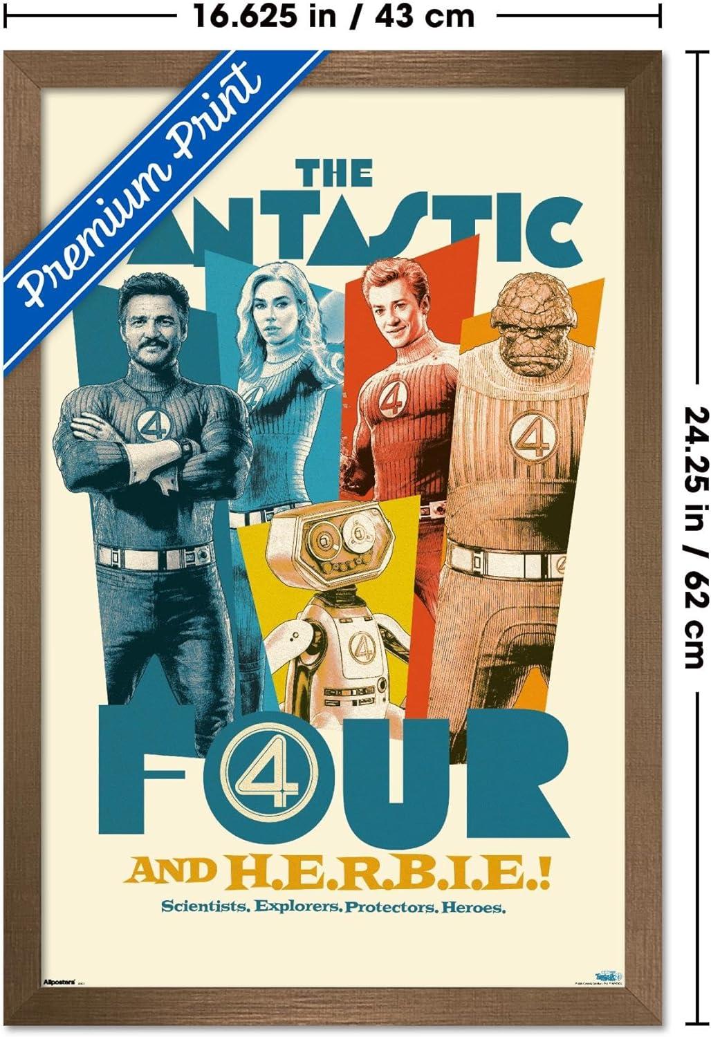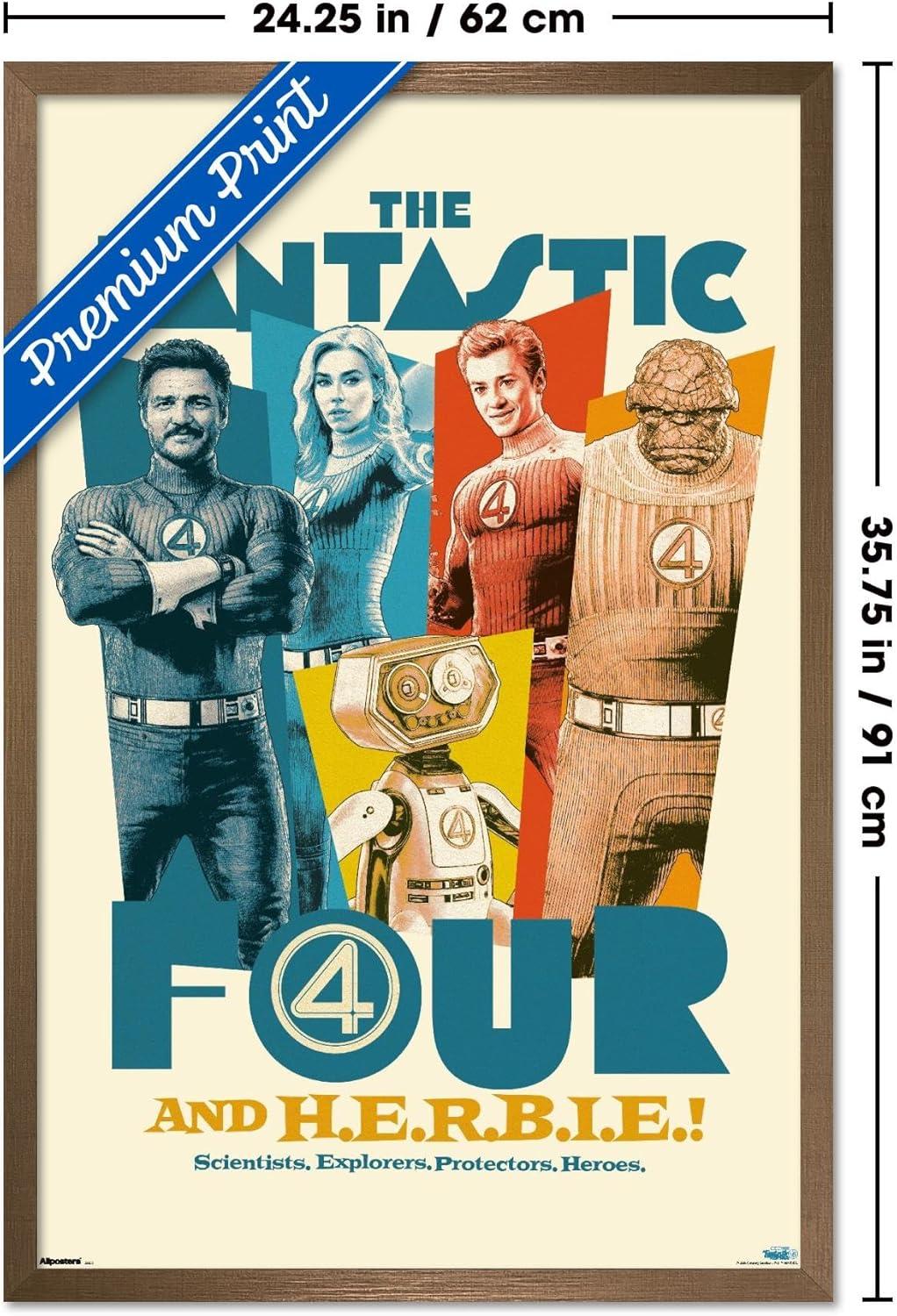 Trends International Marvel Fantastic Four: First Steps (2025) – F4 And H.E.R.B.I.E. Wall Poster, 34L x 22.4W, Premium Unframed Version(Blonde Framed Version)