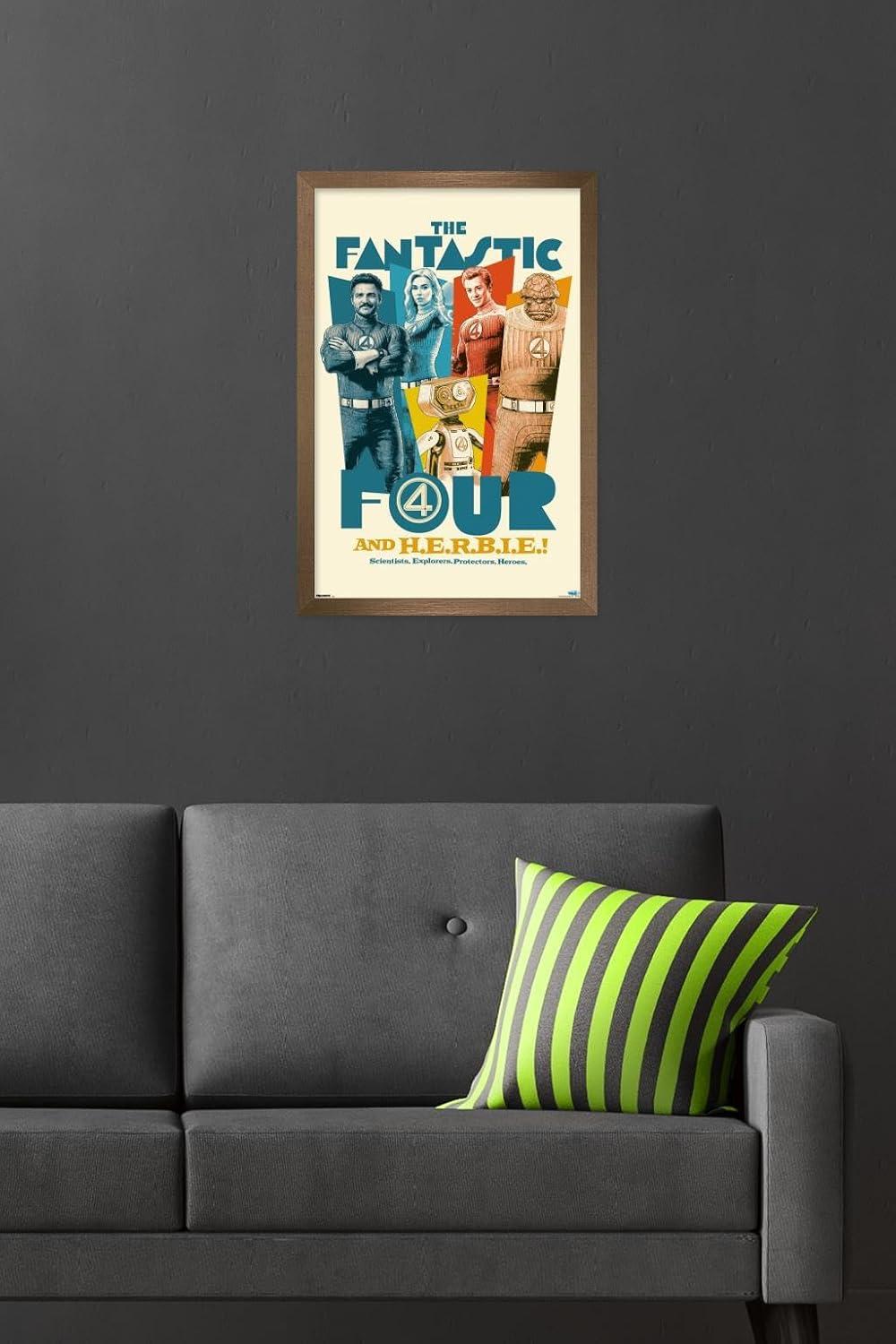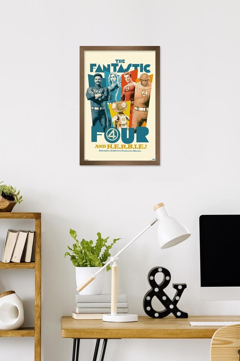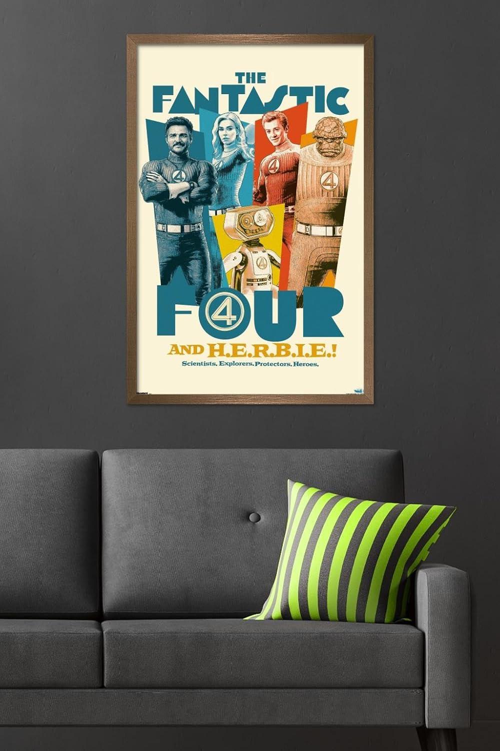 Trends International Marvel Fantastic Four: First Steps (2025) – F4 And H.E.R.B.I.E. Wall Poster, 34L x 22.4W, Premium Unframed Version(Blonde Framed Version)