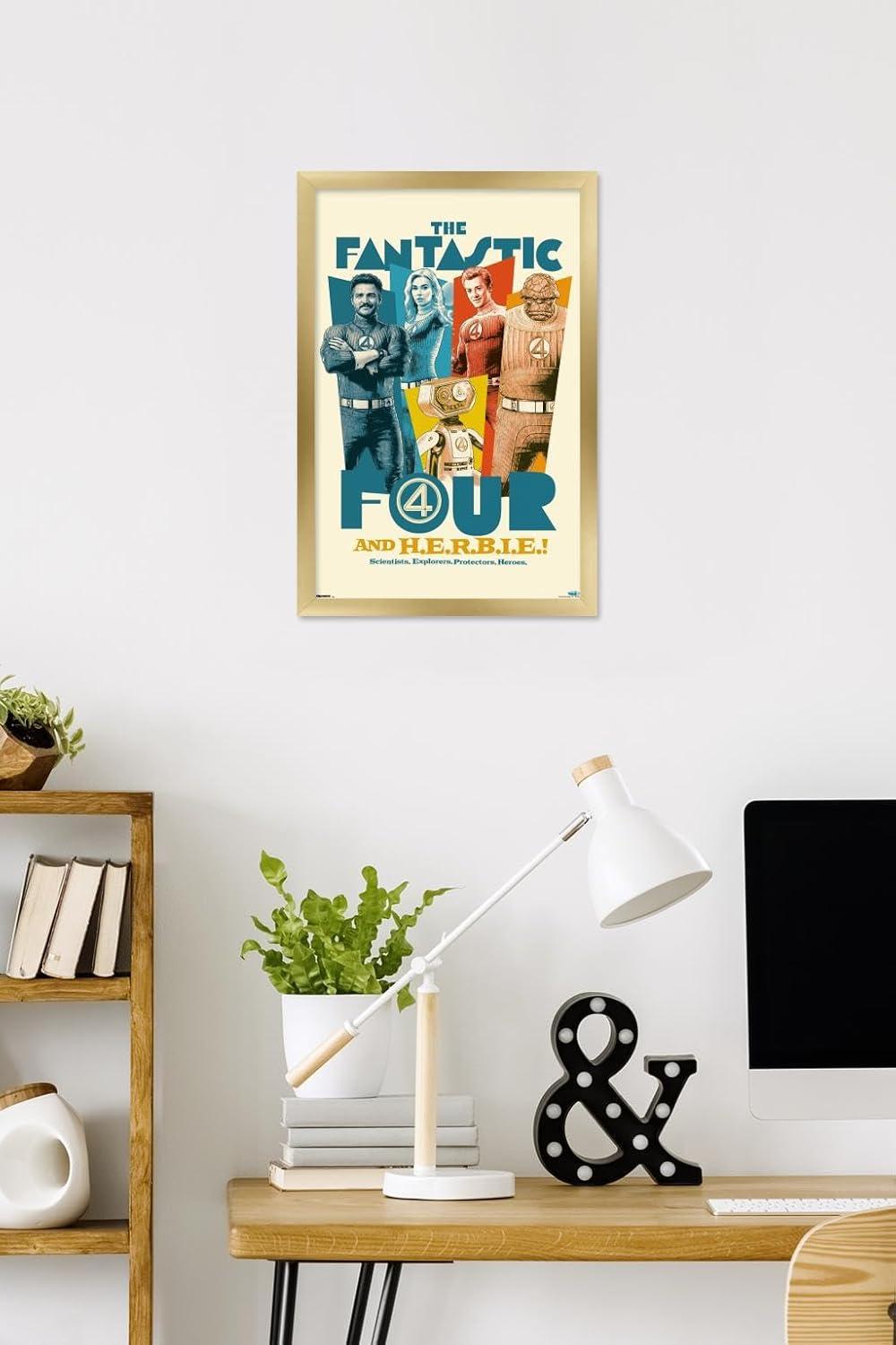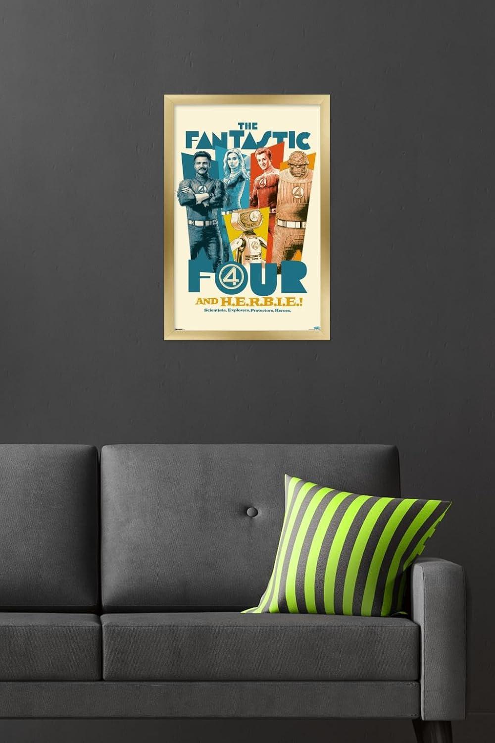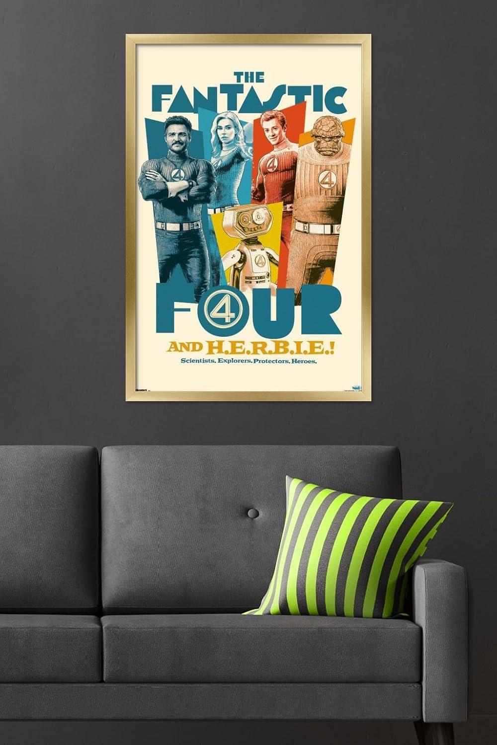 Trends International Marvel Fantastic Four: First Steps (2025) – F4 And H.E.R.B.I.E. Wall Poster, 34L x 22.4W, Premium Unframed Version(Gray Framed Version)