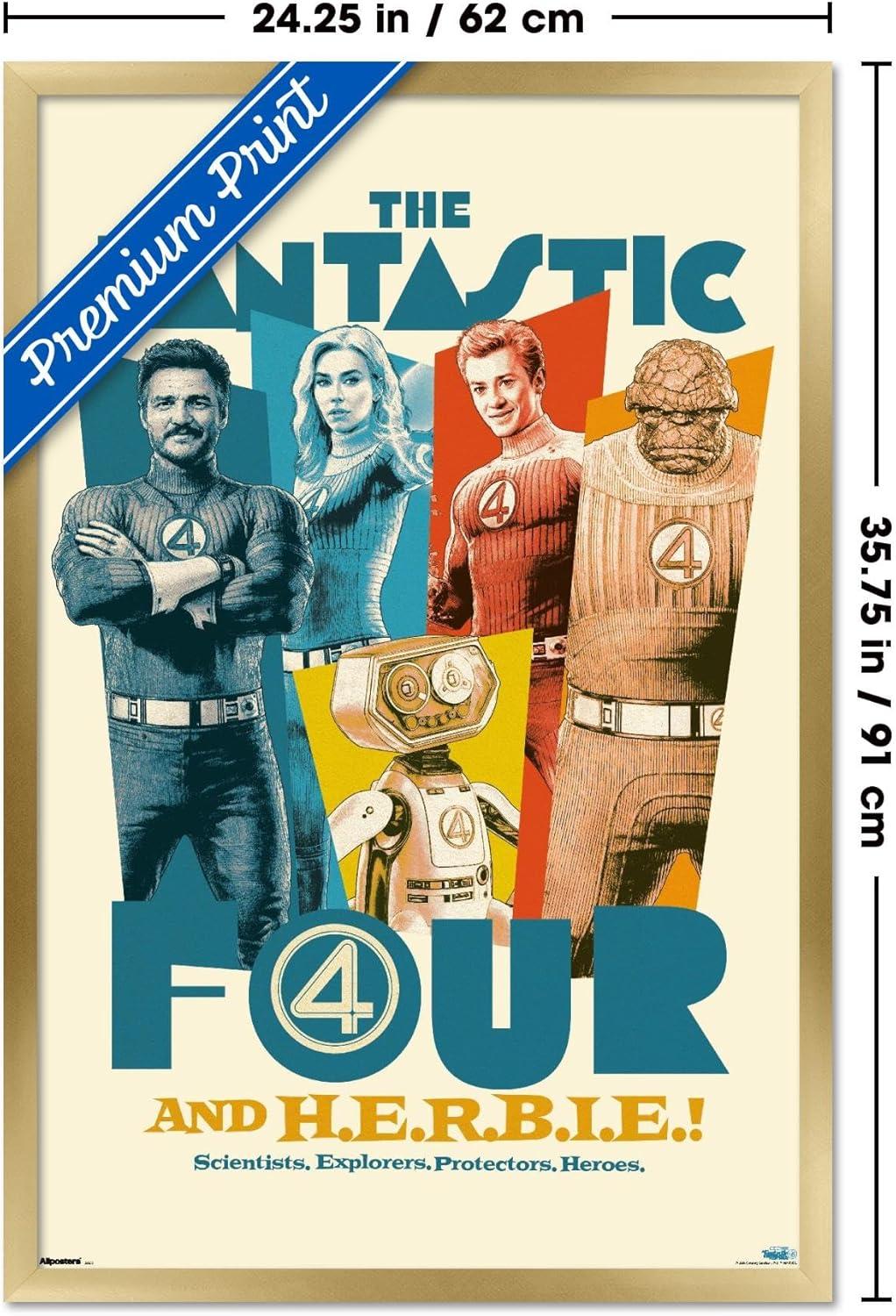 Trends International Marvel Fantastic Four: First Steps (2025) – F4 And H.E.R.B.I.E. Wall Poster, 34L x 22.4W, Premium Unframed Version(Gold Framed Version)