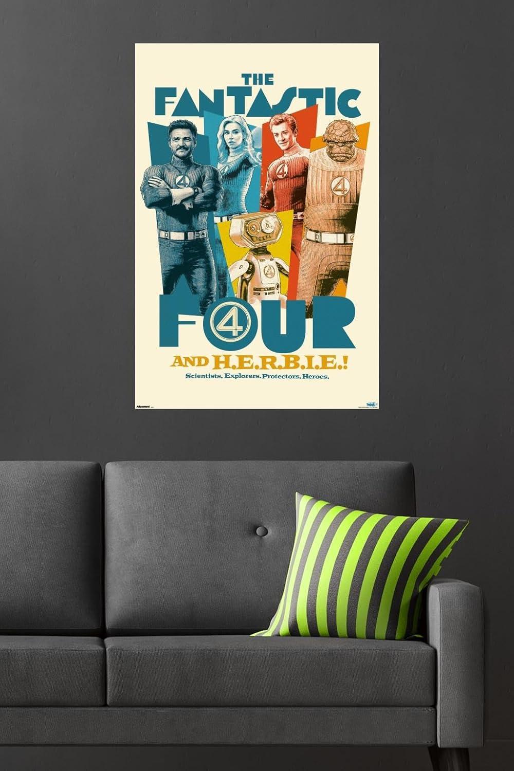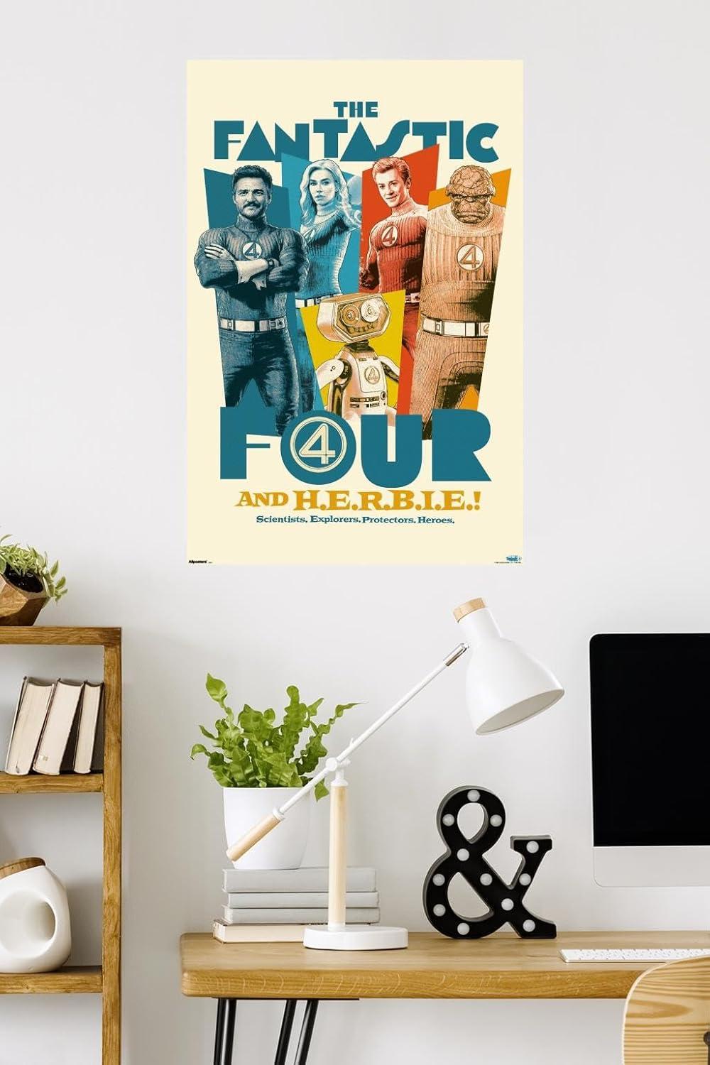 Trends International Marvel Fantastic Four: First Steps (2025) – F4 And H.E.R.B.I.E. Wall Poster, 34L x 22.4W, Premium Unframed Version(Premium Poster & Mount Bundle)