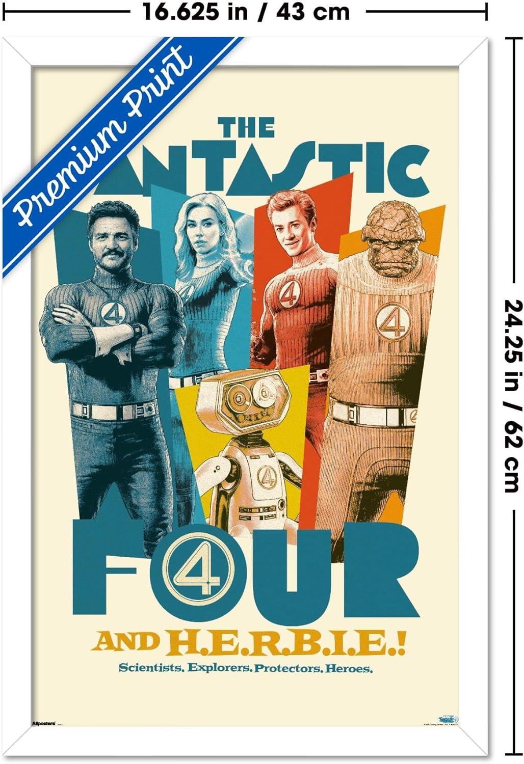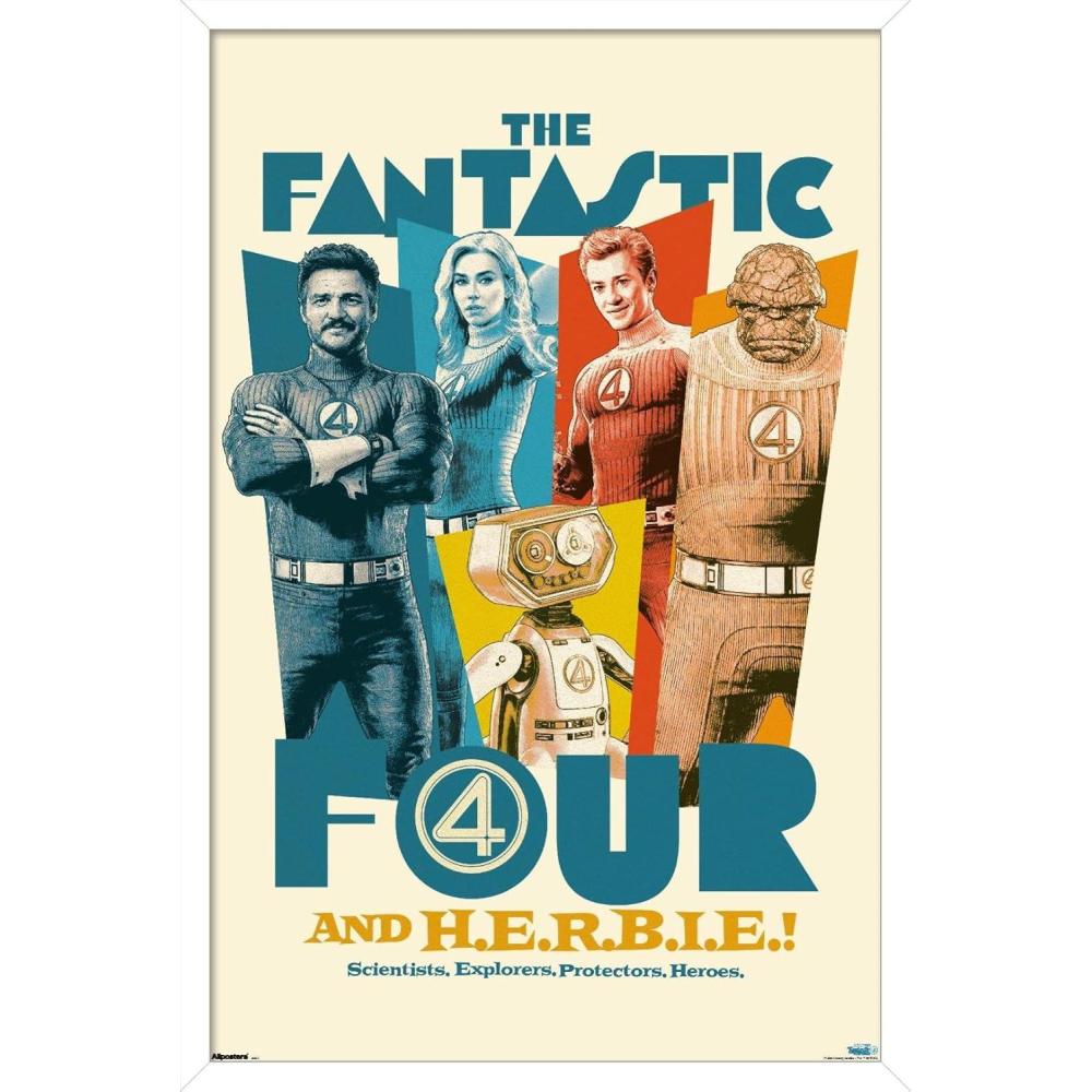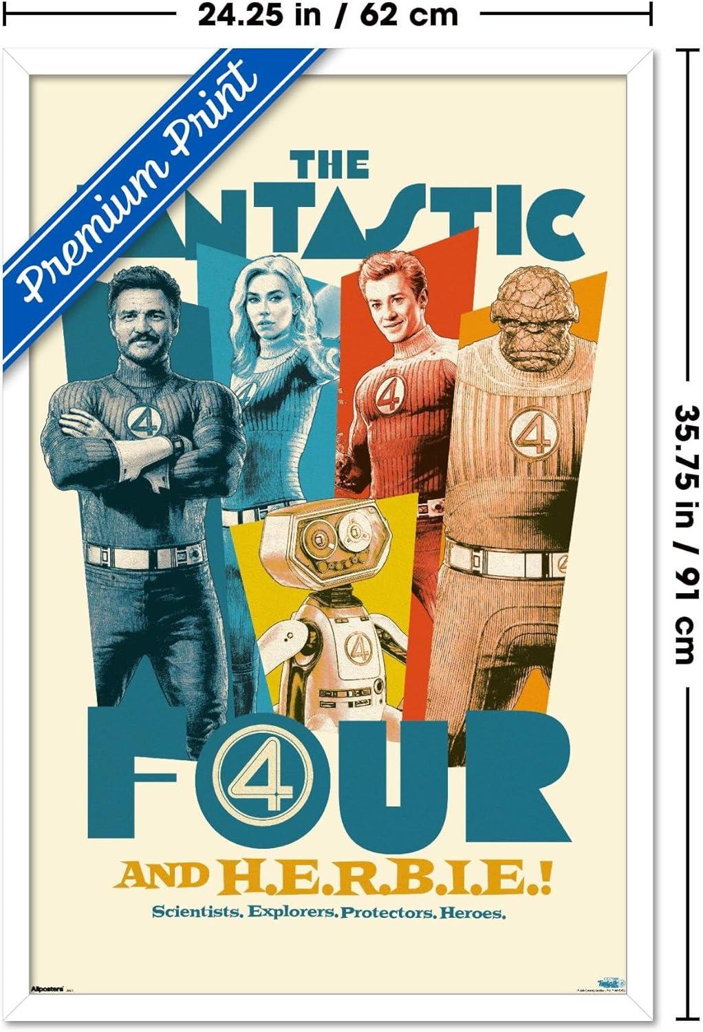 Trends International Marvel Fantastic Four: First Steps (2025) – F4 And H.E.R.B.I.E. Wall Poster, 34L x 22.4W, Premium Unframed Version(White Framed Version)